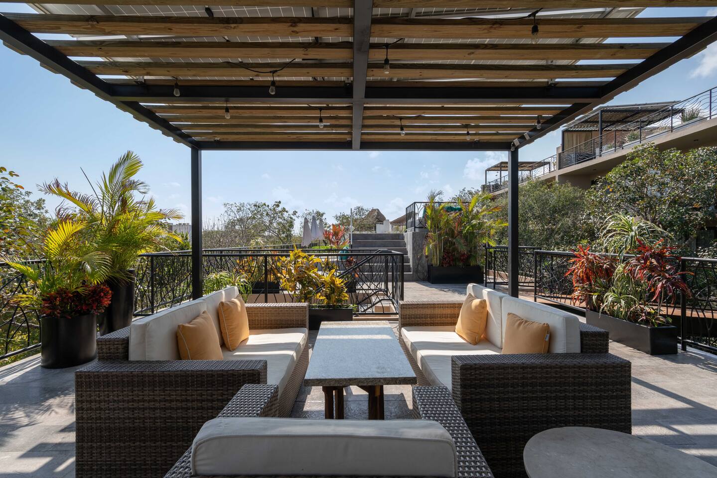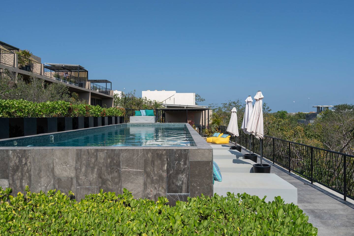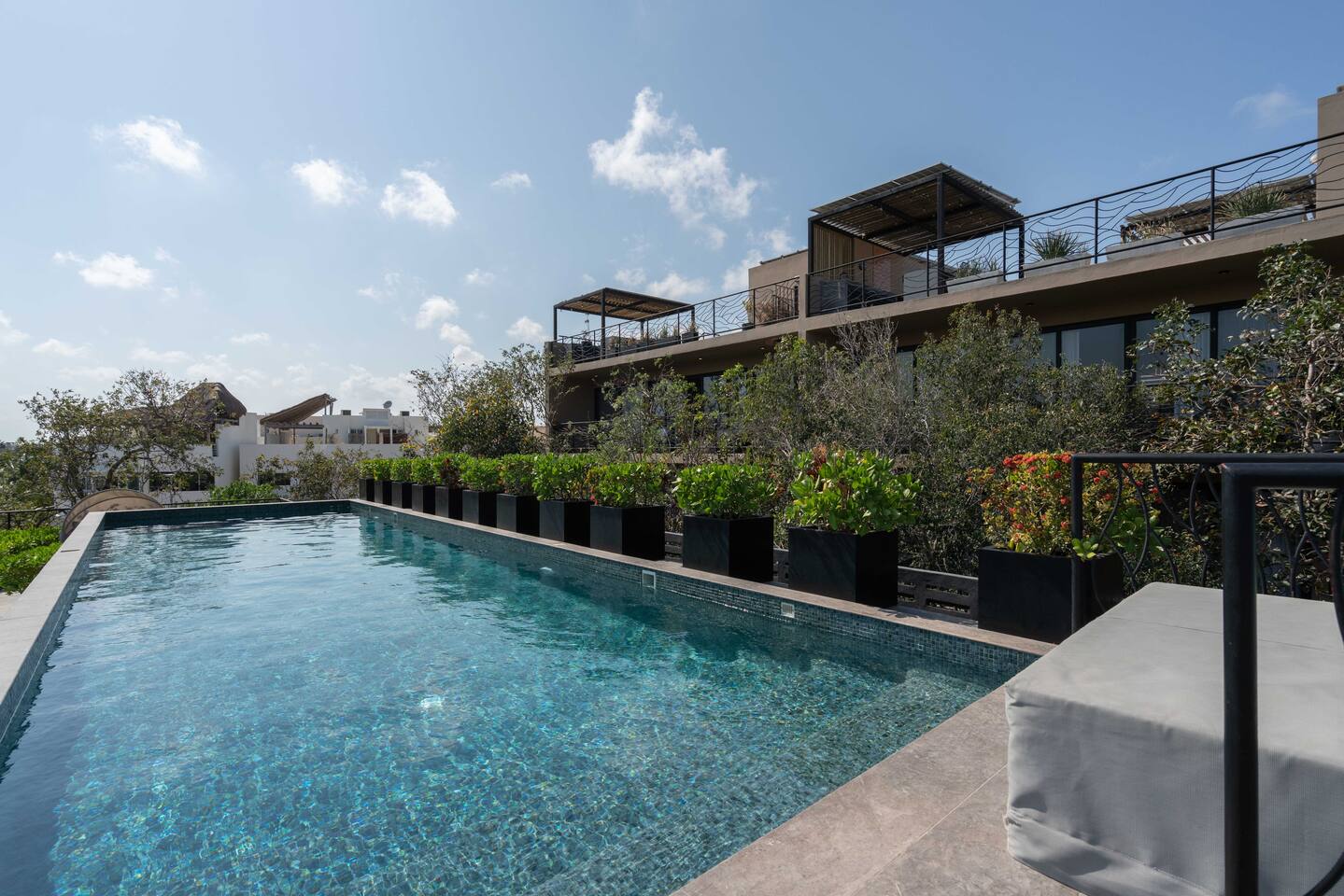 Welcome to Arcadia! Located in a secure and private complex with gated entry and 24 hour security, this is an incredibly peaceful space with no nearby construction. Enjoy amenities like the stunning rooftop pool, large terrace overlooking the jungle, and high speed FO wifi. Located just 8 minutes away from Tulum's world-famous white sand beaches and crystal-clear waters. It's also conveniently located near the best restaurants, shops, and nightlife in both downtown and the beach strip.