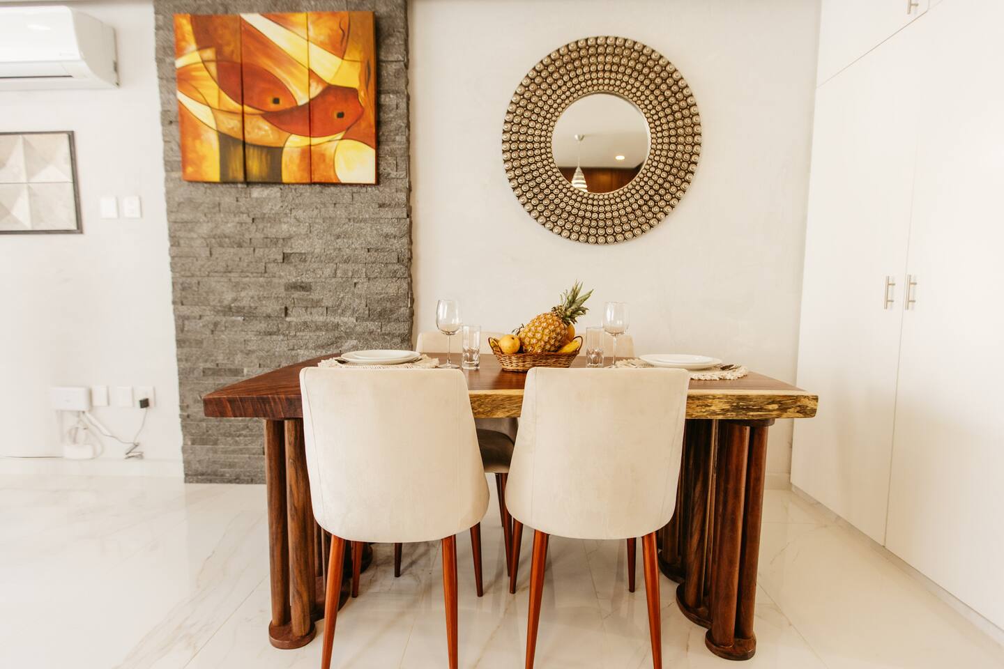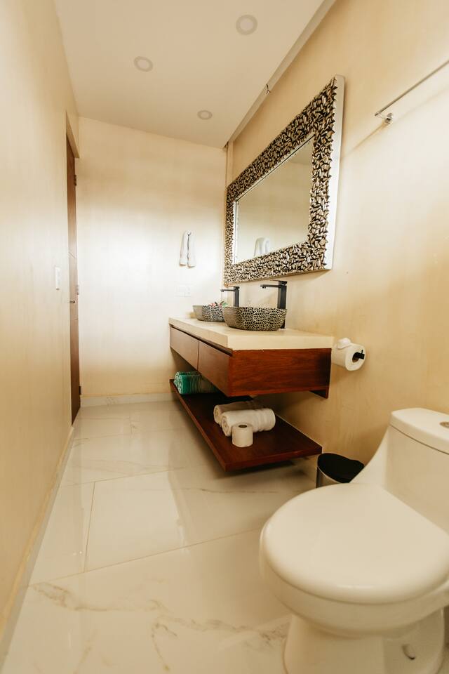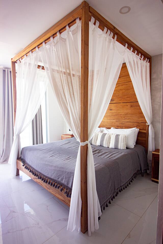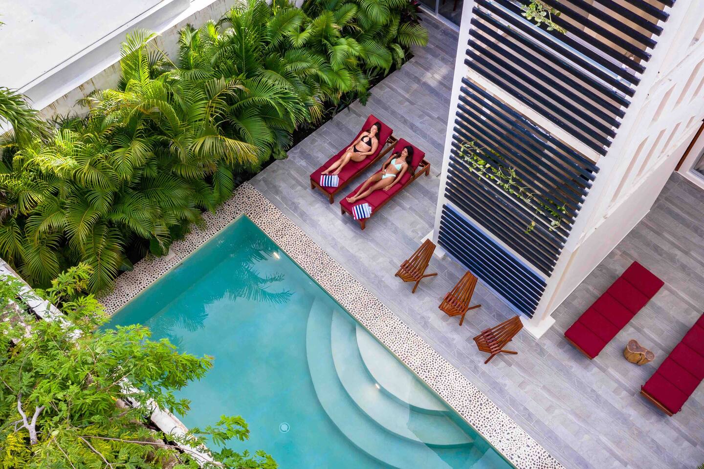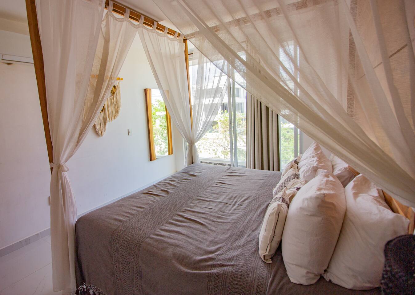 Experience a sense of calm when you arrive at Dune. Perfectly tucked away within a quiet oasis you'll be able to relax in Tulum's jungle setting. The main level pool and lounge deck are very serene, especially at night with the warm lighting and tropical trees and plants surrounding the area. The suite is a spacious modern build with lots of natural light and high end finishes. The kitchen is fully equipped with high end appliances such as refrigerator, electric stovetop, toaster oven, blender, and coffee machine. Lots of cookware, plates and utensils. Kitchen island with seating as well as a 4-person dining table. The living room has a super comfortable sectional couch, with a SMART TV and applications like Netflix and Youtube. A great place to relax day or night. The bedroom is beautifully designed for optimal relaxation. High end mattress with hotel quality linens and pillows and black out curtains. The bed also has beautiful drapery surrounding it, creating a luxurious feeling as you sleep. The bedroom also has a west facing balcony attached, where you can see some beautiful colours in the sky as the sun sets. Additionally, the bedroom has an ensuite bathroom with double sinks, a rain shower head and beautiful mosaic shower. Perhaps the best feature of this suite is the completely private rooftop lounge and pool. This space is optimal for sun-bathing as it has completely unobstructed sun exposure. There's also plenty of seating and lounge chairs and the elevated plunge pool is perfect for staying cool in the Mexico sun! 2 free bikes are included with your reservation and a free ATV* Your reservation also includes a full service concierge that can assist you with airport transportation, private chef services, massage and wellness services, tours and excursions, ATVs and scooter rentals, beach club reservations, and much more. *ATV is available for free from April to November. Please request the ATV PRIOR to completing your reservation.