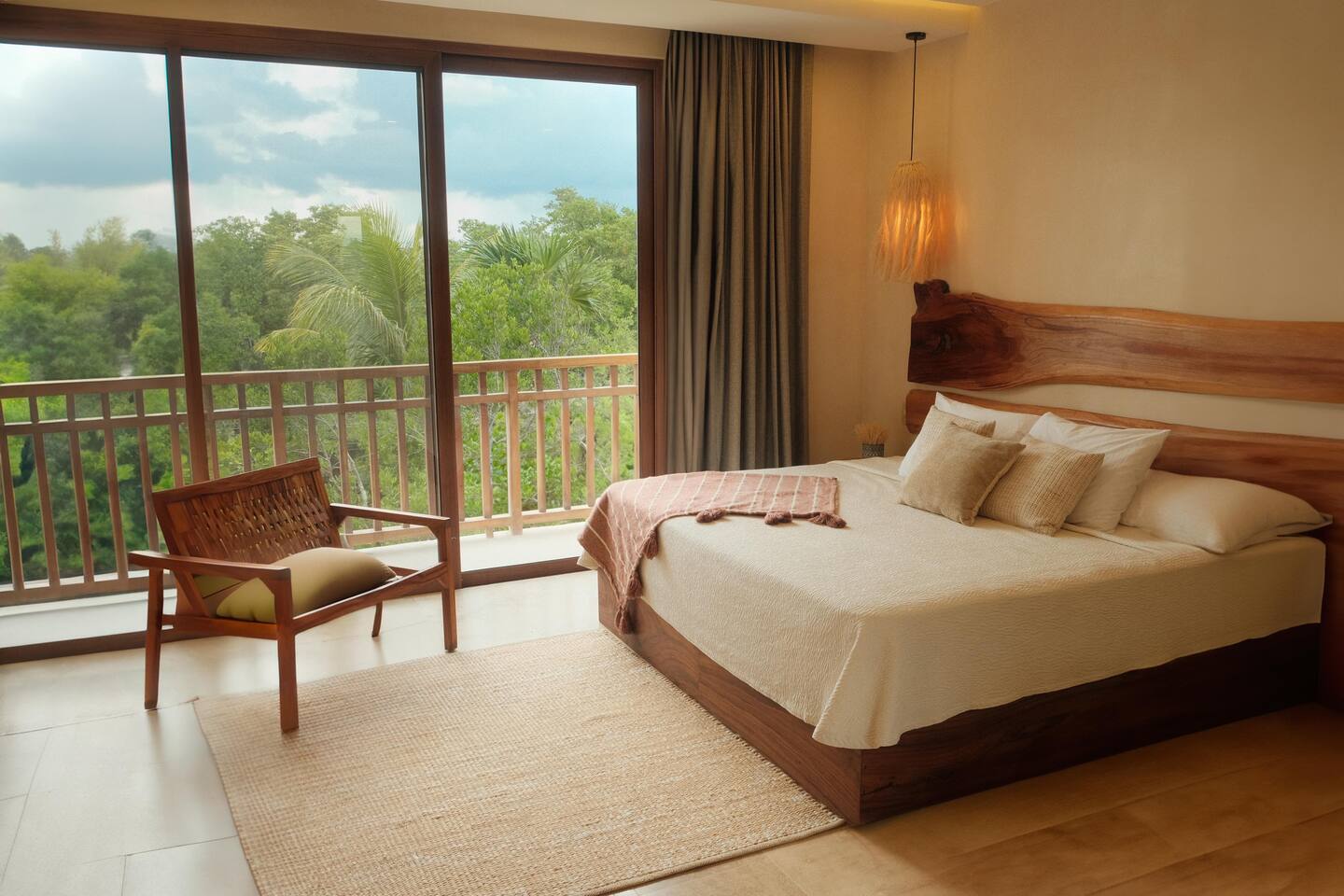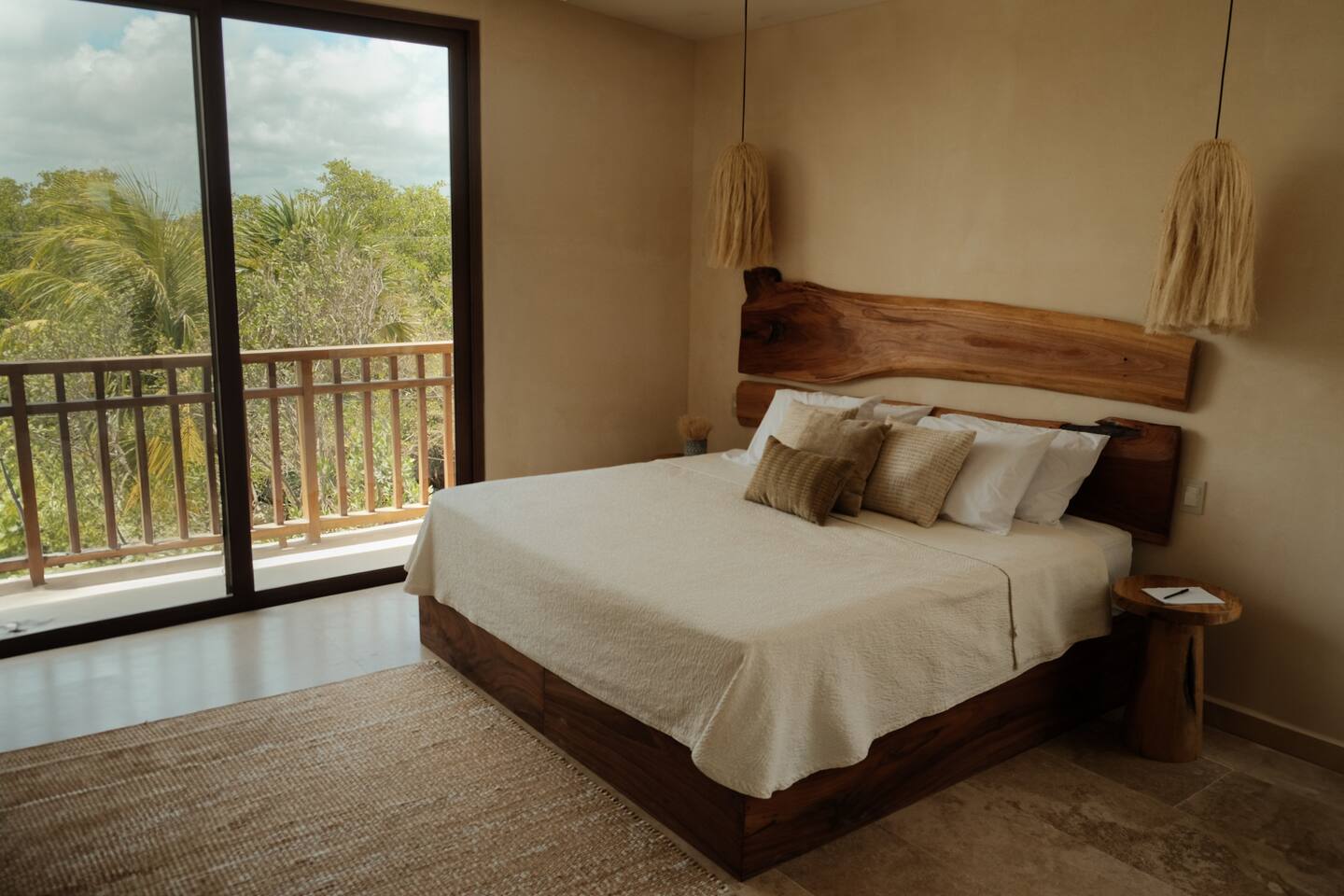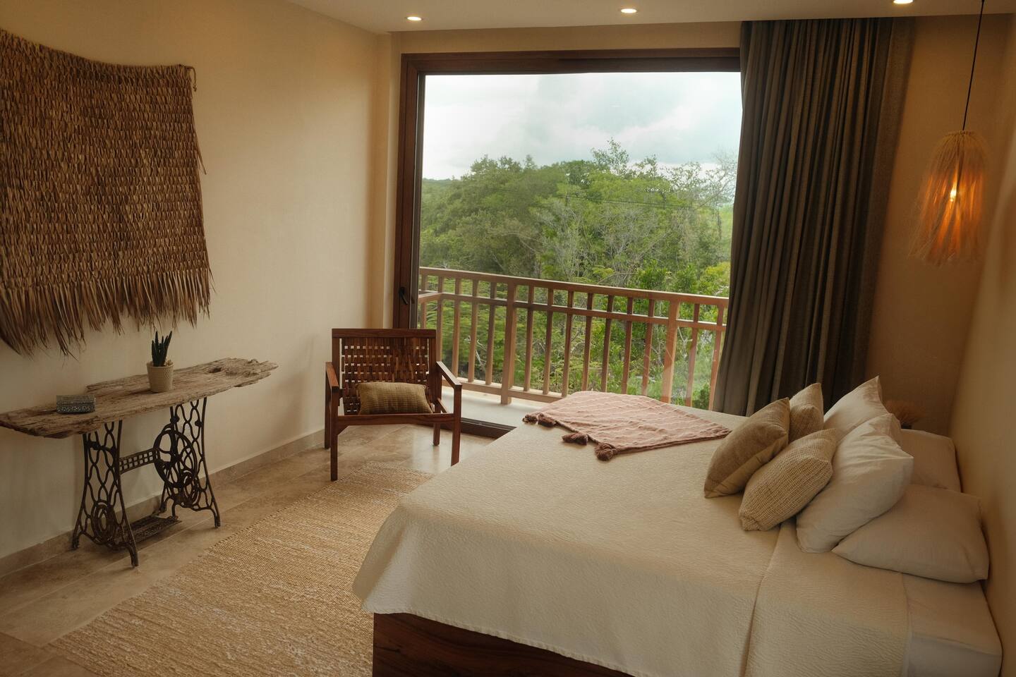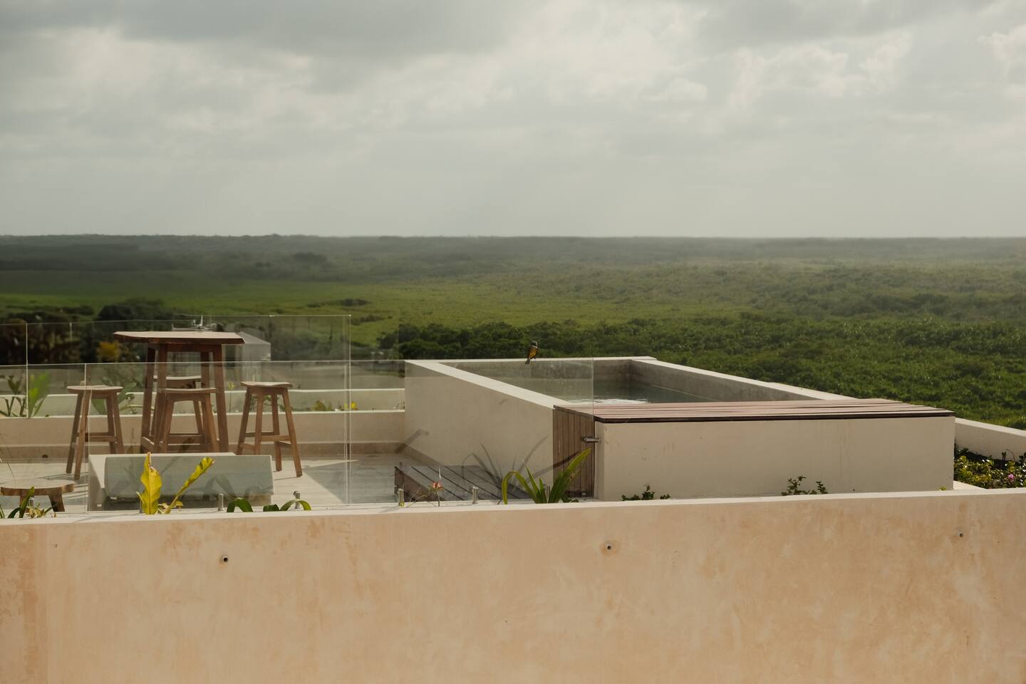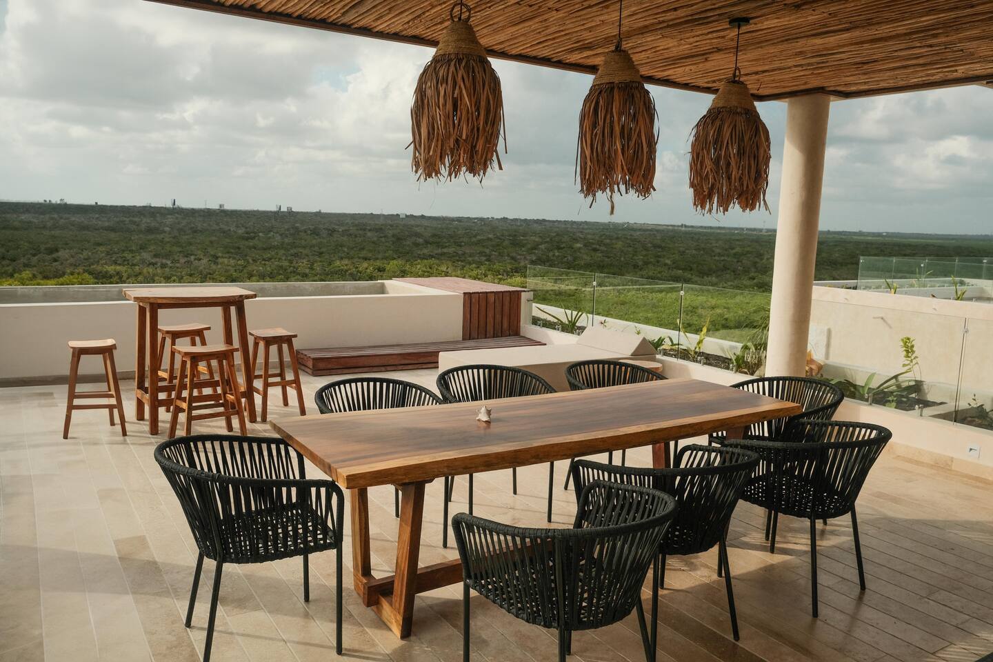 The 3 bedroom luxury condo is a modern build with natural light and high end finishes, high speed wifi, cold and hot water, and AC. The kitchen is fully equipped with high end appliances such as refrigerator, microwave, electric stovetop, blender, and coffee maker. Full dining space with a large dining table for 6. The living room has a comfortable sofa and seating area, with a SMART TV and applications like Netflix and Youtube. A great place to relax day or night. With views of the ocean from the living room, open up the balcony door and enjoy indoor/outdoor space. The large balcony has a seating area and a private plunge pool to enjoy. The bedrooms are designed for optimal relaxation. King size beds in two bedrooms and 2 Queen beds in one bedroom with incredibly comfortable mattresses and plush hotel quality linens, and lots of closet space. Ensuite bathrooms in all bedrooms with glass shower and lots of counter space. The highlight of this condo is the stunning ocean view. The gorgeous private balcony with outdoor seating and a lounge space and enough space to do yoga or meditations. Listen to the sound of the ocean in the mornings and evenings, a truly magical place to spent time. The condo also comes equipped with plenty of storage space, central air conditioning, and full floor to ceiling windows to give you the perfect view of the ocean. The building amenities include: • Gorgeous rooftop lounge with overlooking the jungle and views of the ocean and you can see the flamingos flying by each day. Comes with an outdoor dining space, outdoor kitchen, pizza oven, and rooftop pool •Gym and yoga terrace •Private beachfront •Oceanfront pool •Kayaks available to take out during your stay Your reservation also includes: a full service concierge that can assist you with airport transportation, private chef services, massage and wellness services, tours and excursions, ATVs and scooter rentals, beach club reservations, and much more.