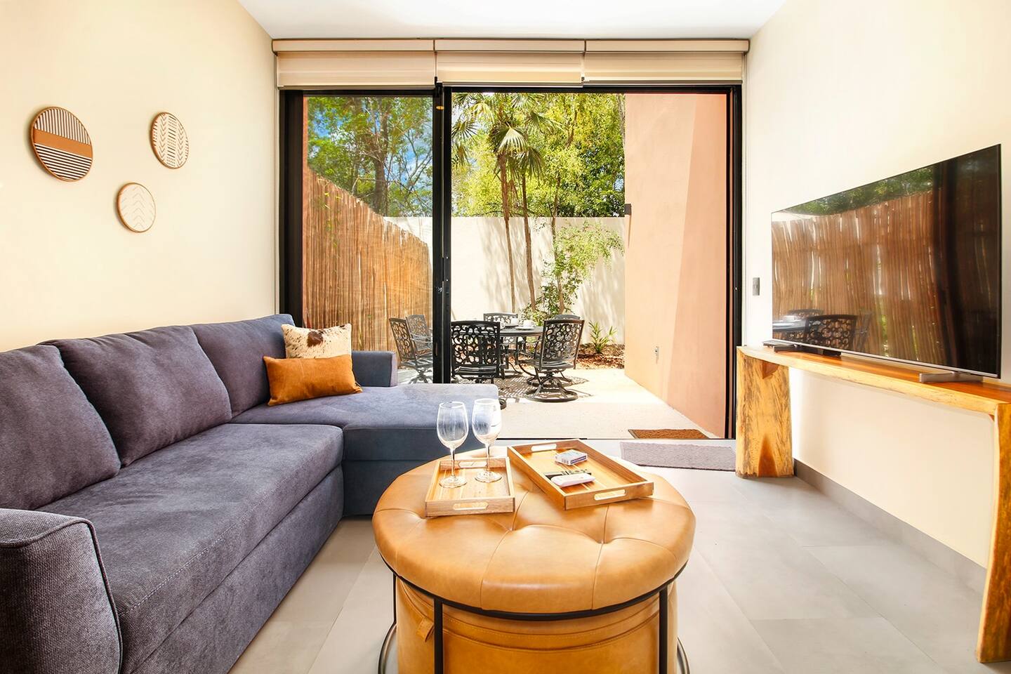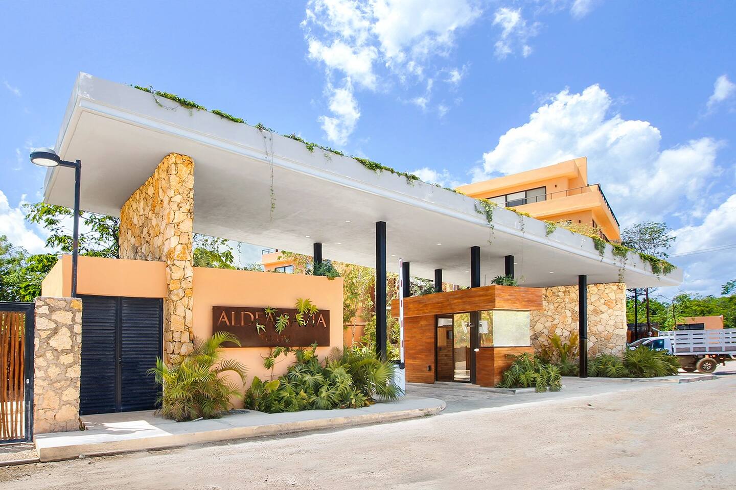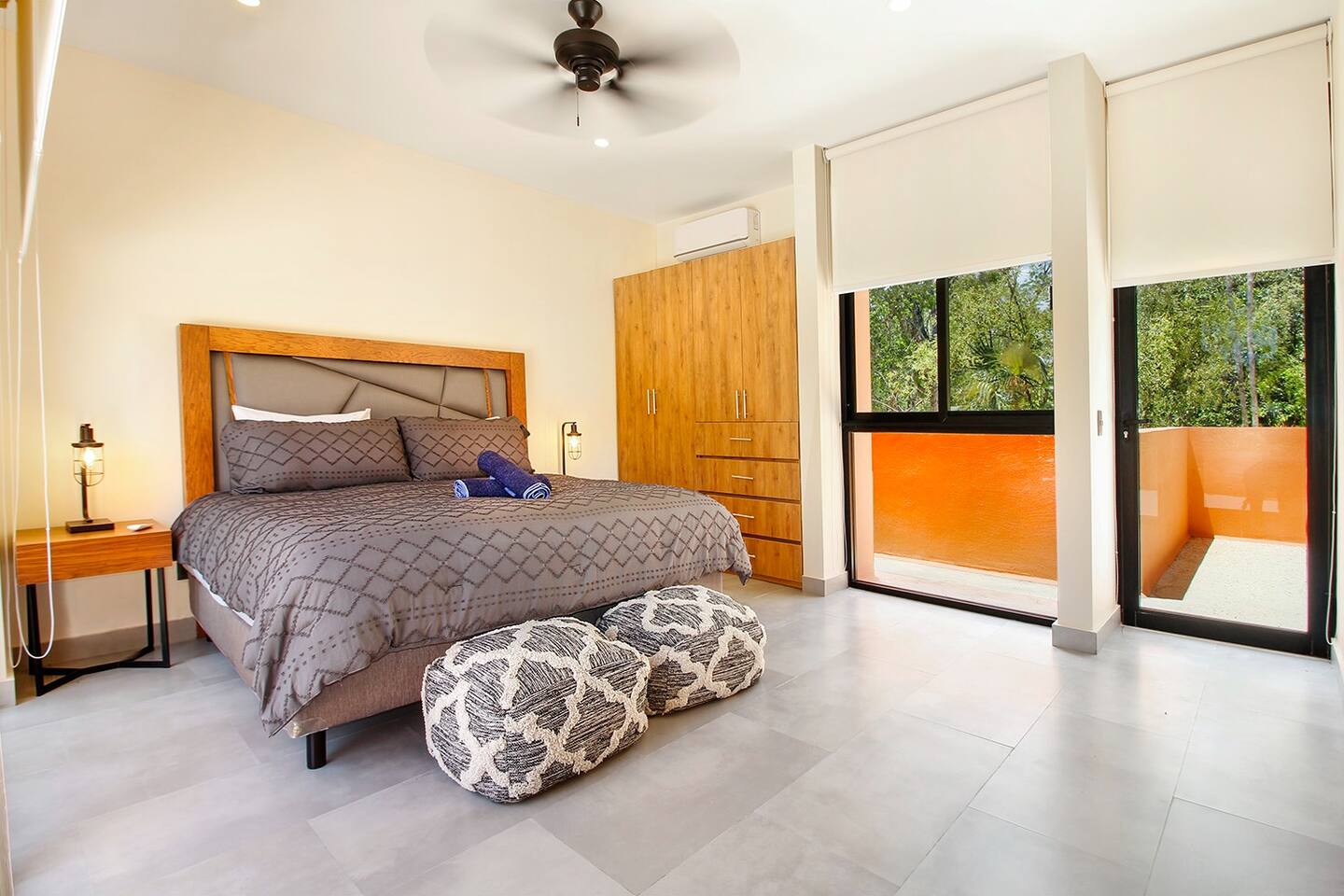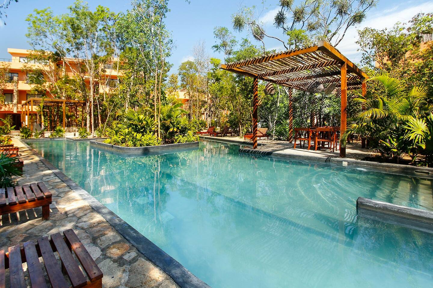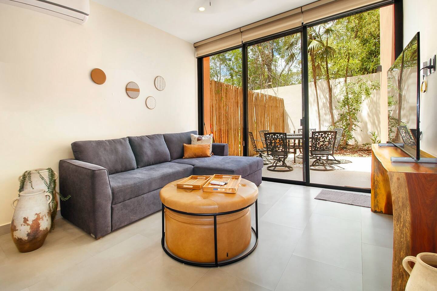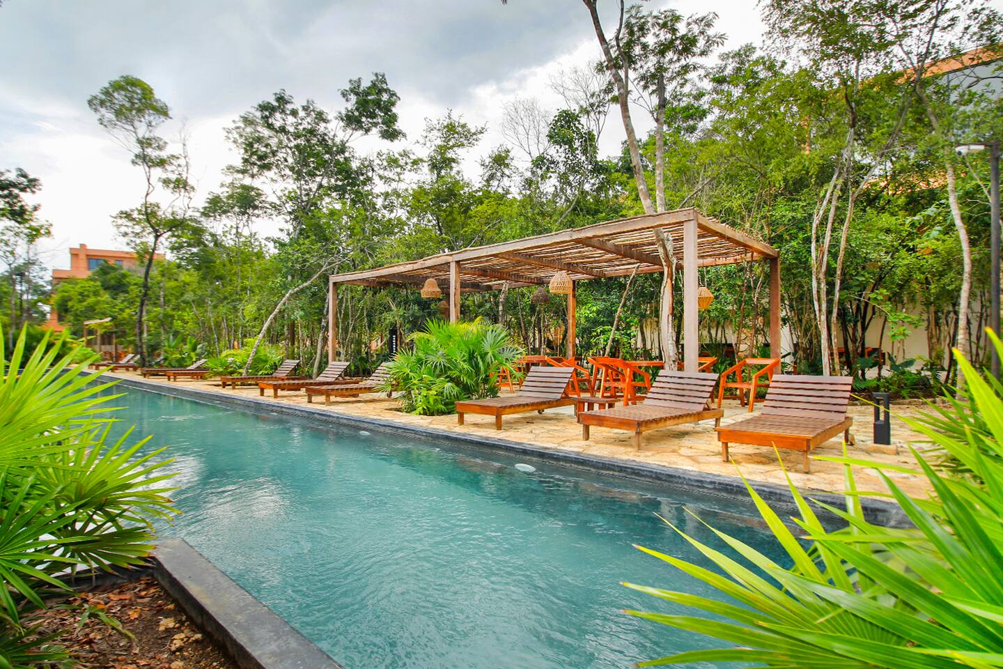 Nestled in a serene, private neighborhood surrounded by lush jungle, this charming home offers the perfect escape for those seeking tranquility and comfort. With ample outdoor space including a ground floor rear terrace with an outdoor dining table, and double terraces leading out from the upstairs master bedroom with outdoor seating, it's ideal for enjoying the natural beauty of the area. Inside, every room is equipped with air conditioning and high-speed Wi-Fi for your convenience. Each of the three bedrooms features plush mattresses, premium pillows, and hotel-quality linens as well as carefully curated decor. The master bedroom on the second floor boasts a luxurious king-size bed, two terraces, an ensuite bathroom and lots of closet space. The two bedrooms on the ground level are furnished with comfortable queen-sized beds and plenty of closet space. Towels, including both bath and pool towels, are provided throughout your stay. The open-concept living and dining area on the ground level is perfect for entertaining or relaxing with loved ones. The fully equipped kitchen, complete with a gas range, allows for easy meal preparation, while the large dining tables, both inside and outside, are great for family meals. The spacious living room features a comfortable sectional sofa and a flat-screen smart TV with streaming services like Netflix and YouTube for your entertainment. The highlight of this home is the amazing amenities within the complex including two gyms, two pools (one kid friendly, one adults only), co-working space, outdoor kitchen and BBQ area, hammock area, dog park, childrens park, guest parking, and 24 hour security. This home combines modern comfort with a peaceful jungle retreat, offering the perfect blend of relaxation and luxury. Your reservation also includes a full service concierge that can assist you with airport transportation, private chef services, massage and wellness services, tours and excursions, ATVs and scooter rentals, beach club reservations, and much more. We look forward to hosting you and providing an unforgettable stay in Tulum!