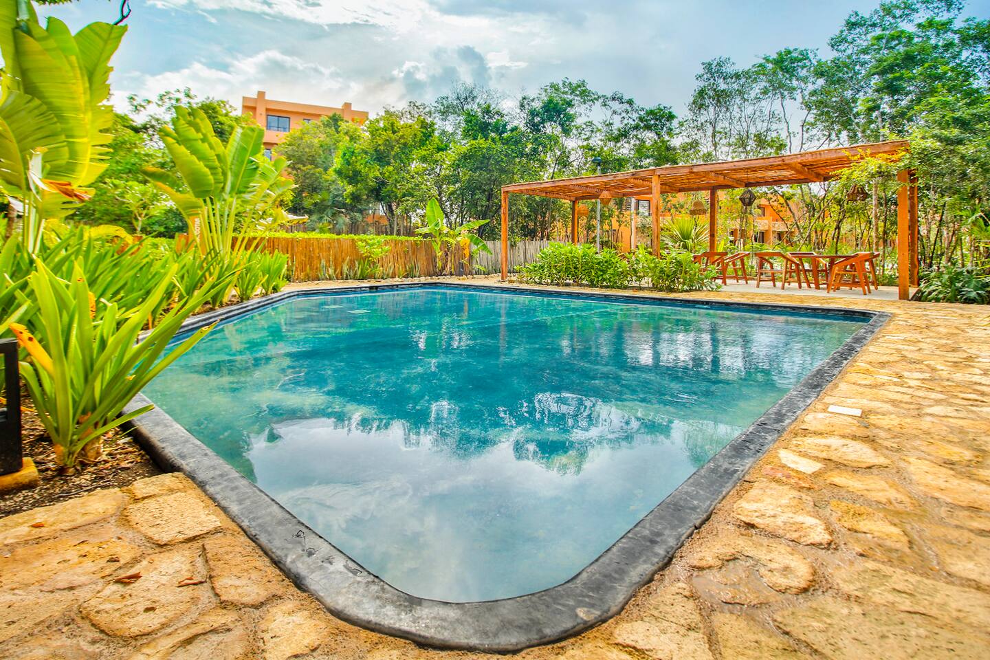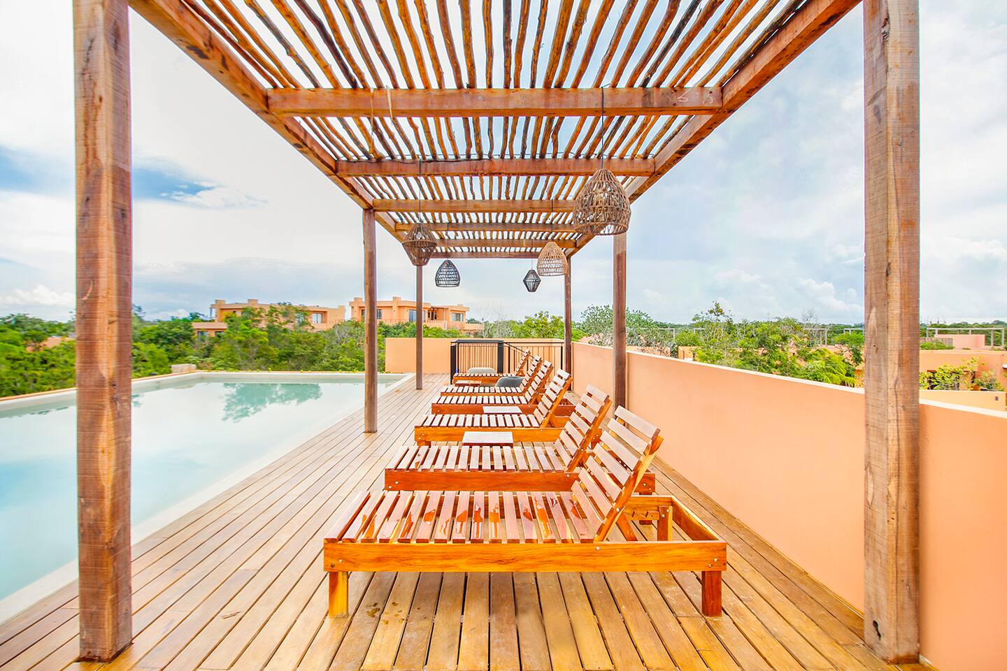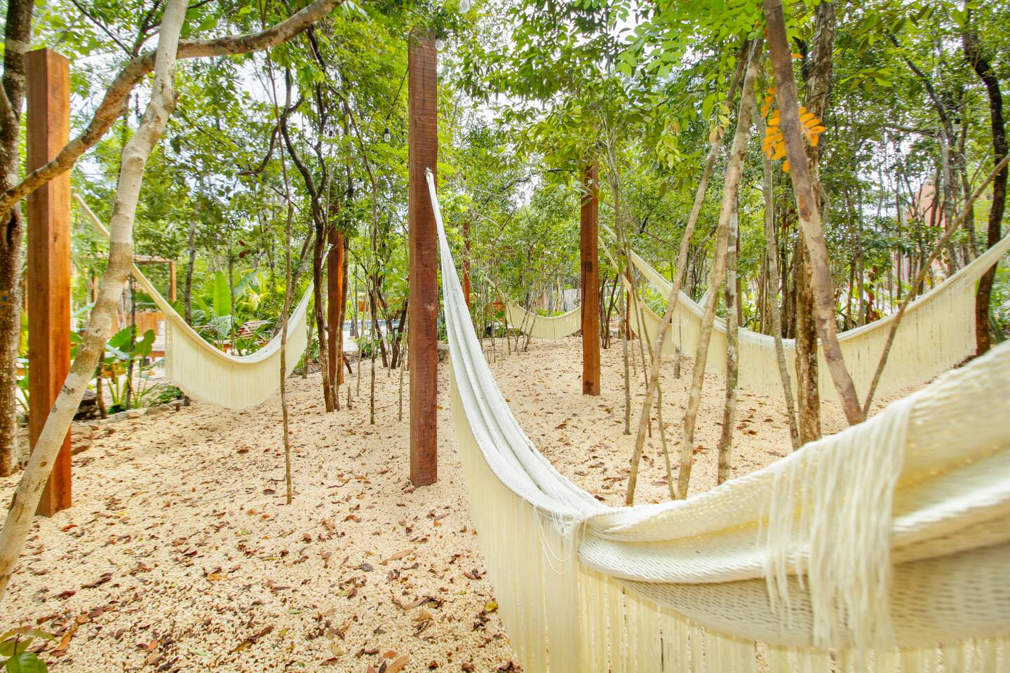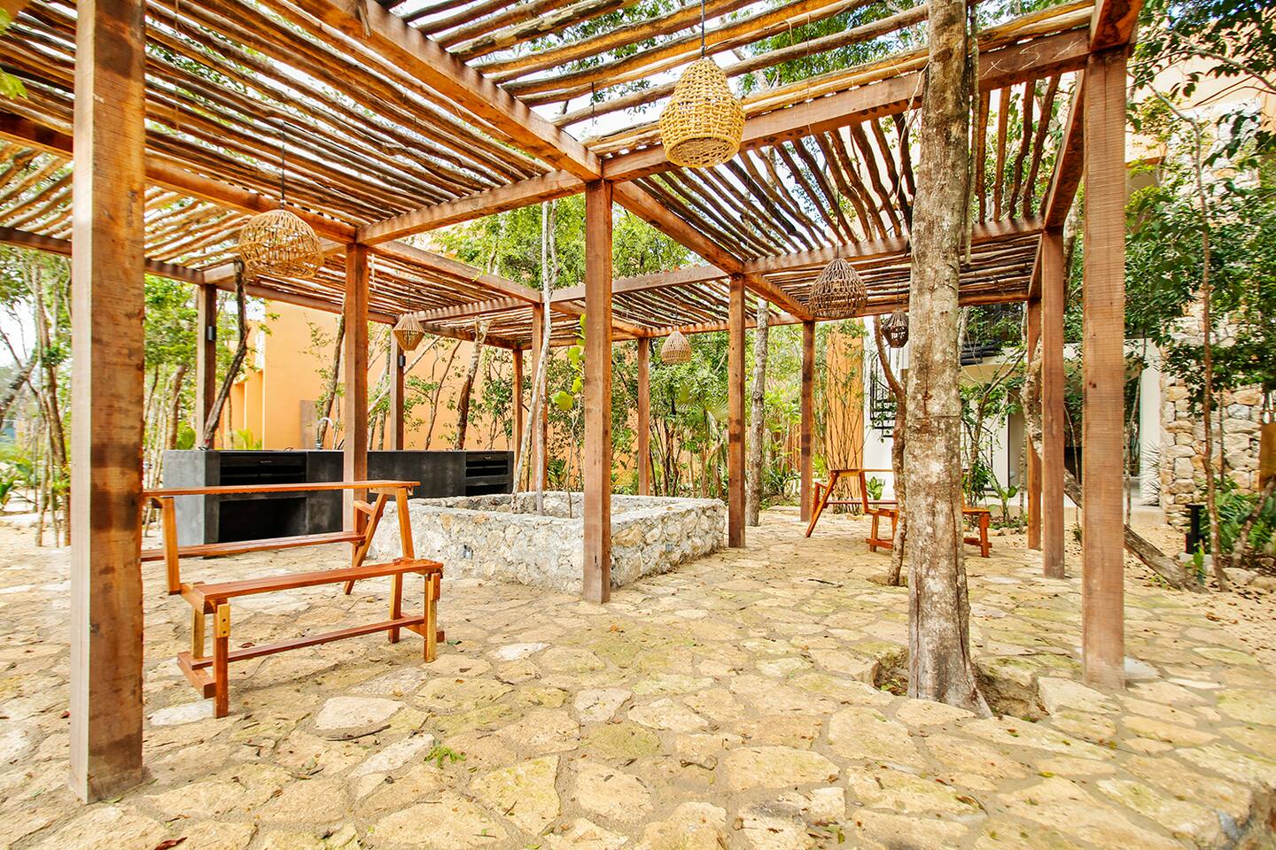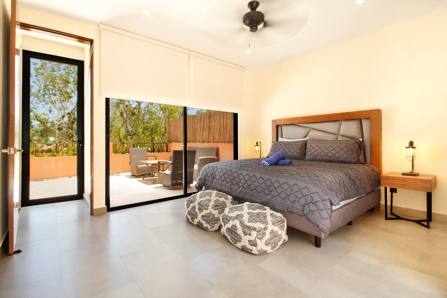 Nestled in a serene, private neighborhood surrounded by lush jungle, this charming home offers the perfect escape for those seeking tranquility and comfort. With ample outdoor space including a ground floor rear terrace with an outdoor dining table, and double terraces leading out from the upstairs master bedroom with outdoor seating, it's ideal for enjoying the natural beauty of the area. Inside, every room is equipped with air conditioning and high-speed Wi-Fi for your convenience. Each of the three bedrooms features plush mattresses, premium pillows, and hotel-quality linens as well as carefully curated decor. The master bedroom on the second floor boasts a luxurious king-size bed, two terraces, an ensuite bathroom and lots of closet space. The two bedrooms on the ground level are furnished with comfortable queen-sized beds and plenty of closet space. Towels, including both bath and pool towels, are provided throughout your stay. The open-concept living and dining area on the ground level is perfect for entertaining or relaxing with loved ones. The fully equipped kitchen, complete with a gas range, allows for easy meal preparation, while the large dining tables, both inside and outside, are great for family meals. The spacious living room features a comfortable sectional sofa and a flat-screen smart TV with streaming services like Netflix and YouTube for your entertainment. The highlight of this home is the amazing amenities within the complex including two gyms, two pools (one kid friendly, one adults only), co-working space, outdoor kitchen and BBQ area, hammock area, dog park, childrens park, guest parking, and 24 hour security. This home combines modern comfort with a peaceful jungle retreat, offering the perfect blend of relaxation and luxury. Your reservation also includes a full service concierge that can assist you with airport transportation, private chef services, massage and wellness services, tours and excursions, ATVs and scooter rentals, beach club reservations, and much more. We look forward to hosting you and providing an unforgettable stay in Tulum!