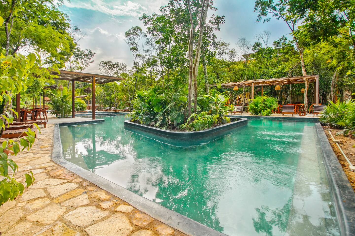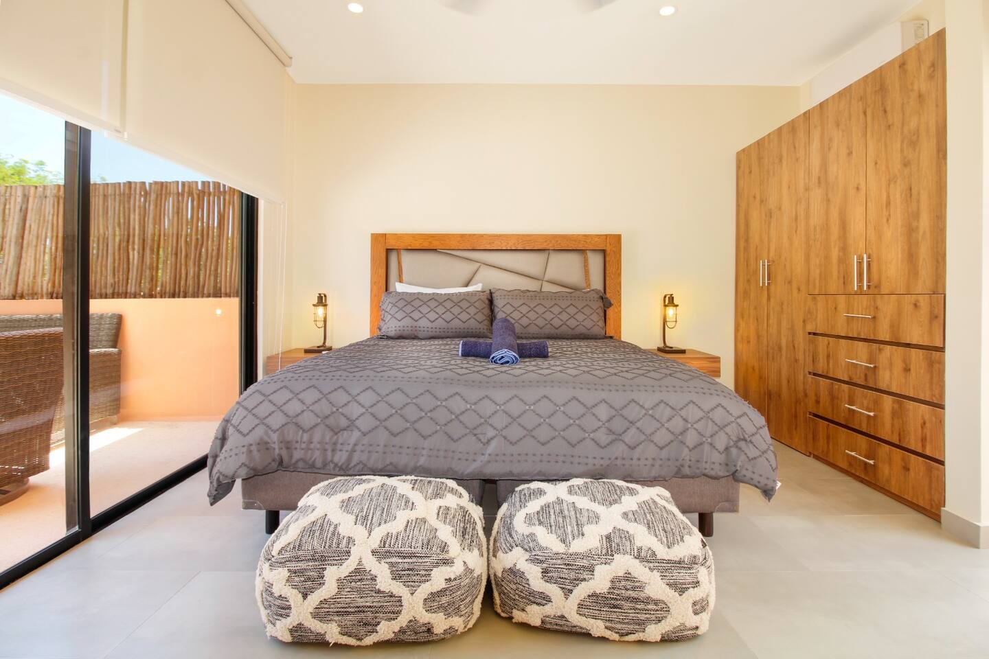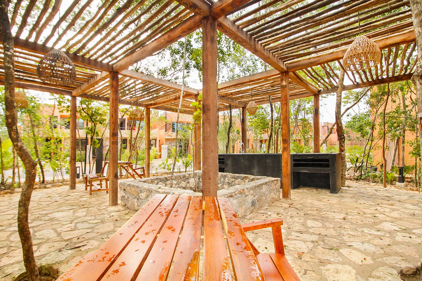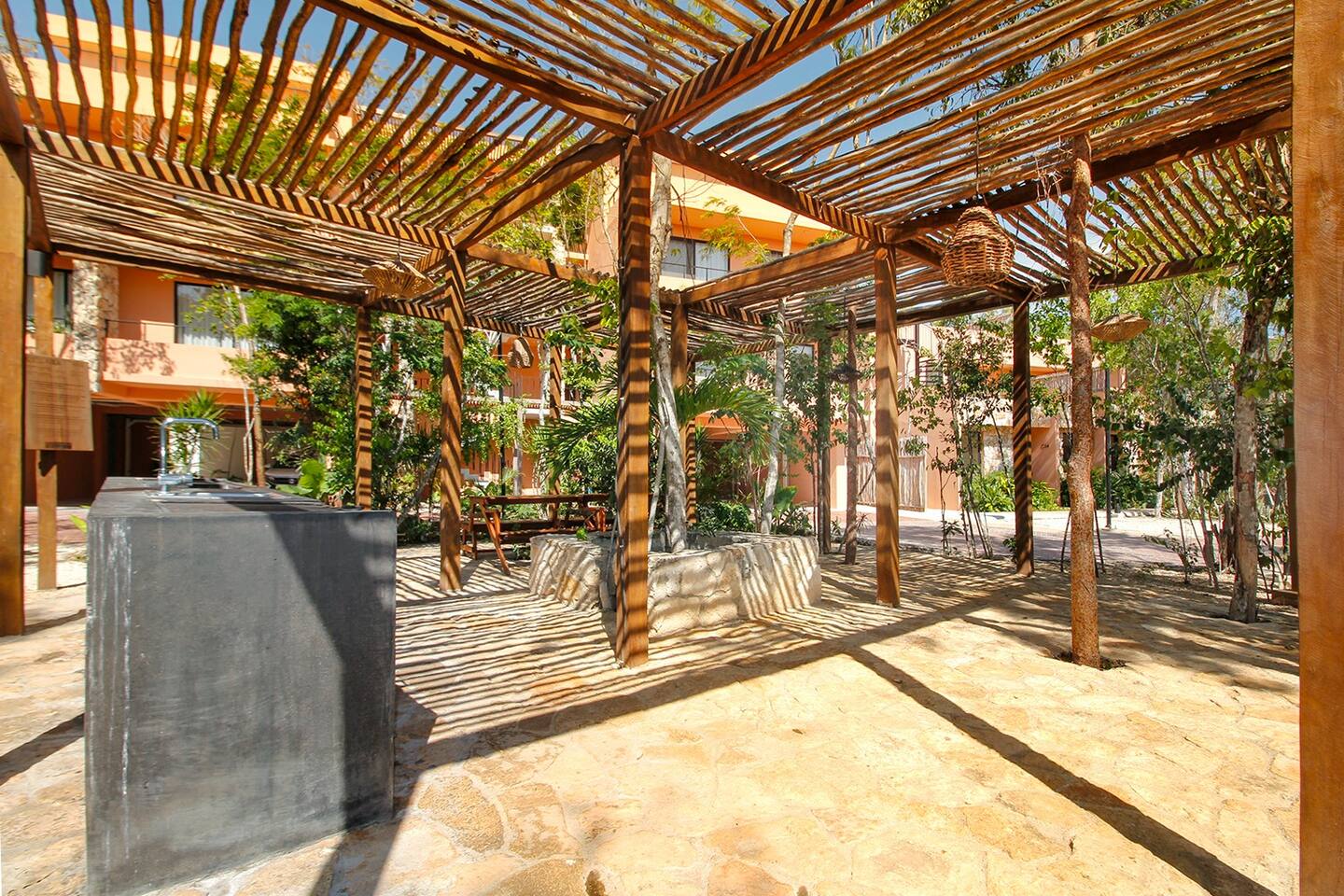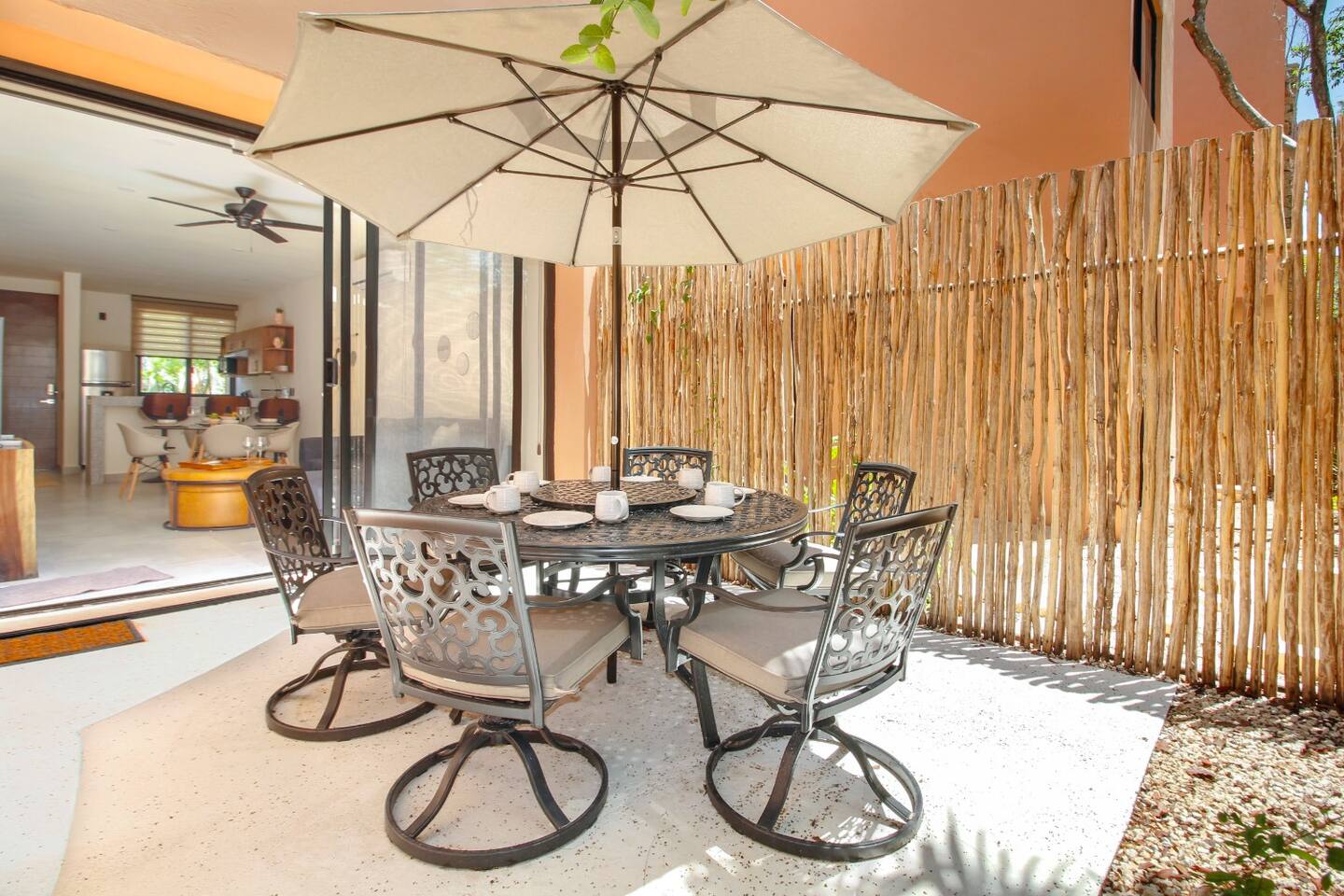 Nestled in a serene, private neighborhood surrounded by lush jungle, this charming home offers the perfect escape for those seeking tranquility and comfort. With ample outdoor space including a ground floor rear terrace with an outdoor dining table, and double terraces leading out from the upstairs master bedroom with outdoor seating, it's ideal for enjoying the natural beauty of the area. Inside, every room is equipped with air conditioning and high-speed Wi-Fi for your convenience. Each of the three bedrooms features plush mattresses, premium pillows, and hotel-quality linens as well as carefully curated decor. The master bedroom on the second floor boasts a luxurious king-size bed, two terraces, an ensuite bathroom and lots of closet space. The two bedrooms on the ground level are furnished with comfortable queen-sized beds and plenty of closet space. Towels, including both bath and pool towels, are provided throughout your stay. The open-concept living and dining area on the ground level is perfect for entertaining or relaxing with loved ones. The fully equipped kitchen, complete with a gas range, allows for easy meal preparation, while the large dining tables, both inside and outside, are great for family meals. The spacious living room features a comfortable sectional sofa and a flat-screen smart TV with streaming services like Netflix and YouTube for your entertainment. The highlight of this home is the amazing amenities within the complex including two gyms, two pools (one kid friendly, one adults only), co-working space, outdoor kitchen and BBQ area, hammock area, dog park, childrens park, guest parking, and 24 hour security. This home combines modern comfort with a peaceful jungle retreat, offering the perfect blend of relaxation and luxury. Your reservation also includes a full service concierge that can assist you with airport transportation, private chef services, massage and wellness services, tours and excursions, ATVs and scooter rentals, beach club reservations, and much more. We look forward to hosting you and providing an unforgettable stay in Tulum!