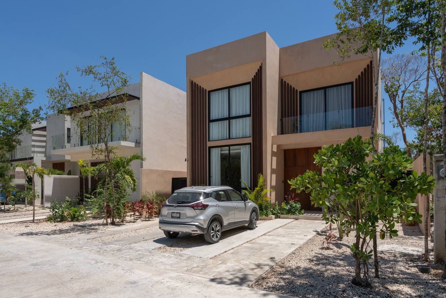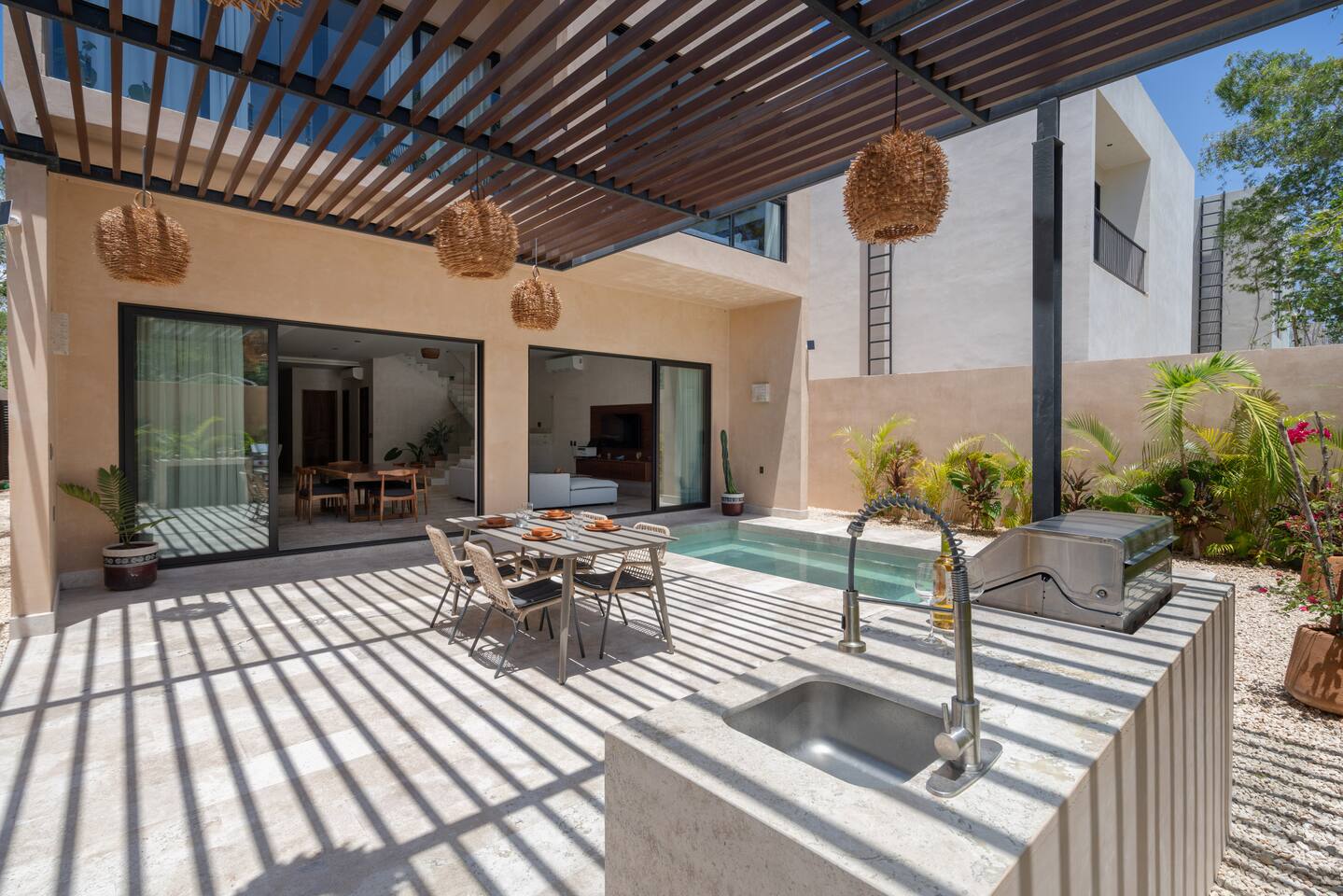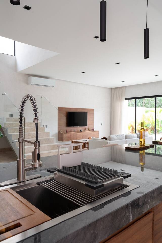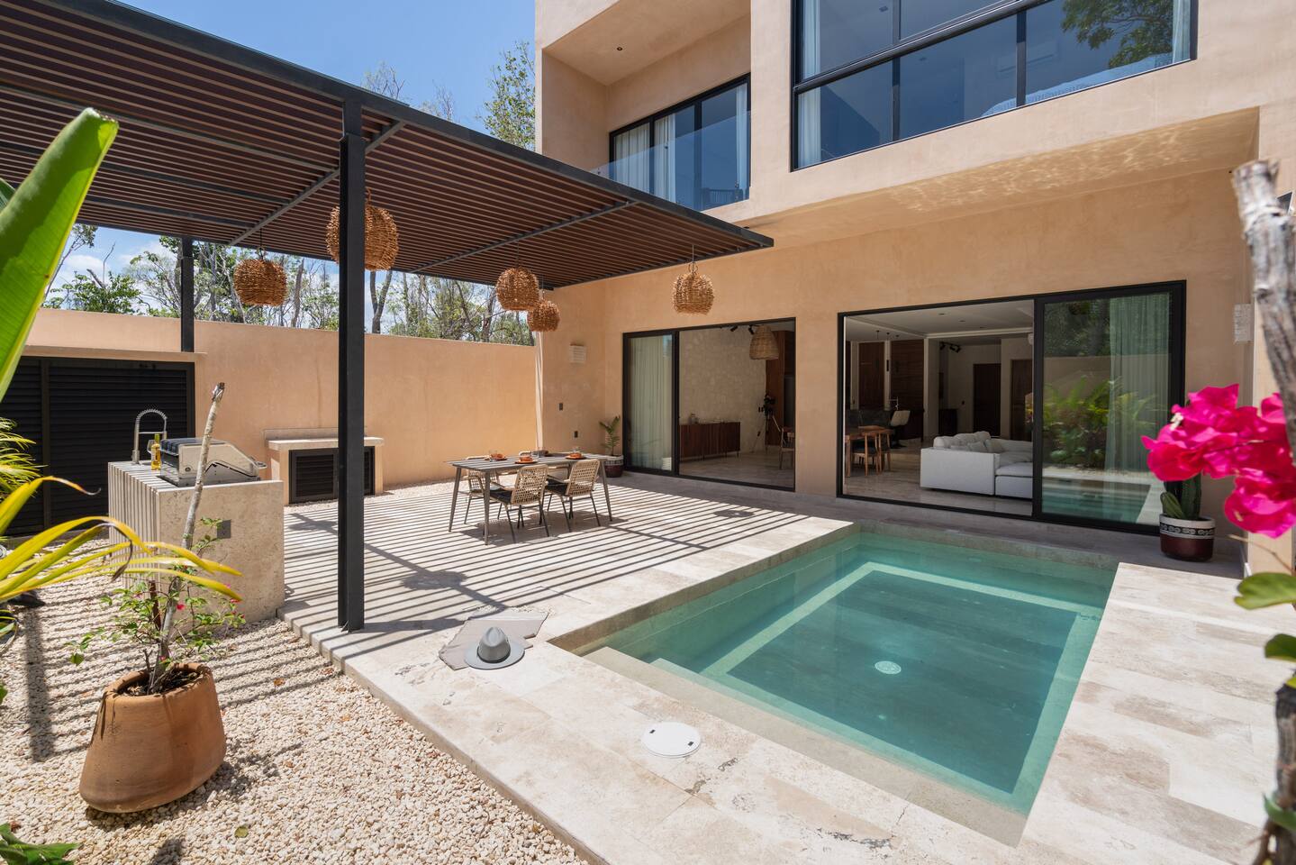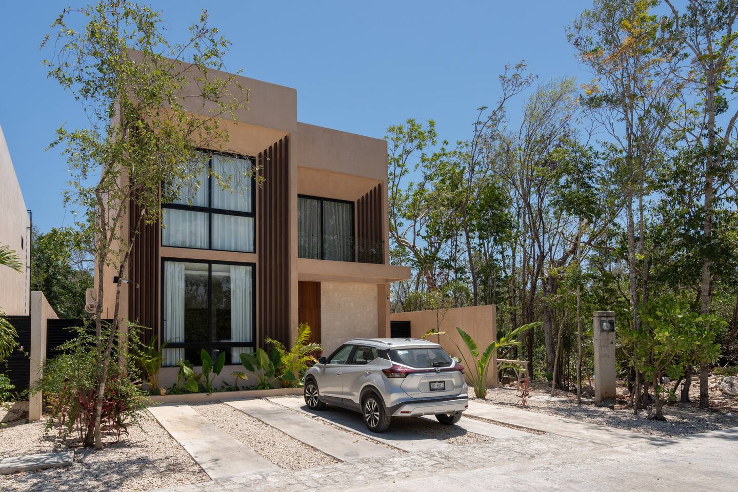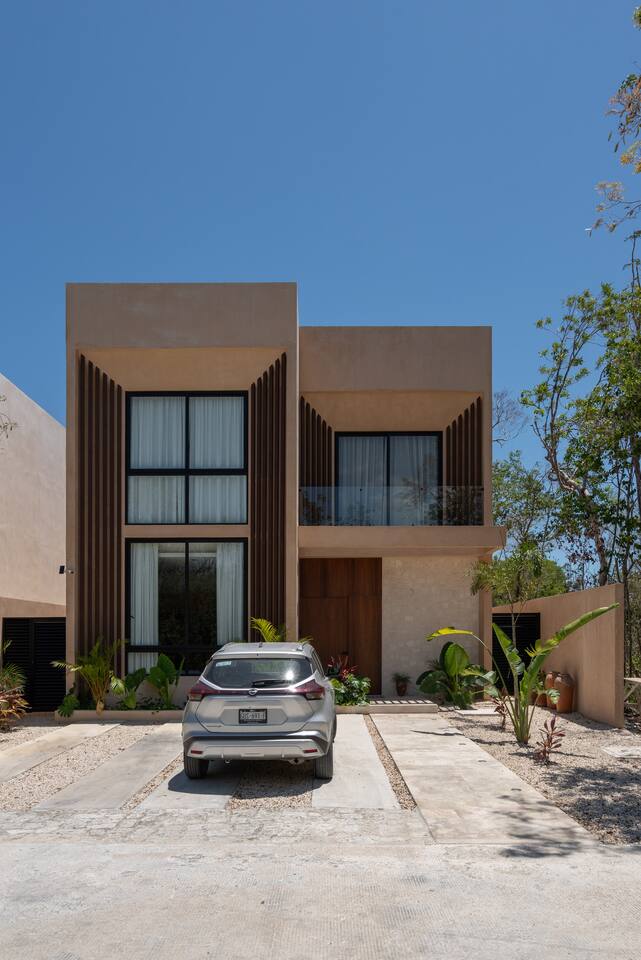 Luxurious private oasis, a hidden gem nestled in the heart of Tulum within the exclusive gated community of Kaybé. This stunning four-bedroom, two-story home blends modern sophistication with the beauty of the surrounding jungle, creating the perfect retreat for a relaxing and unforgettable stay. As you step inside, you’re welcomed by a bright and spacious open-concept living area designed with contemporary elegance and comfort in mind. Large windows allow natural light to flood the home, creating a seamless connection between the indoor living space and the lush outdoor surroundings. The massive fully equipped kitchen is a true highlight of the home, featuring high-end appliances, expansive countertops, and plenty of space for cooking, entertaining, and gathering with family and friends. Just steps away, the dining and living areas flow effortlessly together, making the entire home feel open, airy, and inviting. Each of the four bedrooms is thoughtfully designed for comfort and privacy, with plush bedding, generous storage, and beautifully designed bathrooms. The home also includes a private gym, allowing you to keep up with your fitness routine without ever leaving the property. Step outside to your private backyard oasis. Surrounded by tropical greenery, you’ll find a beautiful pool, outdoor dining area, and BBQ — the perfect setting for relaxing afternoons, sunbathing, or enjoying meals under the stars. This home also offers private parking for two vehicles and is located within the prestigious Kaybé gated community, which provides 24-hour security with a QR code access system for peace of mind. Guests also enjoy access to Kaybé’s exceptional common amenities, including a massive resort-style pool, jacuzzi, sauna, clubhouse, pool lounge, fully equipped gym, paddle courts, children’s play area, and a relaxing spa. The community is surrounded by scenic jungle paths that are perfect for biking or peaceful walks through nature. This home is more than just a place to stay, it’s a private sanctuary where luxury, comfort, and nature come together to create an unforgettable Tulum experience. 🌴✨