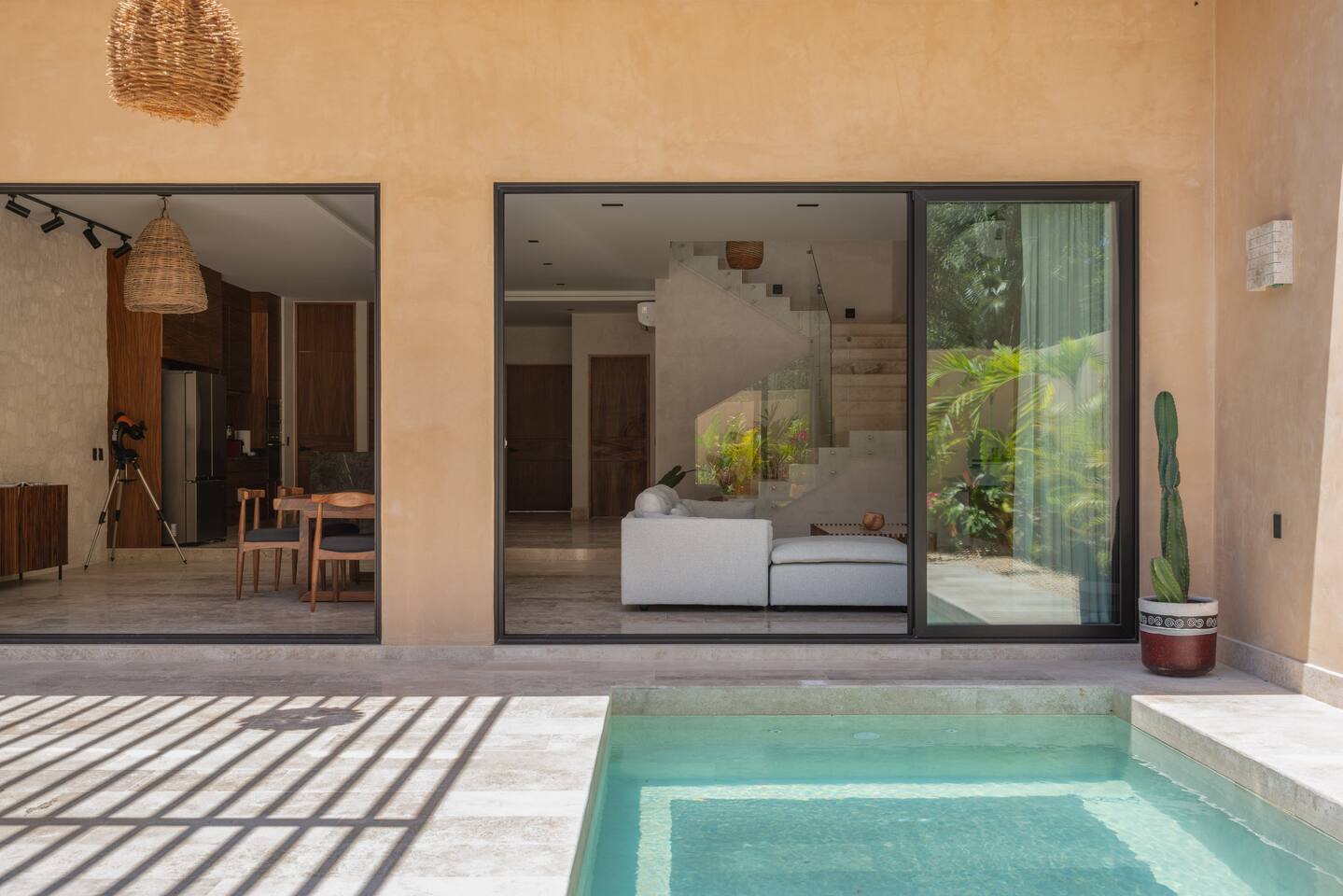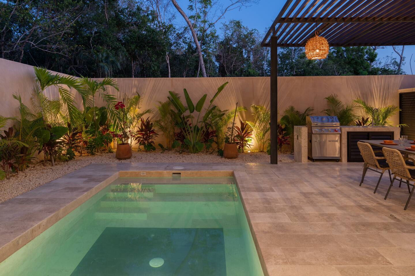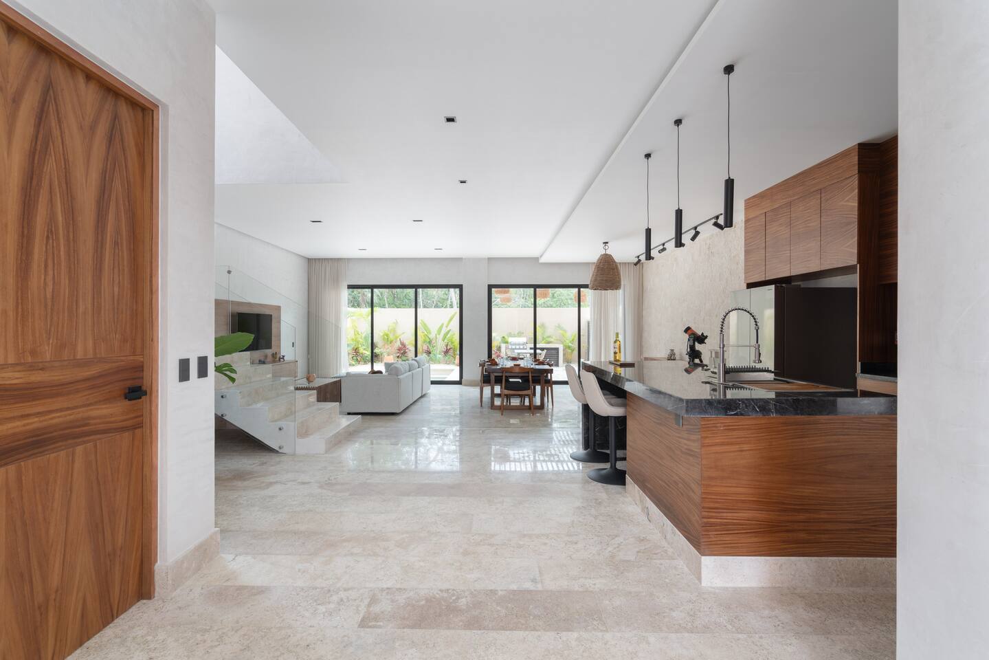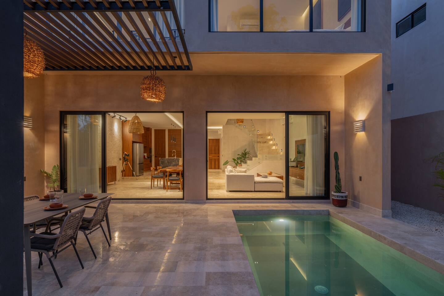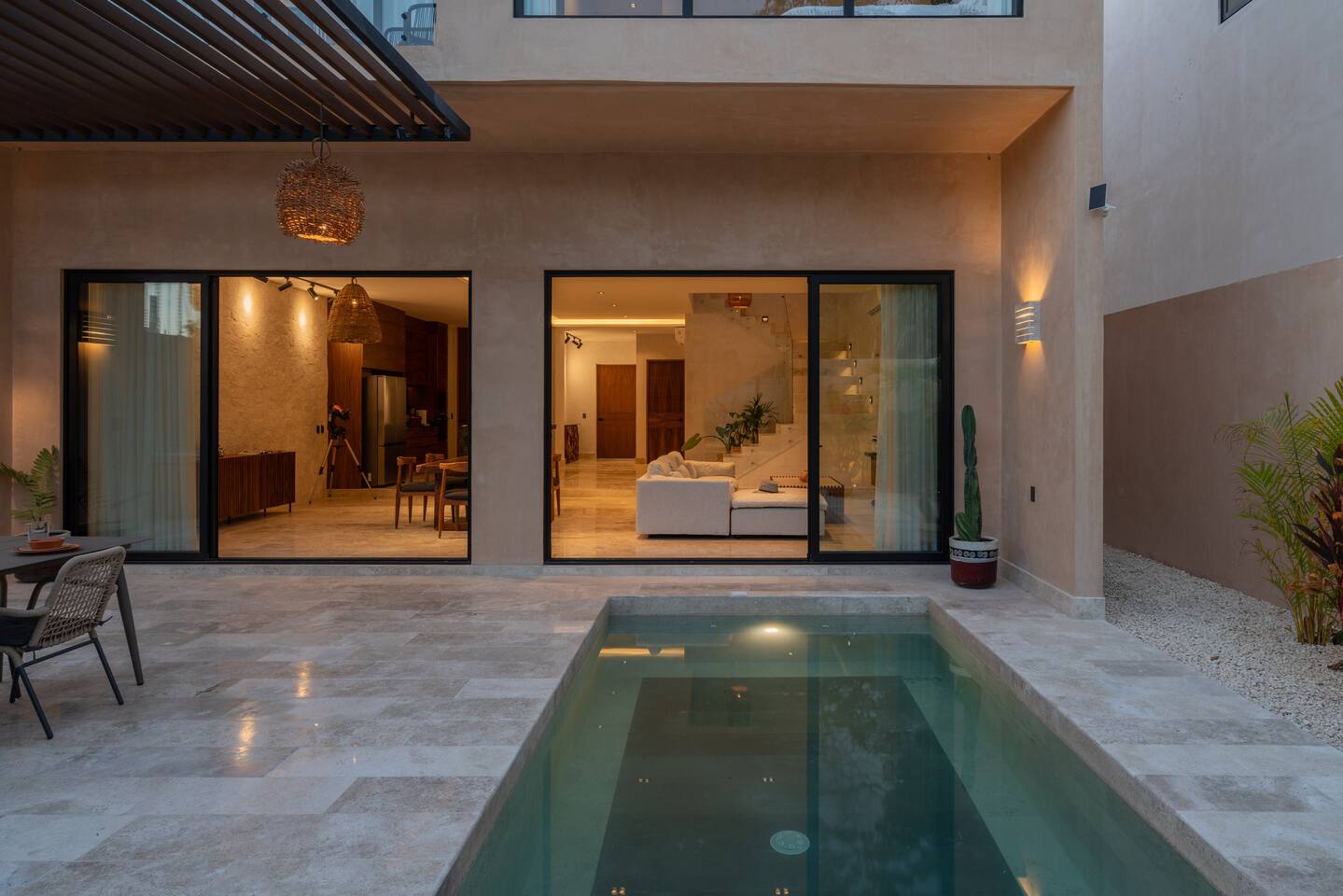 Luxurious private oasis, a hidden gem nestled in the heart of Tulum within the exclusive gated community of Kaybé. This stunning four-bedroom, two-story home blends modern sophistication with the beauty of the surrounding jungle, creating the perfect retreat for a relaxing and unforgettable stay. As you step inside, you’re welcomed by a bright and spacious open-concept living area designed with contemporary elegance and comfort in mind. Large windows allow natural light to flood the home, creating a seamless connection between the indoor living space and the lush outdoor surroundings. The massive fully equipped kitchen is a true highlight of the home, featuring high-end appliances, expansive countertops, and plenty of space for cooking, entertaining, and gathering with family and friends. Just steps away, the dining and living areas flow effortlessly together, making the entire home feel open, airy, and inviting. Each of the four bedrooms is thoughtfully designed for comfort and privacy, with plush bedding, generous storage, and beautifully designed bathrooms. The home also includes a private gym, allowing you to keep up with your fitness routine without ever leaving the property. Step outside to your private backyard oasis. Surrounded by tropical greenery, you’ll find a beautiful pool, outdoor dining area, and BBQ — the perfect setting for relaxing afternoons, sunbathing, or enjoying meals under the stars. This home also offers private parking for two vehicles and is located within the prestigious Kaybé gated community, which provides 24-hour security with a QR code access system for peace of mind. Guests also enjoy access to Kaybé’s exceptional common amenities, including a massive resort-style pool, jacuzzi, sauna, clubhouse, pool lounge, fully equipped gym, paddle courts, children’s play area, and a relaxing spa. The community is surrounded by scenic jungle paths that are perfect for biking or peaceful walks through nature. This home is more than just a place to stay, it’s a private sanctuary where luxury, comfort, and nature come together to create an unforgettable Tulum experience. 🌴✨