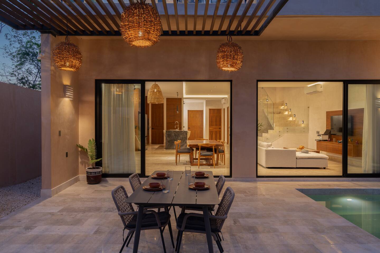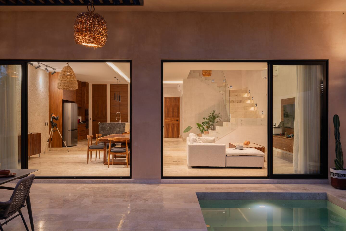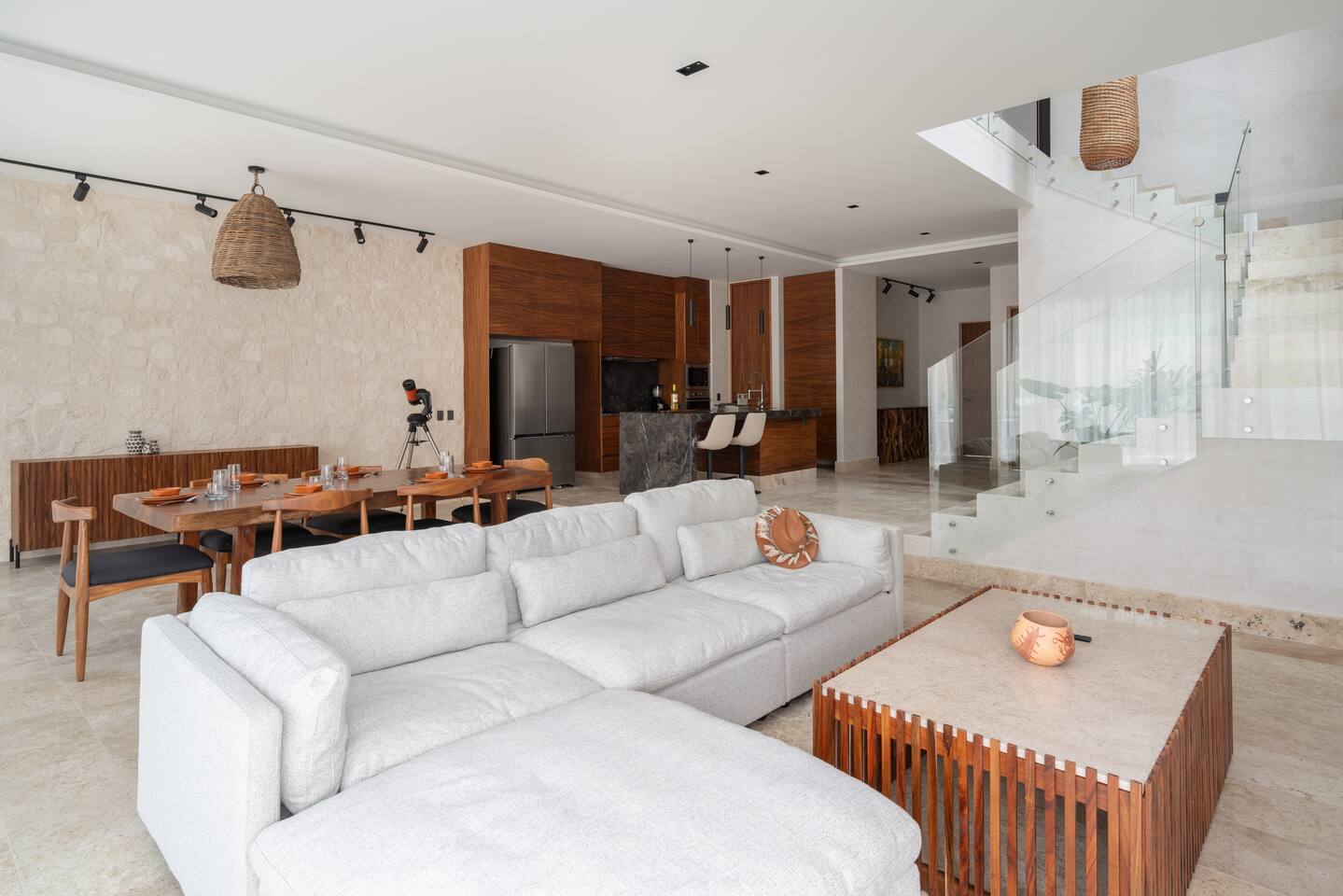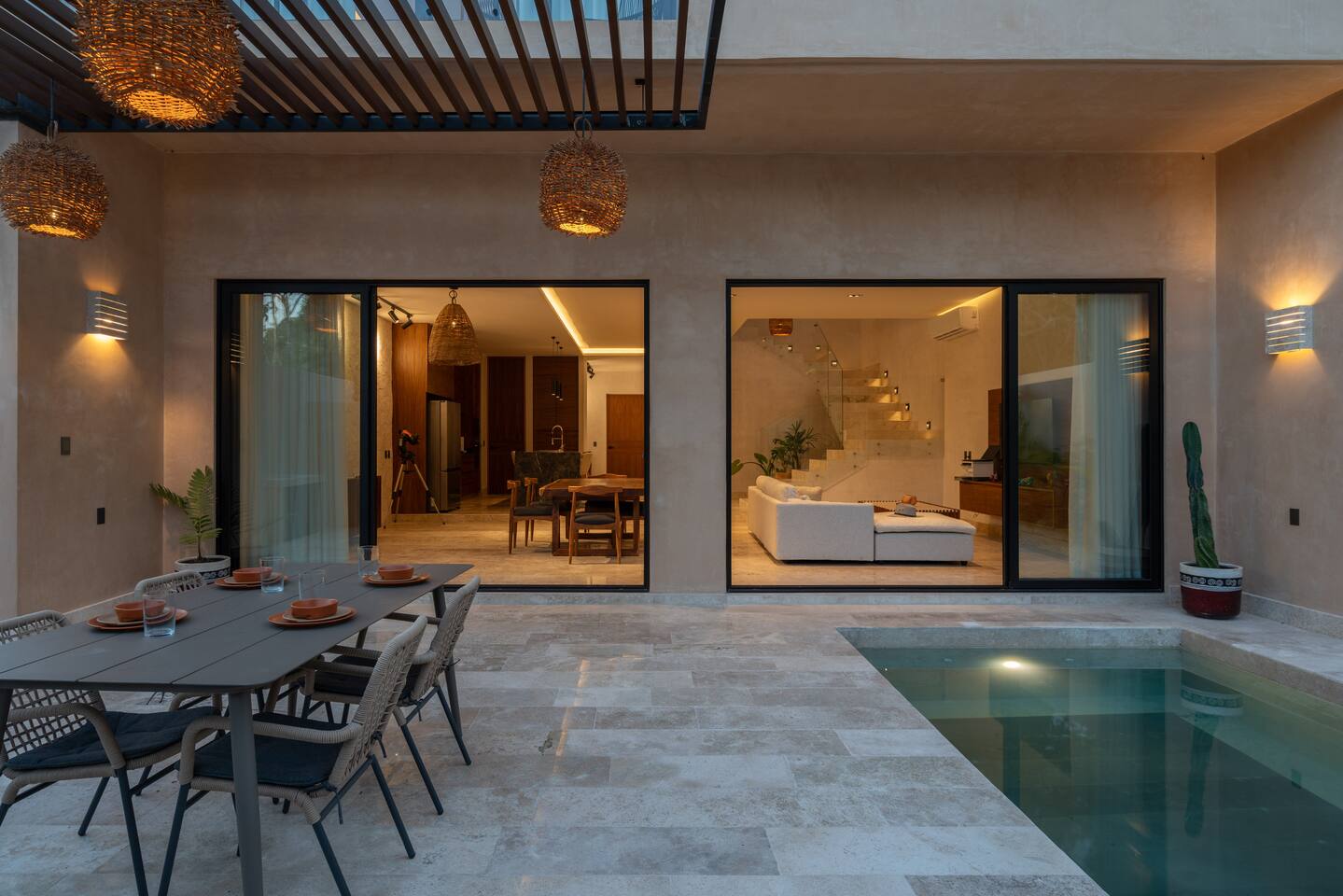 Luxurious private oasis, a hidden gem nestled in the heart of Tulum within the exclusive gated community of Kaybé. This stunning four-bedroom, two-story home blends modern sophistication with the beauty of the surrounding jungle, creating the perfect retreat for a relaxing and unforgettable stay. As you step inside, you’re welcomed by a bright and spacious open-concept living area designed with contemporary elegance and comfort in mind. Large windows allow natural light to flood the home, creating a seamless connection between the indoor living space and the lush outdoor surroundings. The massive fully equipped kitchen is a true highlight of the home, featuring high-end appliances, expansive countertops, and plenty of space for cooking, entertaining, and gathering with family and friends. Just steps away, the dining and living areas flow effortlessly together, making the entire home feel open, airy, and inviting. Each of the four bedrooms is thoughtfully designed for comfort and privacy, with plush bedding, generous storage, and beautifully designed bathrooms. The home also includes a private gym, allowing you to keep up with your fitness routine without ever leaving the property. Step outside to your private backyard oasis. Surrounded by tropical greenery, you’ll find a beautiful pool, outdoor dining area, and BBQ — the perfect setting for relaxing afternoons, sunbathing, or enjoying meals under the stars. This home also offers private parking for two vehicles and is located within the prestigious Kaybé gated community, which provides 24-hour security with a QR code access system for peace of mind. Guests also enjoy access to Kaybé’s exceptional common amenities, including a massive resort-style pool, jacuzzi, sauna, clubhouse, pool lounge, fully equipped gym, paddle courts, children’s play area, and a relaxing spa. The community is surrounded by scenic jungle paths that are perfect for biking or peaceful walks through nature. This home is more than just a place to stay, it’s a private sanctuary where luxury, comfort, and nature come together to create an unforgettable Tulum experience. 🌴✨