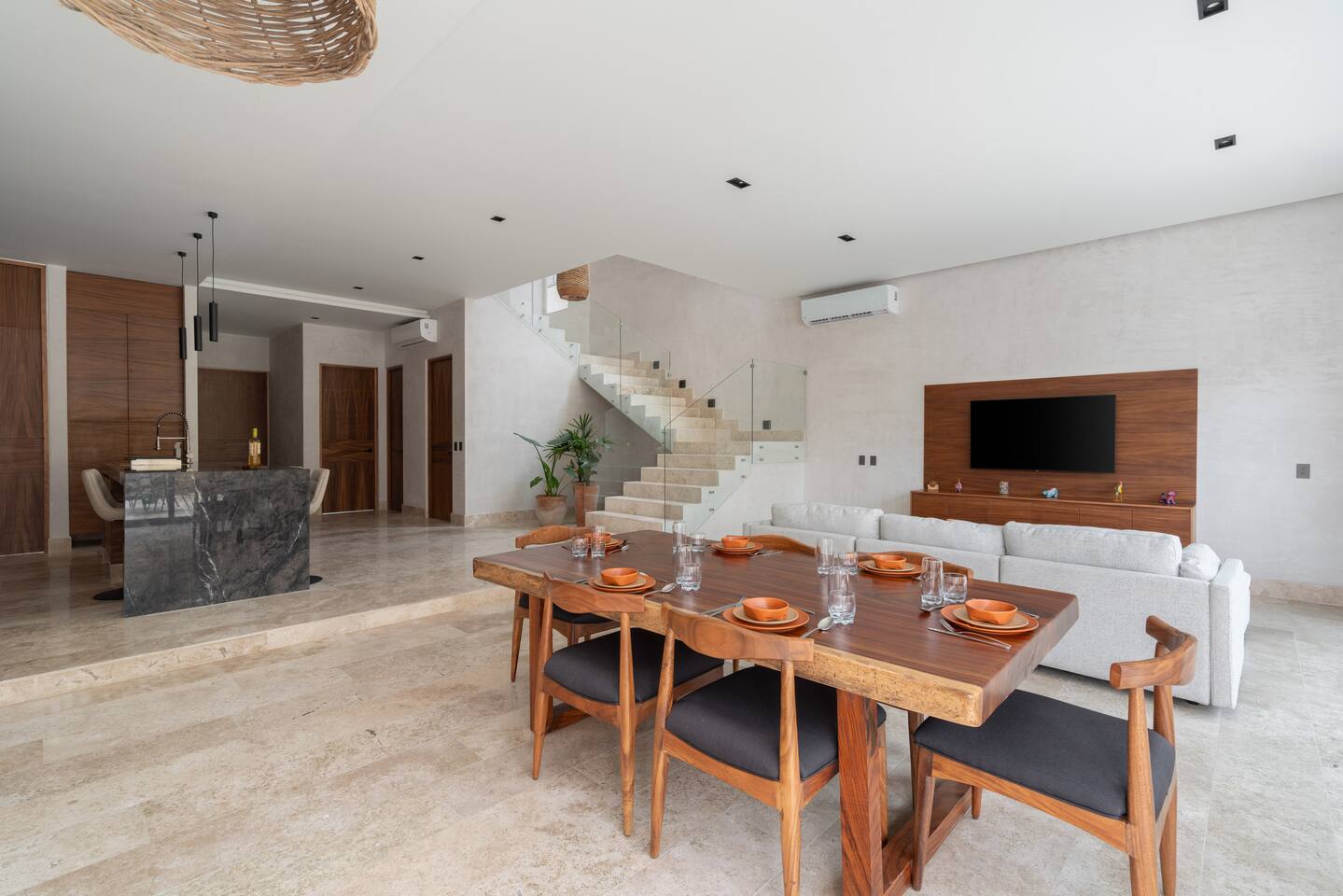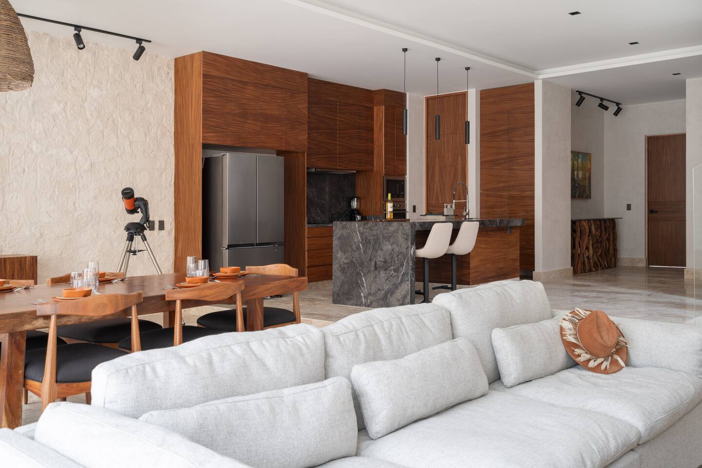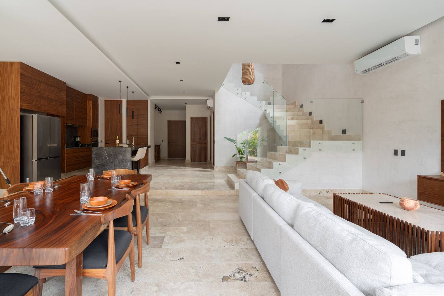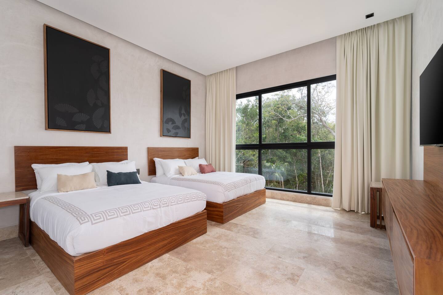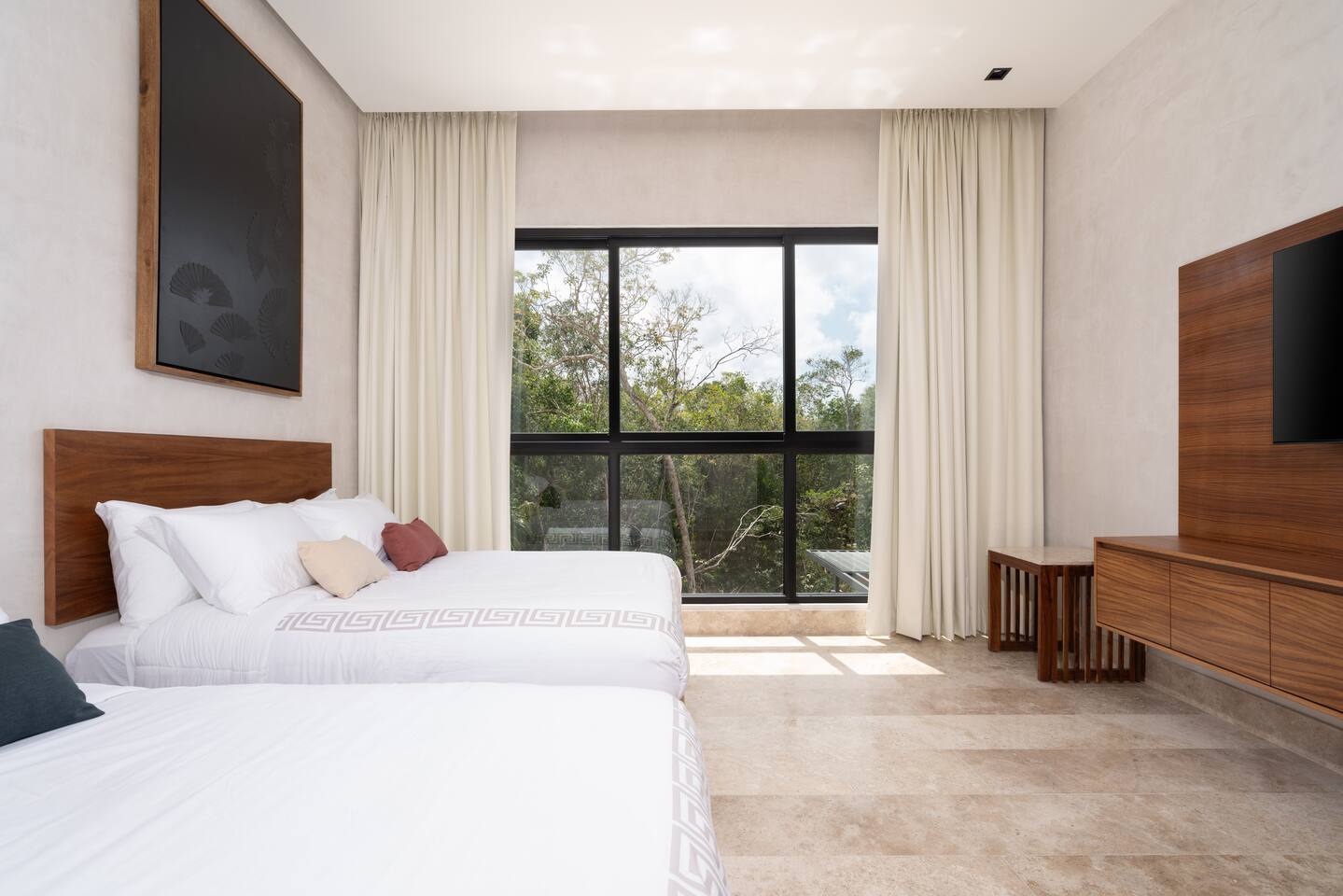 Luxurious private oasis, a hidden gem nestled in the heart of Tulum within the exclusive gated community of Kaybé. This stunning four-bedroom, two-story home blends modern sophistication with the beauty of the surrounding jungle, creating the perfect retreat for a relaxing and unforgettable stay. As you step inside, you’re welcomed by a bright and spacious open-concept living area designed with contemporary elegance and comfort in mind. Large windows allow natural light to flood the home, creating a seamless connection between the indoor living space and the lush outdoor surroundings. The massive fully equipped kitchen is a true highlight of the home, featuring high-end appliances, expansive countertops, and plenty of space for cooking, entertaining, and gathering with family and friends. Just steps away, the dining and living areas flow effortlessly together, making the entire home feel open, airy, and inviting. Each of the four bedrooms is thoughtfully designed for comfort and privacy, with plush bedding, generous storage, and beautifully designed bathrooms. The home also includes a private gym, allowing you to keep up with your fitness routine without ever leaving the property. Step outside to your private backyard oasis. Surrounded by tropical greenery, you’ll find a beautiful pool, outdoor dining area, and BBQ — the perfect setting for relaxing afternoons, sunbathing, or enjoying meals under the stars. This home also offers private parking for two vehicles and is located within the prestigious Kaybé gated community, which provides 24-hour security with a QR code access system for peace of mind. Guests also enjoy access to Kaybé’s exceptional common amenities, including a massive resort-style pool, jacuzzi, sauna, clubhouse, pool lounge, fully equipped gym, paddle courts, children’s play area, and a relaxing spa. The community is surrounded by scenic jungle paths that are perfect for biking or peaceful walks through nature. This home is more than just a place to stay, it’s a private sanctuary where luxury, comfort, and nature come together to create an unforgettable Tulum experience. 🌴✨