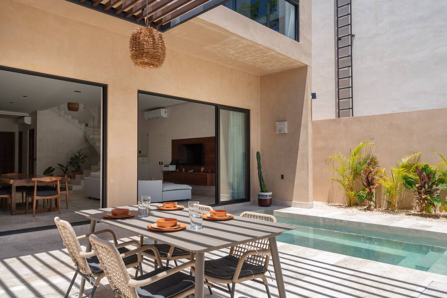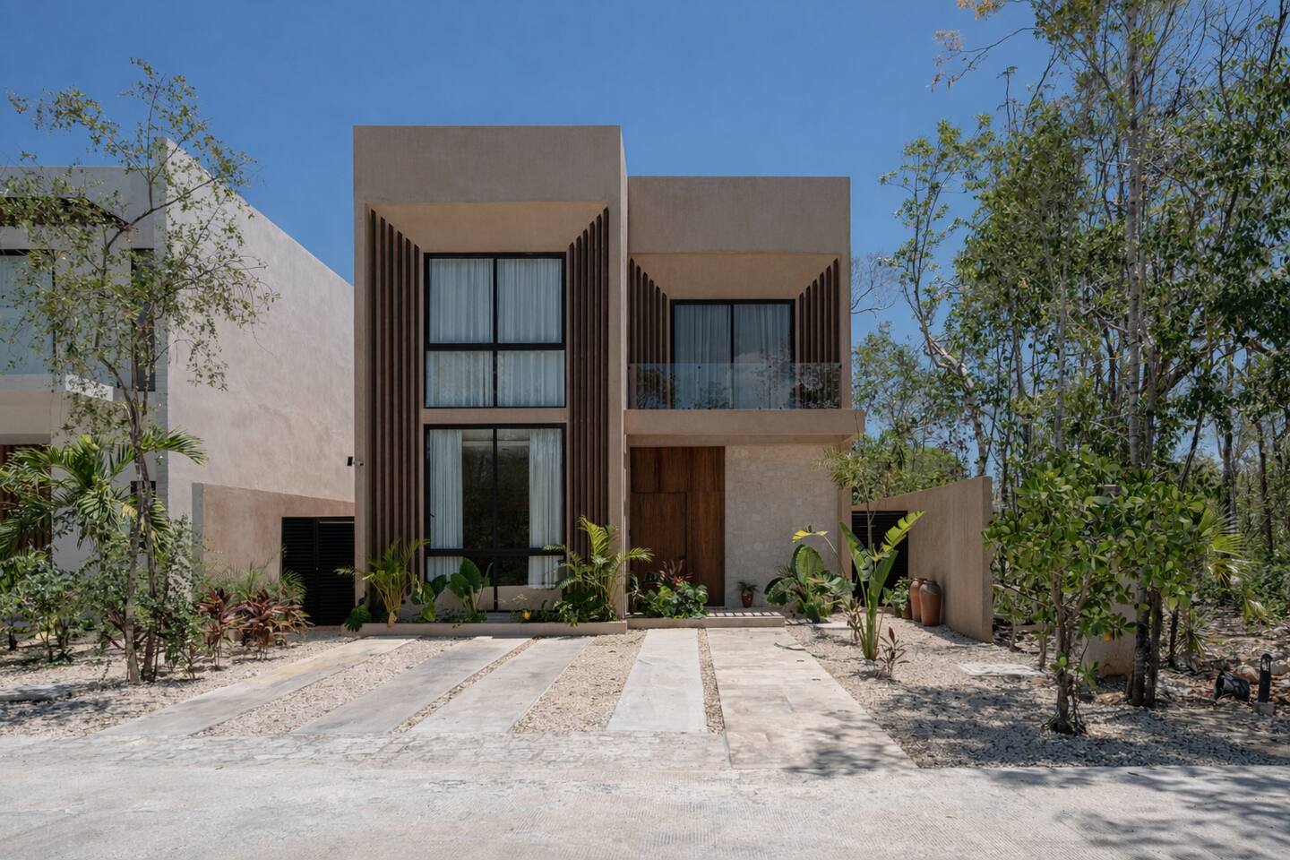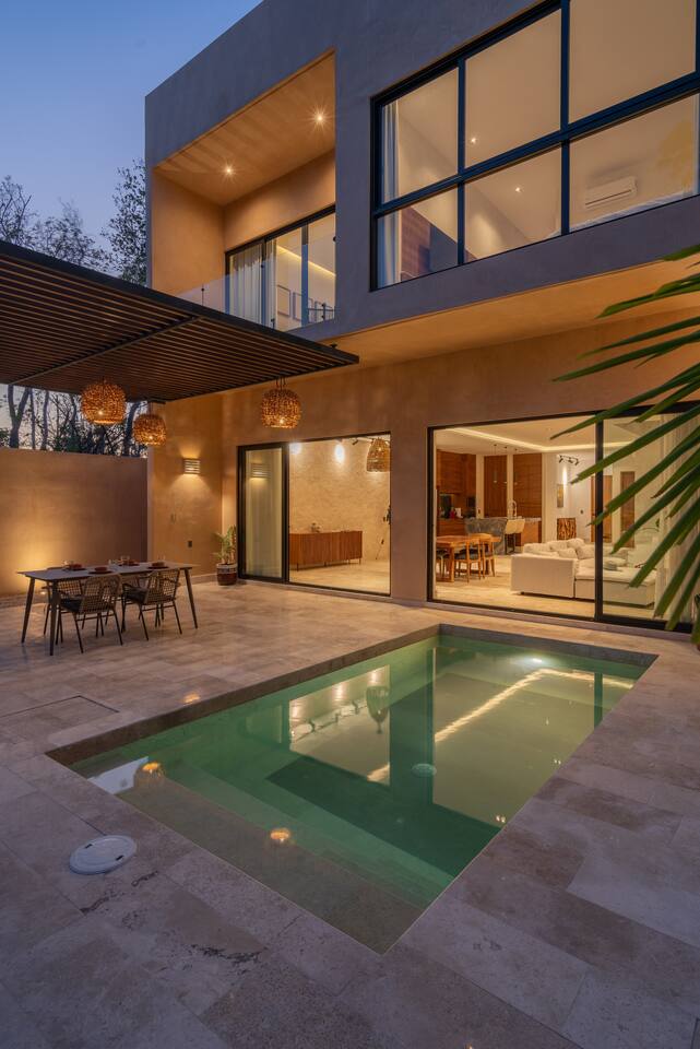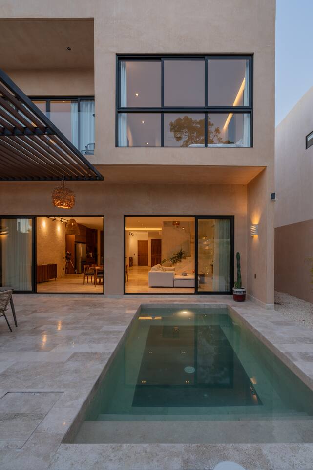 Welcome to Casa Encino, A Beautiful spacious home located a private gated community in downtown Tulum, incredibly safe and peaceful surrounded by trees and nature. Four bedrooms spanning two floors, including a private backyard with a pool and a private gym. A perfect place to explore on bike, see tropical birds and animals, and enjoy peace and quiet with family or friends. Enhance your stay with services like airport transportation, private chef, tours, and more.