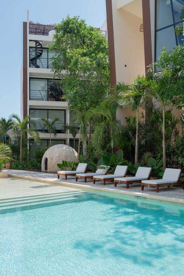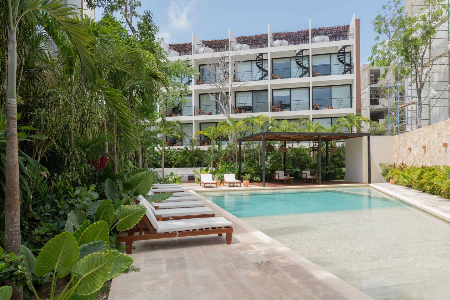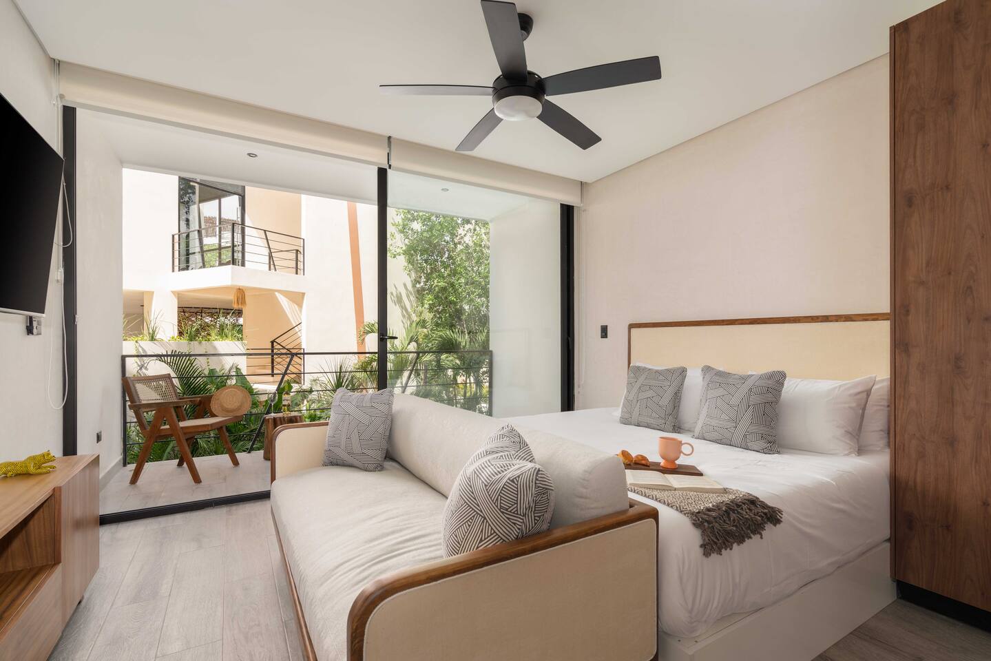 Welcome to Chaac Tulum! This stunning studio suite submerged within Tulum's jungle is just a few minutes away from the beautiful sandy beaches of the Caribbean Sea. Located in a brand new hotel/residence with gorgeous amenities and 24 hour security. The suite is equipped with everything you need to make your stay comfortable and enjoyable, including: • AC • High speed Wi-Fi • Smart TV • King bed with hotel quality linens • Equipped kitchen • On-site gym • Stunning hotel pool