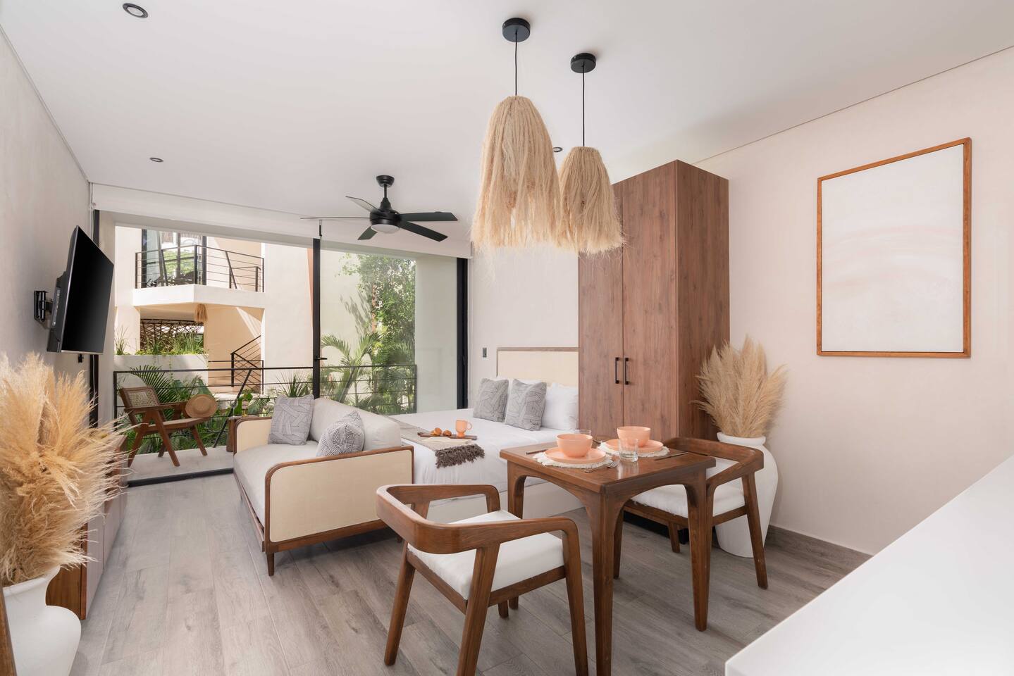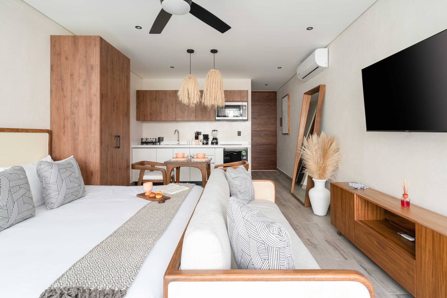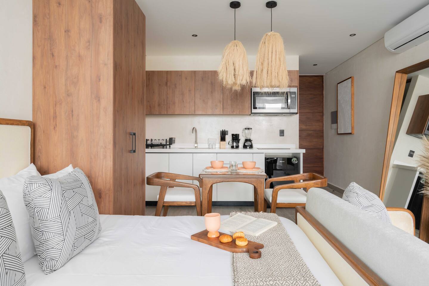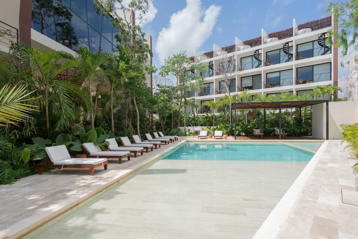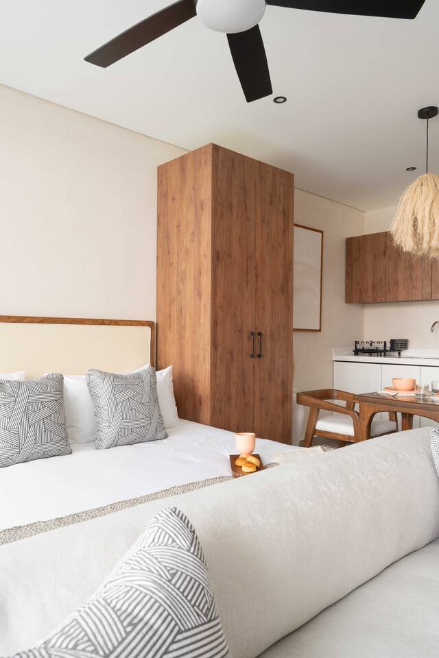 Welcome to Chaac Tulum! This stunning studio suite submerged within Tulum's jungle is just a few minutes away from the beautiful sandy beaches of the Caribbean Sea. Located in a brand new hotel/residence with gorgeous amenities and 24 hour security. The suite is equipped with everything you need to make your stay comfortable and enjoyable, including: • AC • High speed Wi-Fi • Smart TV • King bed with hotel quality linens • Equipped kitchen • On-site gym • Stunning hotel pool
