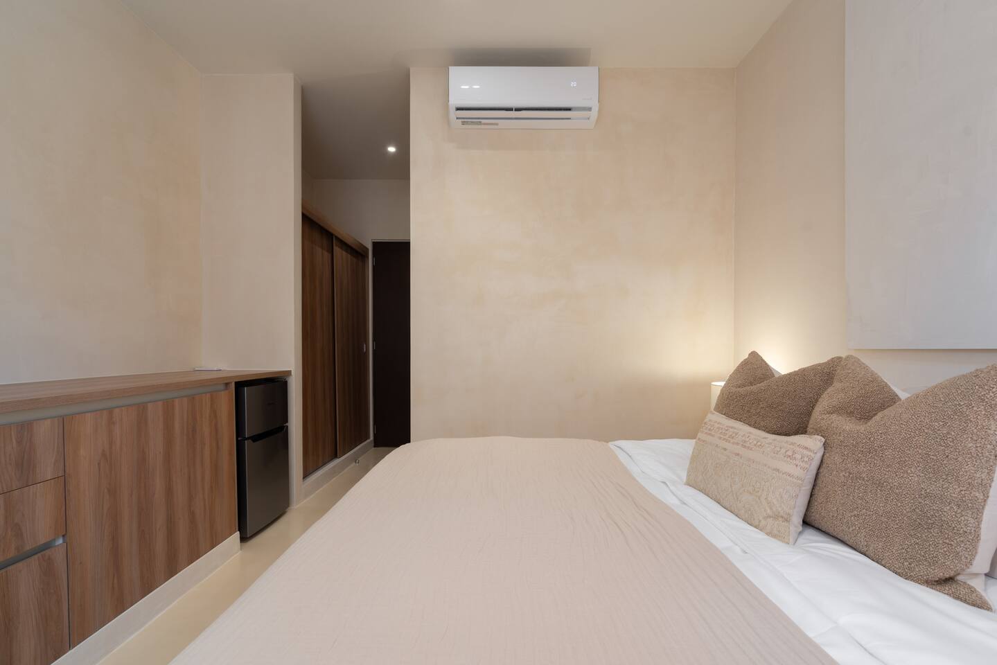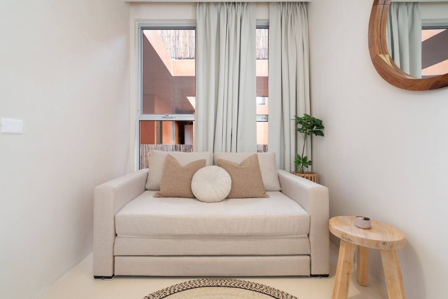The condo is located in the new best zone in “TULUM 101”, a private gated community that is closest to the beach with direct access. It is in a well-planned and exclusive community with finished roads, infrastructure, dedicated green spaces, and conveniently located next to the main beach road Coba Avenue with fabulous new bike path. The location is centrally located with easy access to the beach, the Jaguar National Park and downtown. The condo is a very cozy three-bedroom, with warm light, high-end finishes and Japandi style, high-speed wifi, AC, and hot and cold water. The kitchen is fully equipped with high-end appliances such as a refrigerator, electric stovetop, high-end toaster oven, blender, and coffee maker. Lots of cookware, plates and utensils. There is a dining space with a 6-person dining table and a large kitchen island. The living room has a super comfortable sofa with a SMART TV and applications like Netflix and YouTube. A great place to relax day or night. Open the sliding doors to the balcony to let in the warm Tulum air during the day or night. Two bedrooms are beautiful warm spaces with plush hotel quality King beds in each. High-end mattresses for a feeling of ultimate luxury. Lots of closet space and there are two full bathrooms with lots of counter space and a spacious shower. The master bedroom has an en-suite bathroom and secondary lock-off entrance and a mini fridge. The second bedroom has a balcony, a chair and a built-in desk. The third bedroom space doubles as an office space, it closes off to be a completely secluded office perfect for remote work. The sofa turns into a very comfortable Queen bed. Building amenities include: - Ground-level Olympic pool - Rooftop pool - Stargazing pit on the rooftop - 2 Jacuzzis - Children's wading pool - Children's playground - Gym - Rooftop sundeck & bar - Massage room - Laundry room - Business Center - 24-hour reception - Free Parking Your reservation also includes a full-service concierge who can assist you with airport transportation, private chef services, massage and wellness services, tours and excursions, ATVs and scooter rentals, beach club reservations, and much more. We look forward to hosting you and providing an unforgettable stay in Tulum!