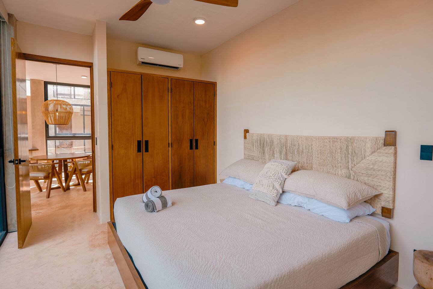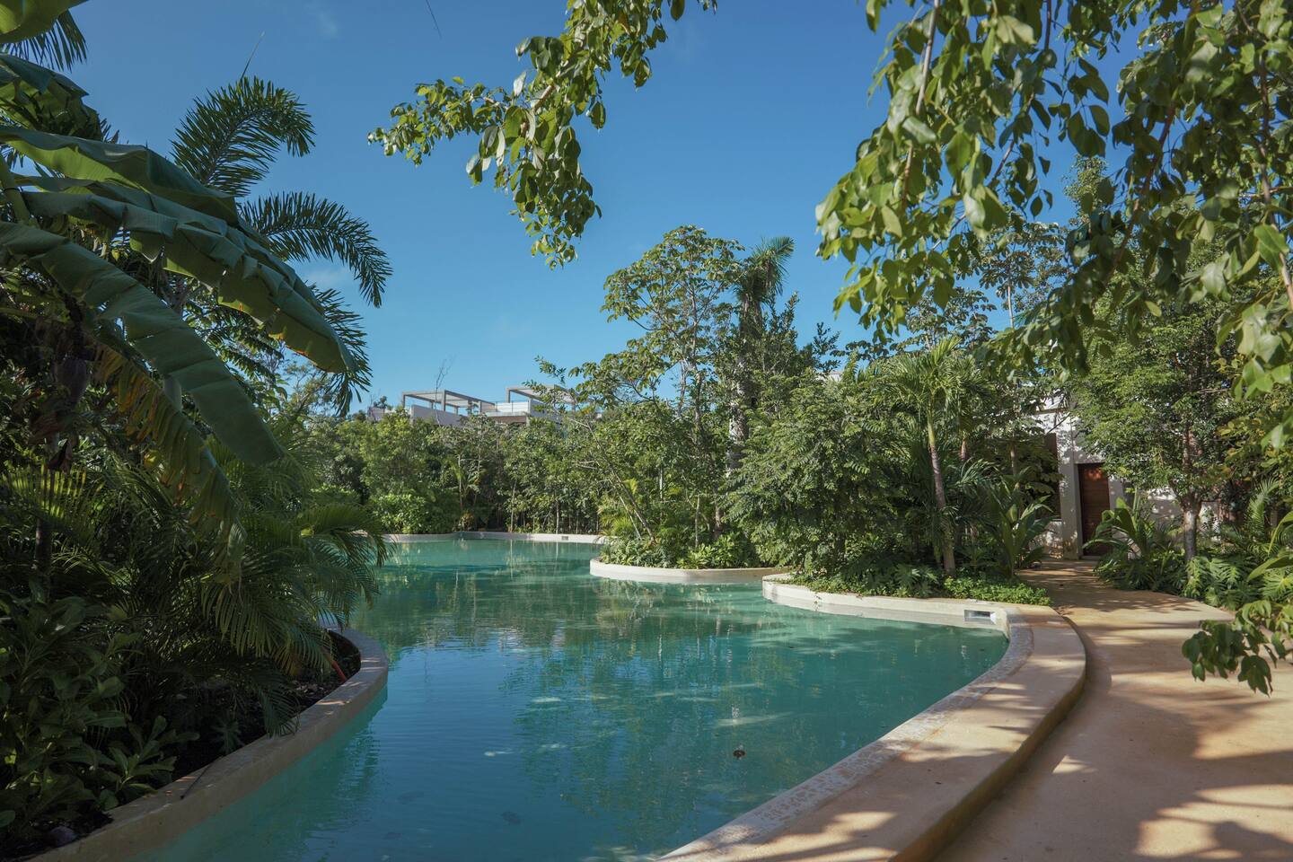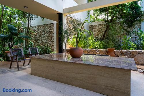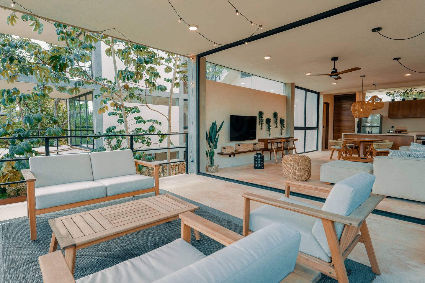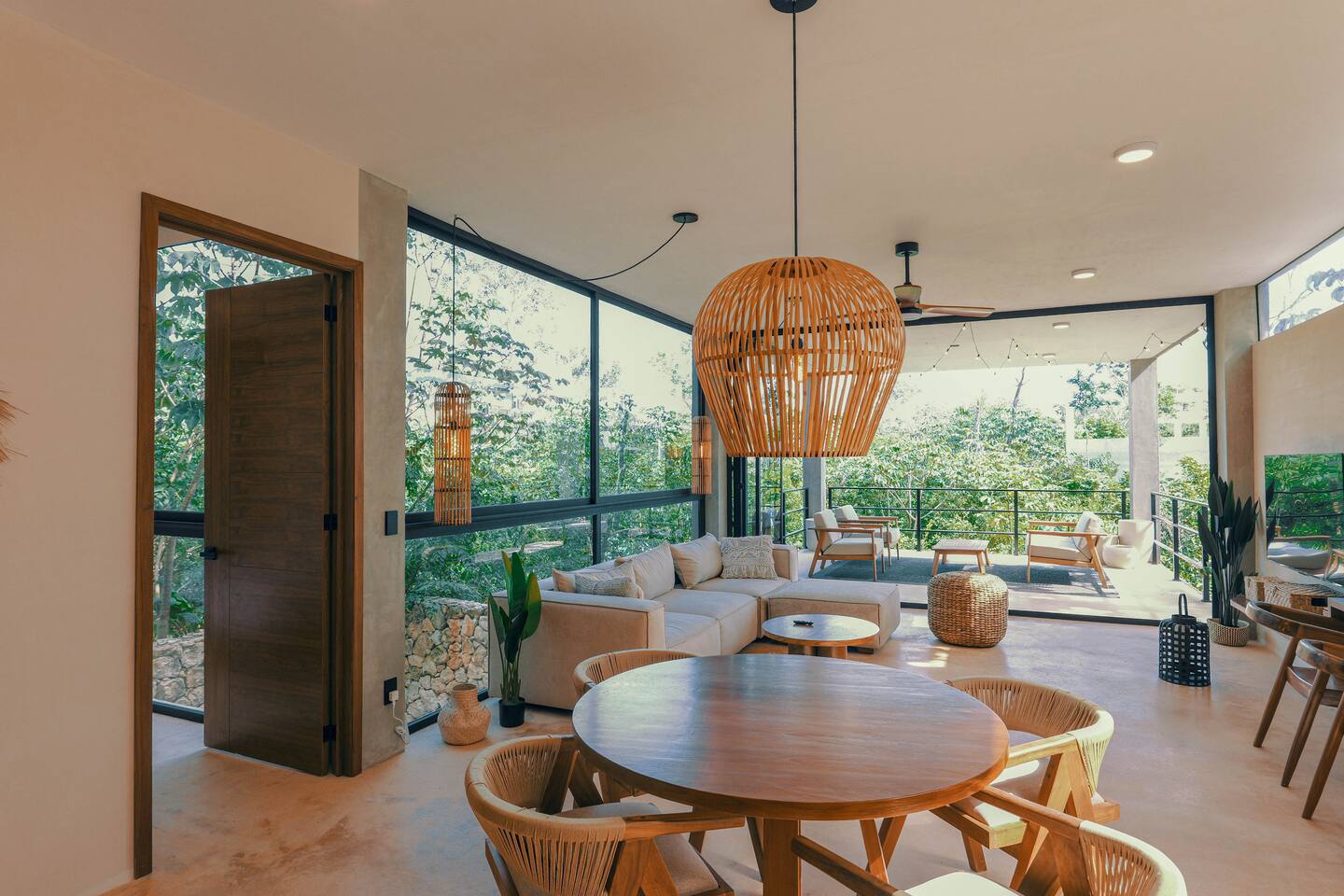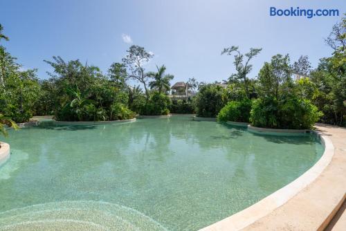 Nestled in a quiet neighborhood surrounded by lush jungle, this charming condo offers the perfect escape for those seeking tranquility and comfort. The rooms are equipped with air conditioning and high-speed Wi-Fi for your convenience. The bedroom features a plush mattress, premium pillows, and hotel-quality linens, lots of closet space, as well as carefully curated decor. The bedroom has a King bed and ensuite bathroom. Towels, including both bath and pool towels, are provided throughout your stay. The open-concept living and dining area is perfect for entertaining or relaxing with loved ones. The fully equipped kitchen, complete with a full oven allows for easy meal preparation, while the dining table is great for family meals. The spacious living room features a comfortable sofa and a flat-screen smart TV with streaming services like Netflix and YouTube for your entertainment. The large terrace opens up from the living room with floor to ceiling sliding glass doors to create a beautiful indoor/outdoor atmosphere to enjoy. The building also comes with amazing amenities within the complex including a jungle gym, a massive pool, co-working/multi-use space, and children's park, guest parking, and 24 hour security. This home combines modern comfort with a peaceful jungle retreat, offering the perfect blend of relaxation and luxury. Your reservation also includes a full service concierge that can assist you with airport transportation, private chef services, massage and wellness services, tours and excursions, ATVs and scooter rentals, beach club reservations, and much more. We look forward to hosting you and providing an unforgettable stay in Tulum!