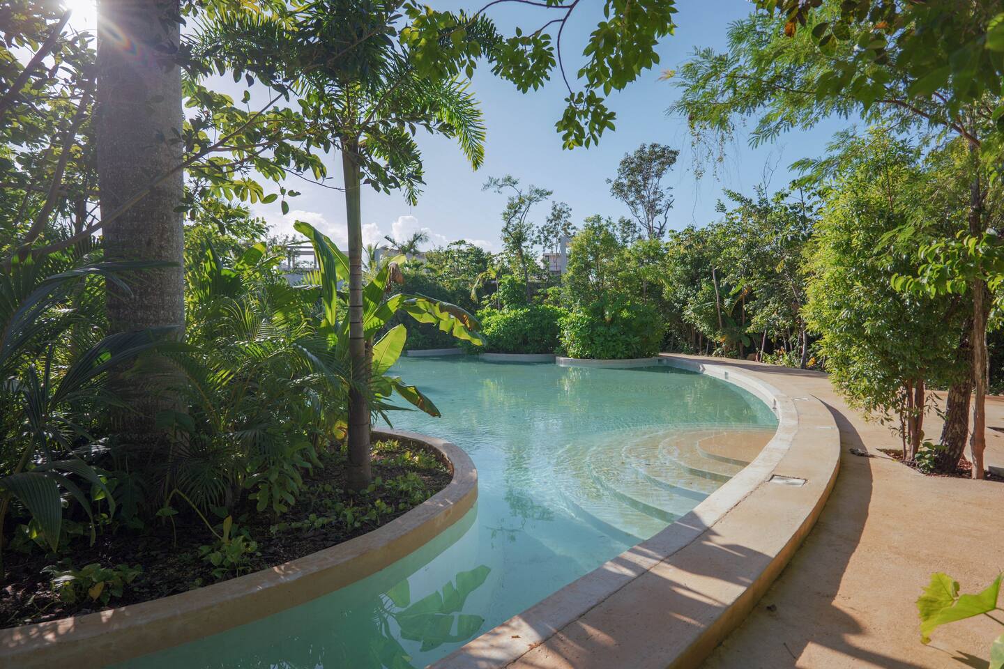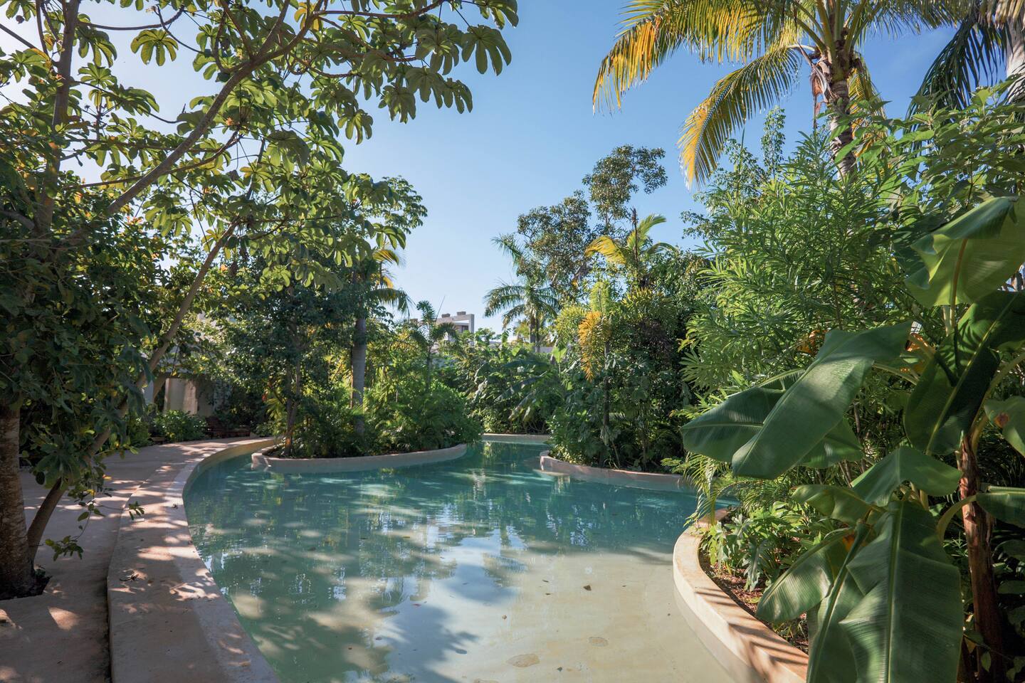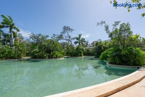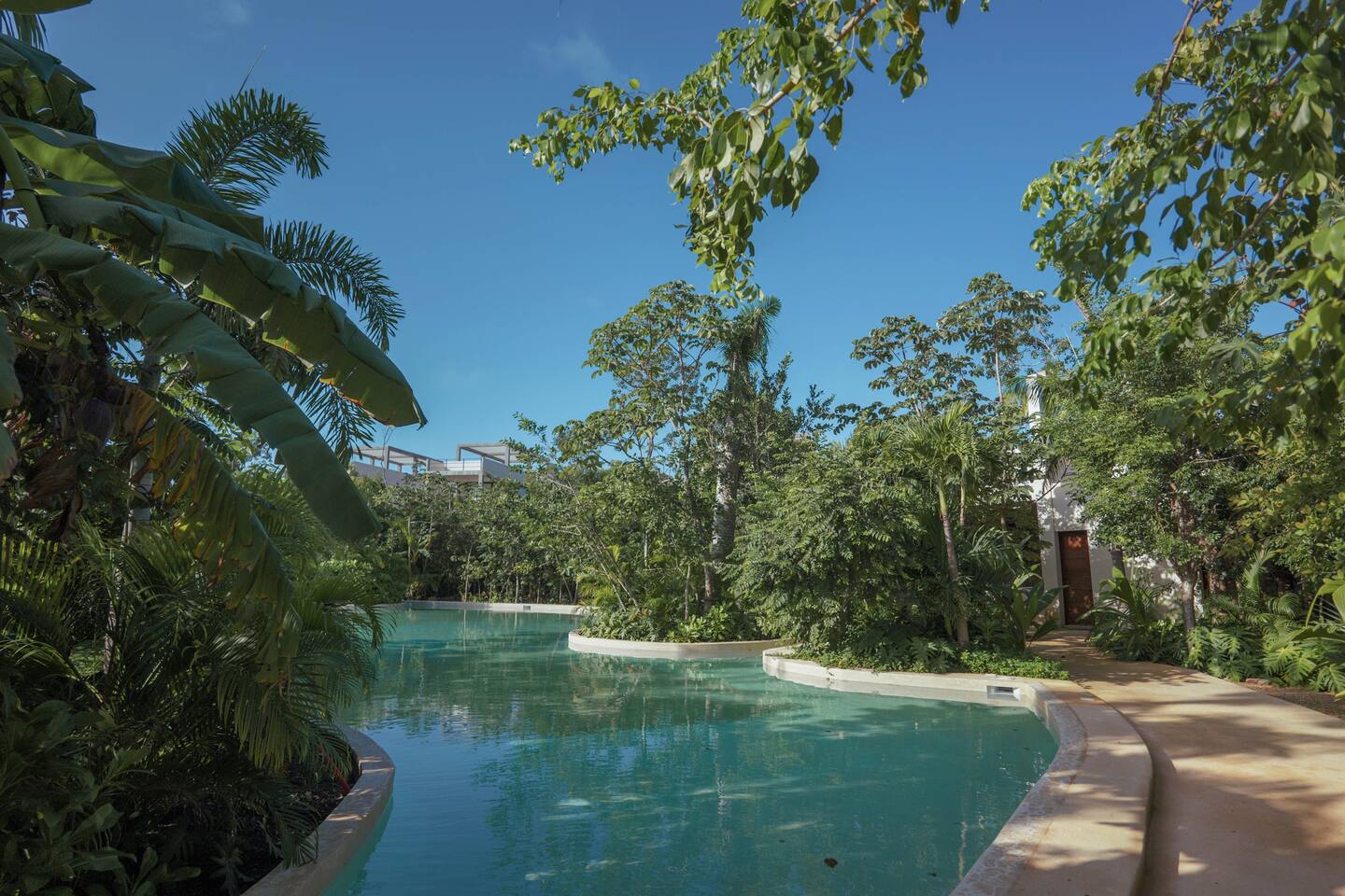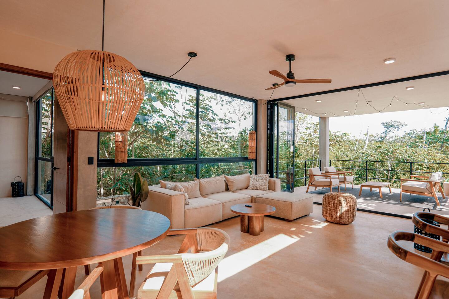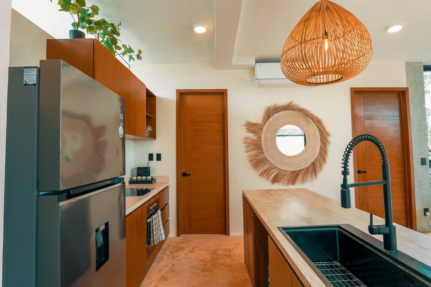 Nestled in a quiet neighborhood surrounded by lush jungle, this charming condo offers the perfect escape for those seeking tranquility and comfort. The rooms are equipped with air conditioning and high-speed Wi-Fi for your convenience. The bedroom features a plush mattress, premium pillows, and hotel-quality linens, lots of closet space, as well as carefully curated decor. The bedroom has a King bed and ensuite bathroom. Towels, including both bath and pool towels, are provided throughout your stay. The open-concept living and dining area is perfect for entertaining or relaxing with loved ones. The fully equipped kitchen, complete with a full oven allows for easy meal preparation, while the dining table is great for family meals. The spacious living room features a comfortable sofa and a flat-screen smart TV with streaming services like Netflix and YouTube for your entertainment. The large terrace opens up from the living room with floor to ceiling sliding glass doors to create a beautiful indoor/outdoor atmosphere to enjoy. The building also comes with amazing amenities within the complex including a jungle gym, a massive pool, co-working/multi-use space, and children's park, guest parking, and 24 hour security. This home combines modern comfort with a peaceful jungle retreat, offering the perfect blend of relaxation and luxury. Your reservation also includes a full service concierge that can assist you with airport transportation, private chef services, massage and wellness services, tours and excursions, ATVs and scooter rentals, beach club reservations, and much more. We look forward to hosting you and providing an unforgettable stay in Tulum!