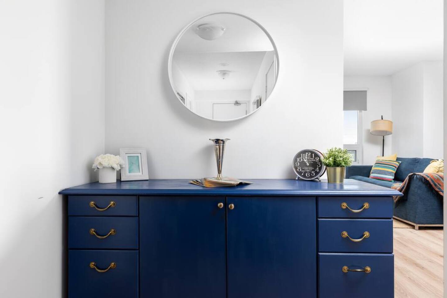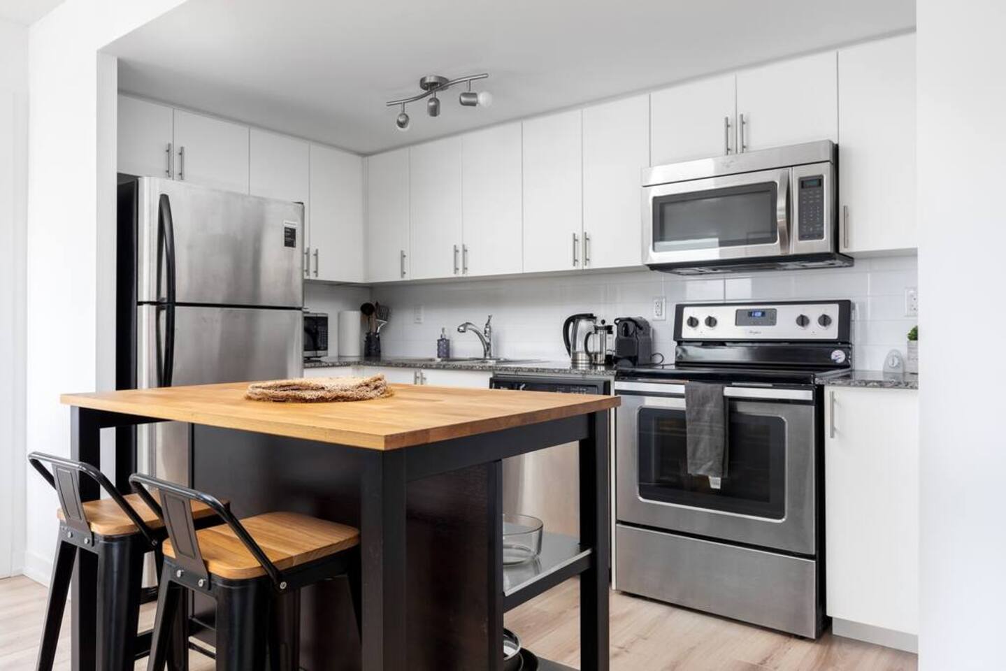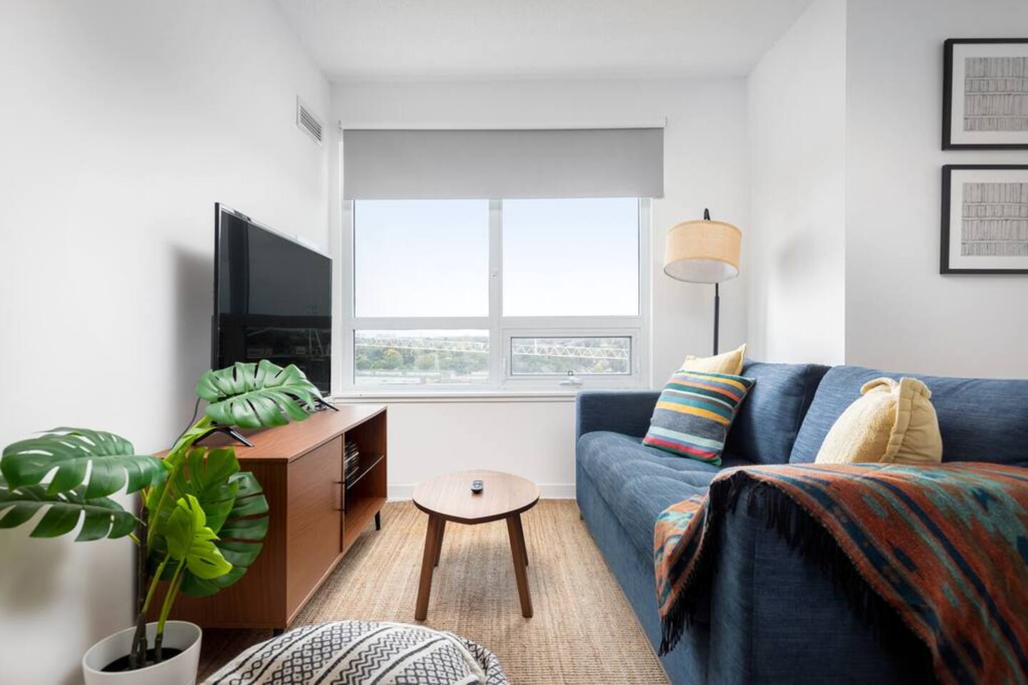 This fully furnished, 2 bedroom 2 bathroom suite is carefully curated with a particular attention to design. The suite is spacious and warm and has everything you need during your stay. Both bedrooms are furnished with plush foam Mattresses and high quality linens and towels. The master bedroom has a king size bed, an ensuite bathroom with a tub and shower, lots of closet space, extra pillows and blankets and a full length mirror. The second bedroom has a queen size bed, spacious closet and extra pillows and blankets. Both rooms have room darkening roller shades. The second bathroom has a massive walk-in shower. The living room has a comfortable couch, with a large flatscreen TV that comes with applications like Netflix and Youtube. There is also a Chromecast that allows you to stream your favourite content from your phone or laptop. The suite also comes equipped with unlimited high speed Bell Fibe internet. In the kitchen, we offer a Nespresso coffee maker and a French Press with coffee, tea, kettle, as well as basic condiments and spices. All top of the line appliances including a dishwasher, ensuite washer and dryer. The wrap around balcony shows an impressive view of the city, and since it is slightly west of downtown, the skyline view is stunning! Free designated parking for one vehicle is available is also available.