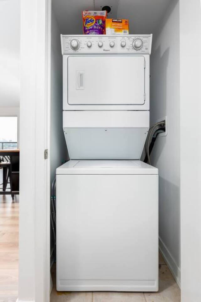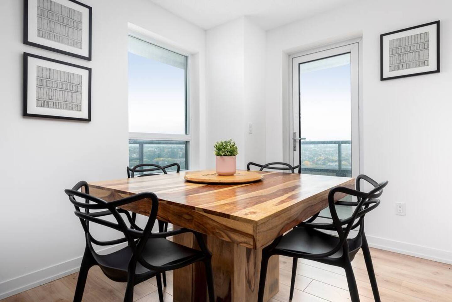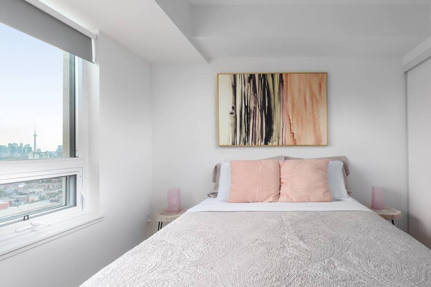 Experience a luxury stay in this gorgeous suite tucked away from the hustle and bustle of downtown. This suite offers a stunning view of the city skyline and the CN Tower with a wrap around balcony. Perfect for both business and leisure travellers, in a safe and well connected neighbourhood. Free parking and groceries located at the base of the condo make for super convenience. High end furniture and finishings throughout the suite makes this space both comfortable and luxurious.