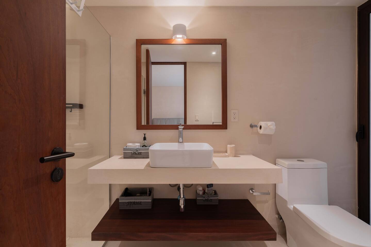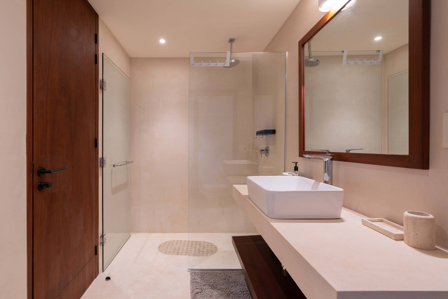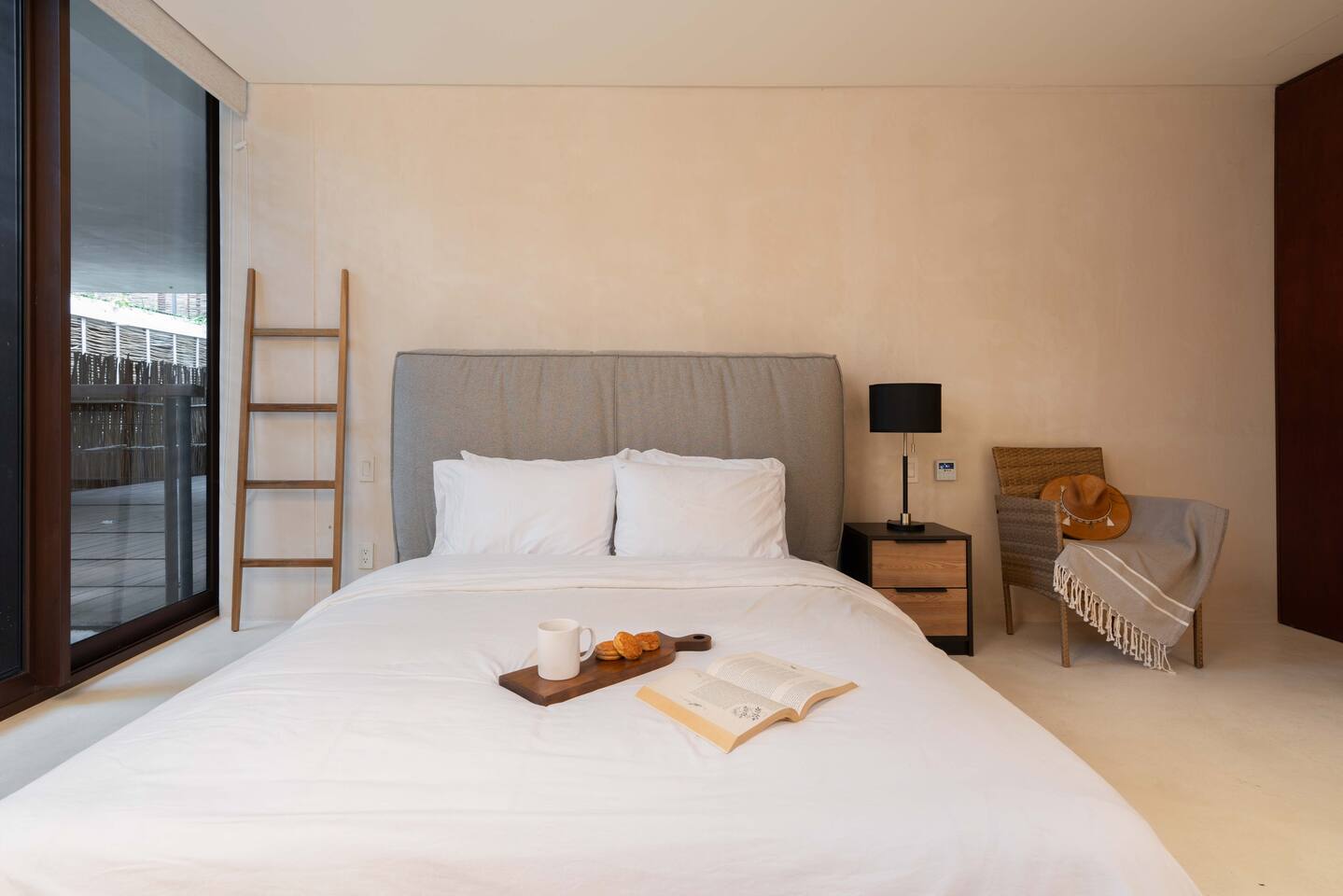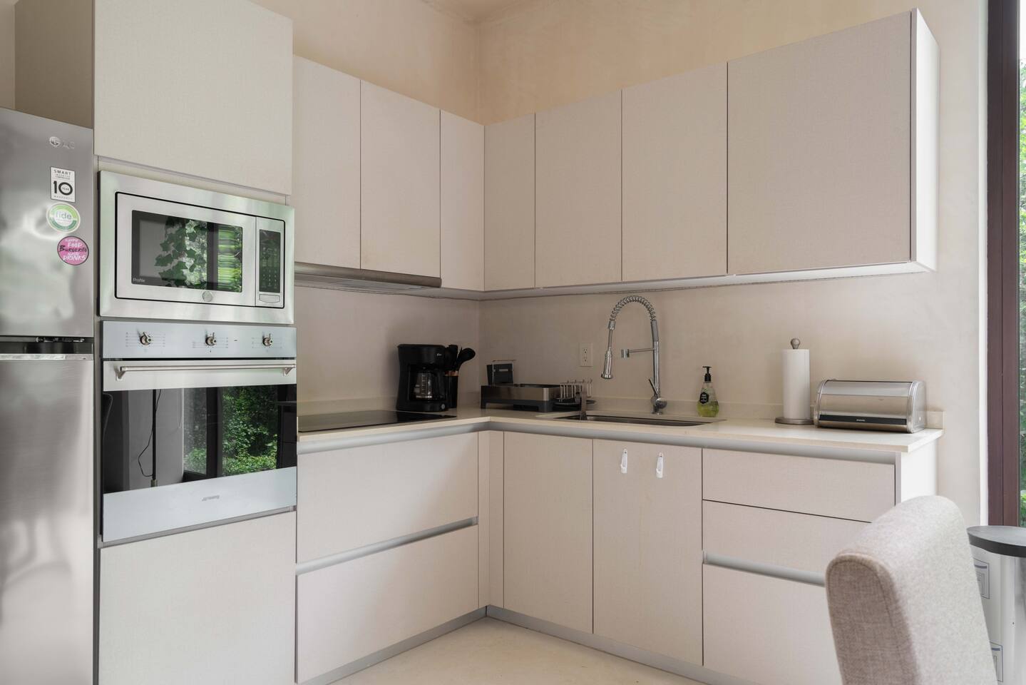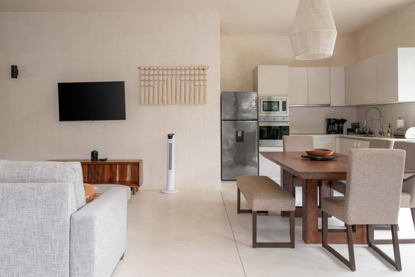 The condo is a very spacious two bedroom, with lots of natural light, high end finishes and warm natural style, high-speed wifi, and hot and cold water. The kitchen is fully equipped with high end appliances such as refrigerator, electric stovetop, high end toaster oven, blender, and coffee maker. Lots of cookware, plates and utensils. The living room has a super comfortable sectional sofa, with a SMART TV and applications like Netflix and Youtube. A great place to relax day or night. Open the sliding doors to the terrace for a great indoor/outdoor living space that overlooks beautiful trees and greenery. The master bedroom has a comfortable King bed with plush mattress, plenty of space and closet space and and ensuite bathroom. The junior bedroom has a Queen bed and a very comfortable cozy bunk bed with lots of closet space and an ensuite bathroom. Additionally there are baby amenities like a portable crib and a baby bath. The highlight of this condo is the massive private terrace, with outdoor dining, and lounge space. A great place to enjoy the jungle view with friends and family. The building has a rooftop pool and lounge, a gym, security and private parking. Your reservation also includes a full service concierge that can assist you with airport transportation, private chef services, massage and wellness services, tours and excursions, ATVs and scooter rentals, beach club reservations, and much more. We look forward to hosting you and providing an unforgettable stay in Tulum!