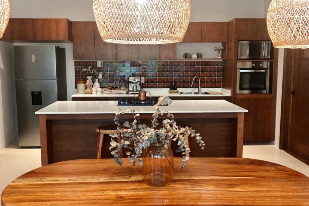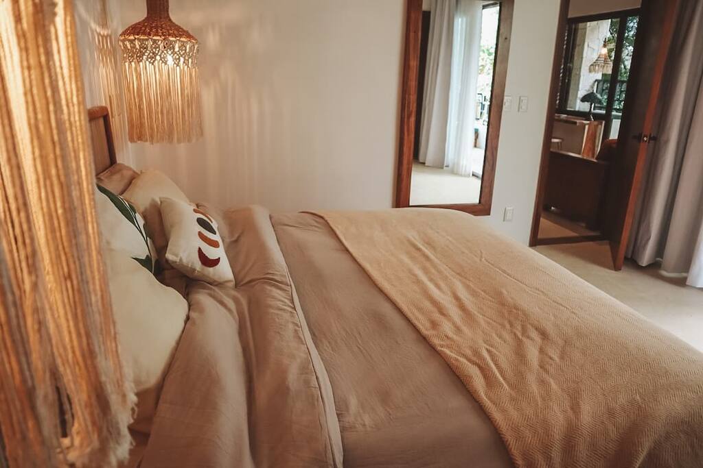 Nestled in the quiet Holistika neighborhood surrounded by lush jungle, this charming condo offers the perfect escape for those seeking tranquility and comfort. A beautifully decorated, boho style condo on the second level, indoor/outdoor spaces with a private plunge pool for your enjoyment. Every room is equipped with air conditioning and high-speed Starlink wifi for your convenience. Each of the two bedrooms features plush mattresses, premium pillows, and hotel-quality linens, lots of closet space, as well as carefully curated decor. Both bedrooms have King beds, ensuite bathrooms, and walk out to the rear terrace. Towels, including both bath and pool towels, are provided throughout your stay. The open-concept living and dining area is perfect for entertaining or relaxing with loved ones. The fully equipped kitchen, complete with a full gas range and oven, allows for easy meal preparation and the large dining table is perfect for sharing meals as a group. The building also comes with amazing amenities within the complex including a quiet pool, gym, co-working space, guest parking, and 24 hour security. This home combines modern comfort with a peaceful jungle retreat, offering the perfect blend of relaxation and luxury. Your reservation also includes a full service concierge that can assist you with airport transportation, private chef services, massage and wellness services, tours and excursions, ATVs and scooter rentals, beach club reservations, and much more. We look forward to hosting you and providing an unforgettable stay in Tulum!