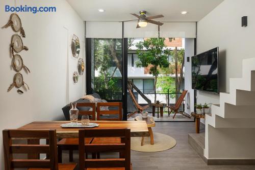 The condo is a very spacious two bedroom, with lots of natural light, high end finishes and warm natural style, high-speed wifi, and hot and cold water. The kitchen is fully equipped with high end appliances such as refrigerator, electric stovetop, high end toaster oven, blender, and coffee maker. Lots of cookware, plates and utensils. The living room has a comfortable sofa, with a SMART TV and applications like Netflix and Youtube. A great place to relax day or night. Open the sliding doors to the balcony that overlooks the cafes and restaurants below. Both bedrooms have comfortable King beds with plush mattress, plenty of space and closet space and ensuite bathrooms. Black out curtains for a restful night sleep. The highlight of this condo is the private rooftop terrace with private pool. A great place to enjoy with friends and family. Your reservation also includes a full service concierge that can assist you with airport transportation, private chef services, massage and wellness services, tours and excursions, ATVs and scooter rentals, beach club reservations, and much more. We look forward to hosting you and providing an unforgettable stay in Tulum!