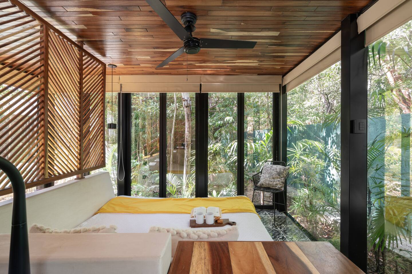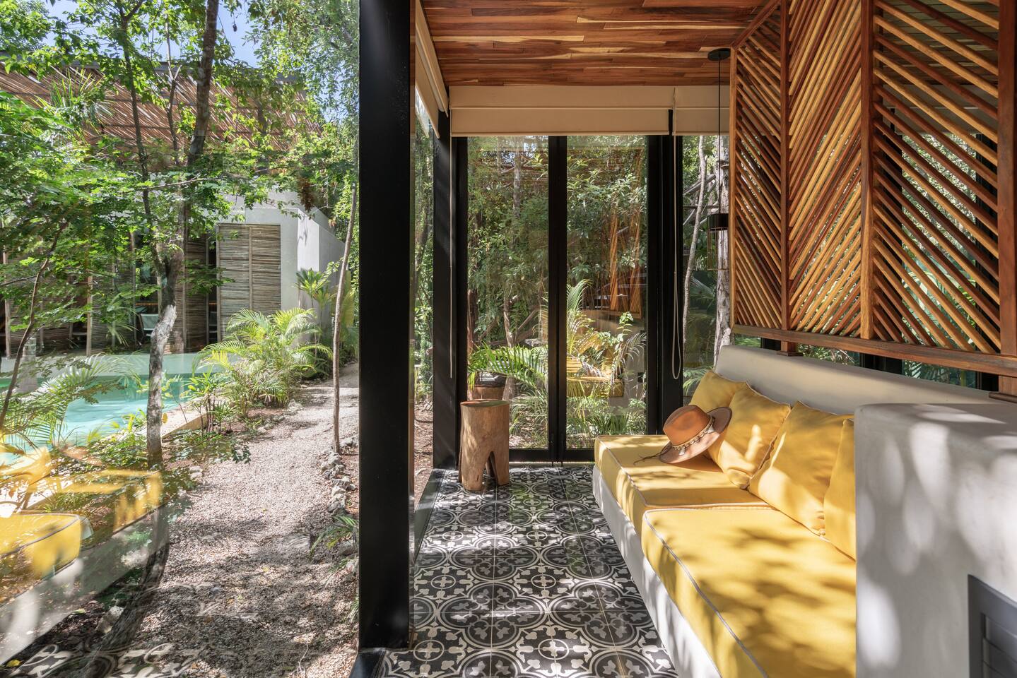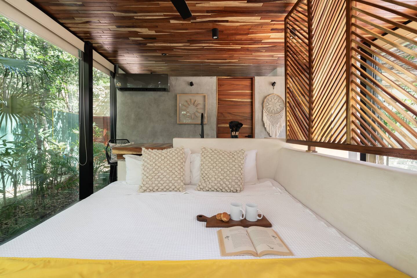 Welcome to our Mirrored Glass Studio in Tulum The perfect one-of-a-kind romantic getaway. A jungle escape where design and nature merge seamlessly. This freestanding studio is nestled in Tulum's jungle neighborhood, fully surrounded by tropical greenery. From the outside, the pod reflects the jungle, blending into its surroundings. Step inside, and you’ll find a completely transparent interior that offers views of nature, while maintaining your privacy thanks to mirrored exterior glass.