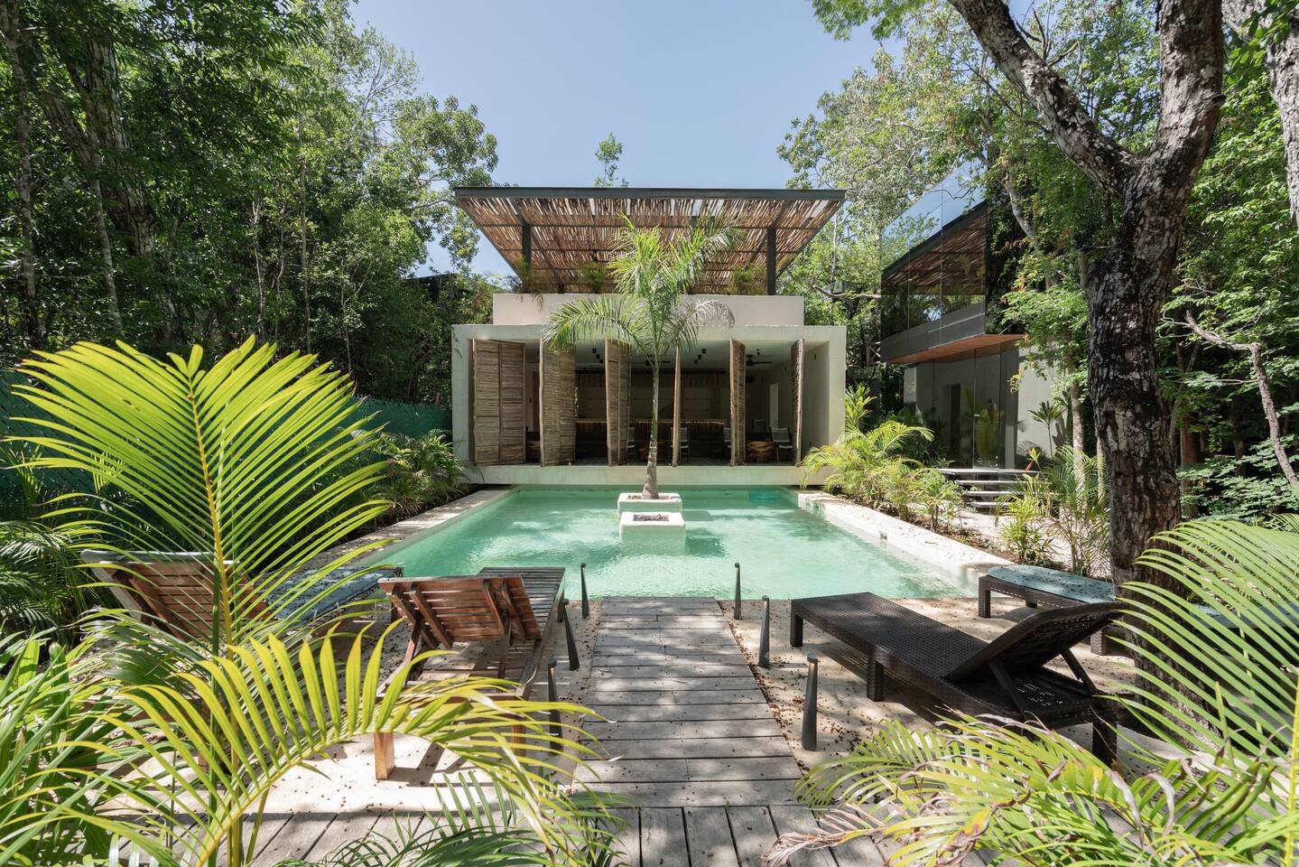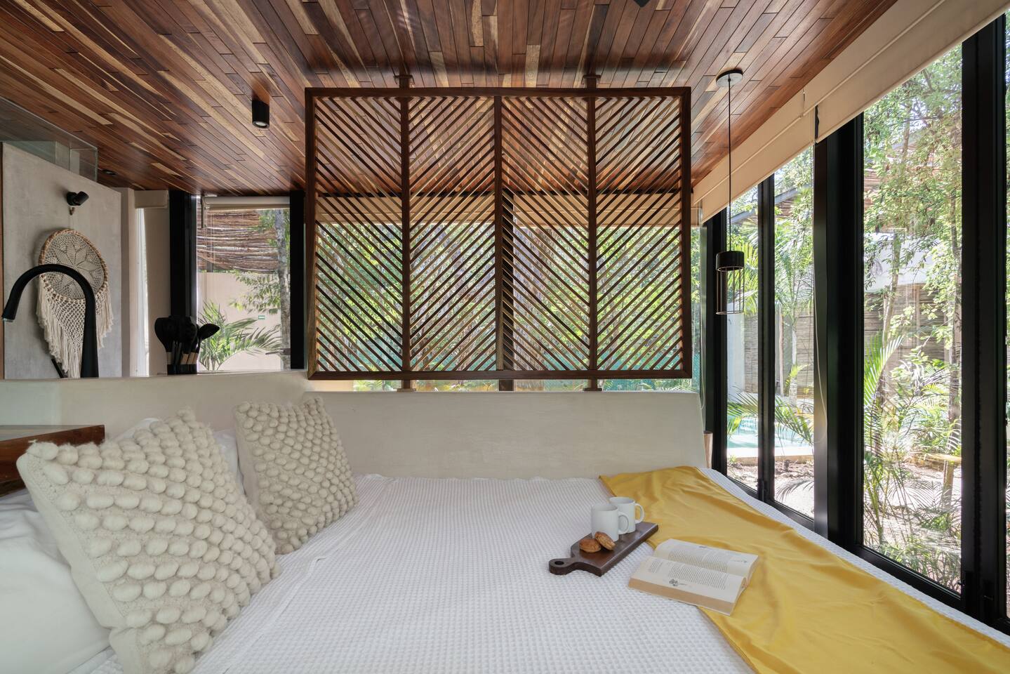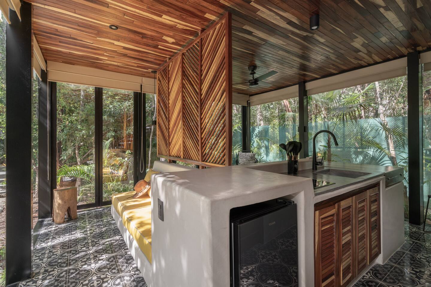 Welcome to our Mirrored Glass Studio in Tulum The perfect one-of-a-kind romantic getaway. A jungle escape where design and nature merge seamlessly. This freestanding studio is nestled in Tulum's jungle neighborhood, fully surrounded by tropical greenery. From the outside, the pod reflects the jungle, blending into its surroundings. Step inside, and you’ll find a completely transparent interior that offers views of nature, while maintaining your privacy thanks to mirrored exterior glass.