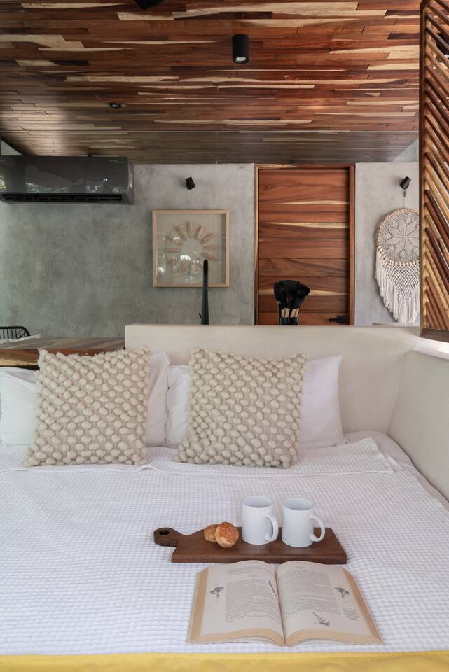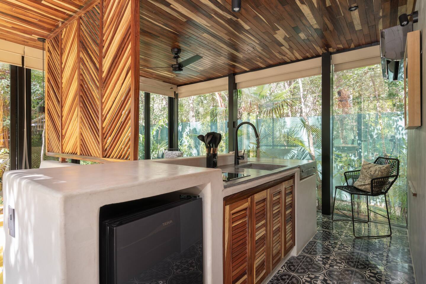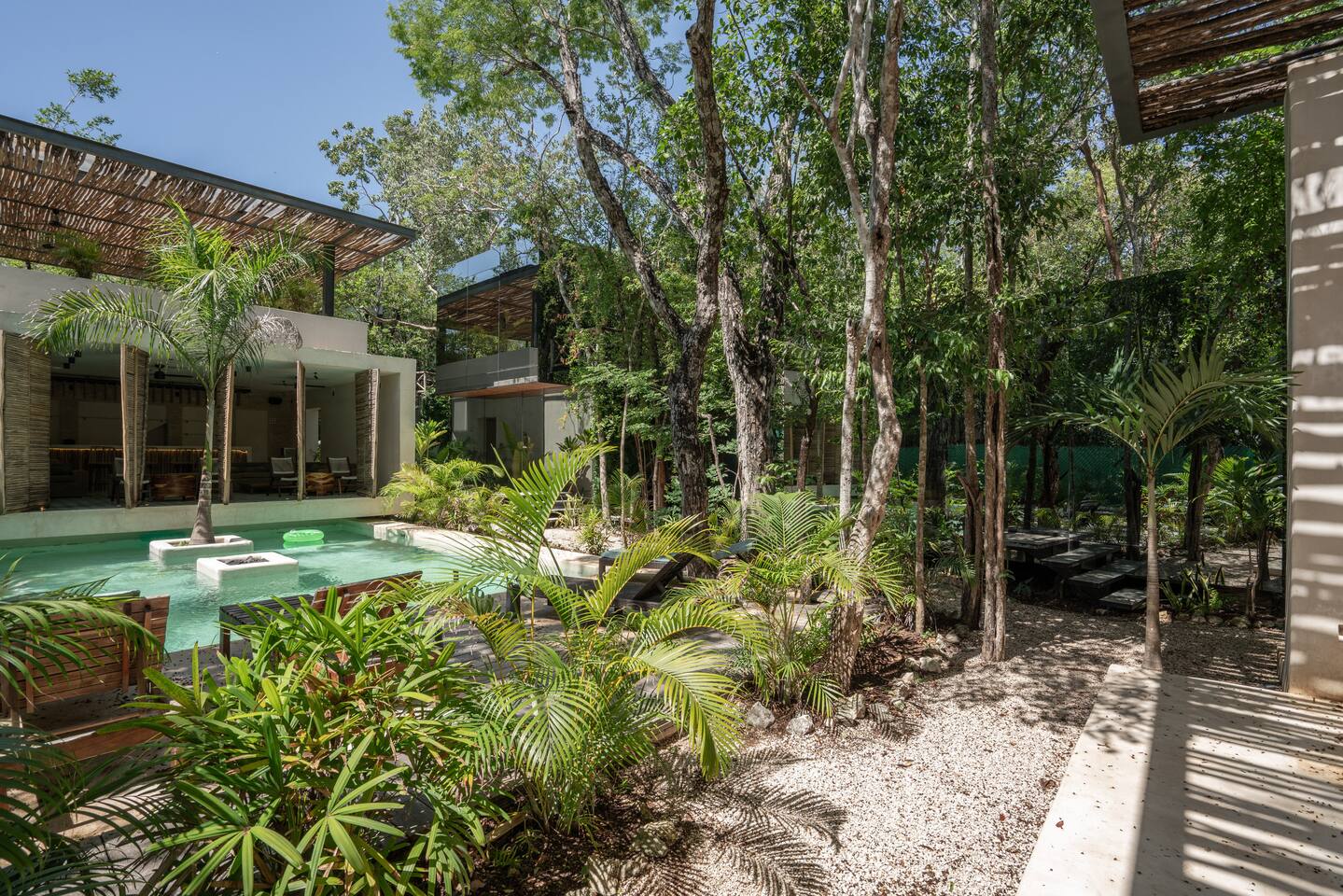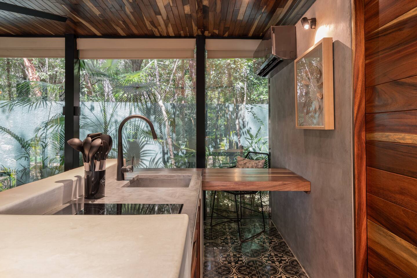 Inside, the studio is thoughtfully designed for comfort and tranquility. Enjoy a king-size bed, full private bathroom, a cozy sofa bench, and a compact kitchenette perfect for preparing light meals. Warm, ambient lighting creates a calming mood throughout the space, day or night. You’ll also have access to shared amenities in the secure, gated complex—including a large, serene swimming pool, an open-air lounge and dining area, co-working space, yoga terrace, and laundry facilities. Whether you’re here to unwind, work remotely, or explore Tulum’s vibrant culture, everything you need is within reach. The Holistika area is known for its wellness vibe, peaceful jungle setting, and easy access to cafes, art, and yoga—all just a short ride from Tulum’s beach and pueblo. It's a truly immersive, yet peaceful, way to connect with nature. ✨ What makes this place special: • Fully mirrored exterior and transparent glass walls inside-out • Private, freestanding pod with King bed • Immersed in jungle, located in peaceful and creative Holistika neighborhood • Access to pool, co-working lounge, yoga terrace, and more • Safe and secure with 24/7 gated security This is not just a stay—it’s an experience in stillness, reflection, and natural beauty.