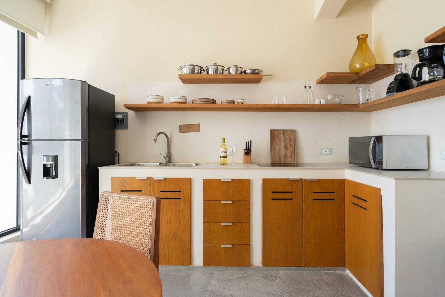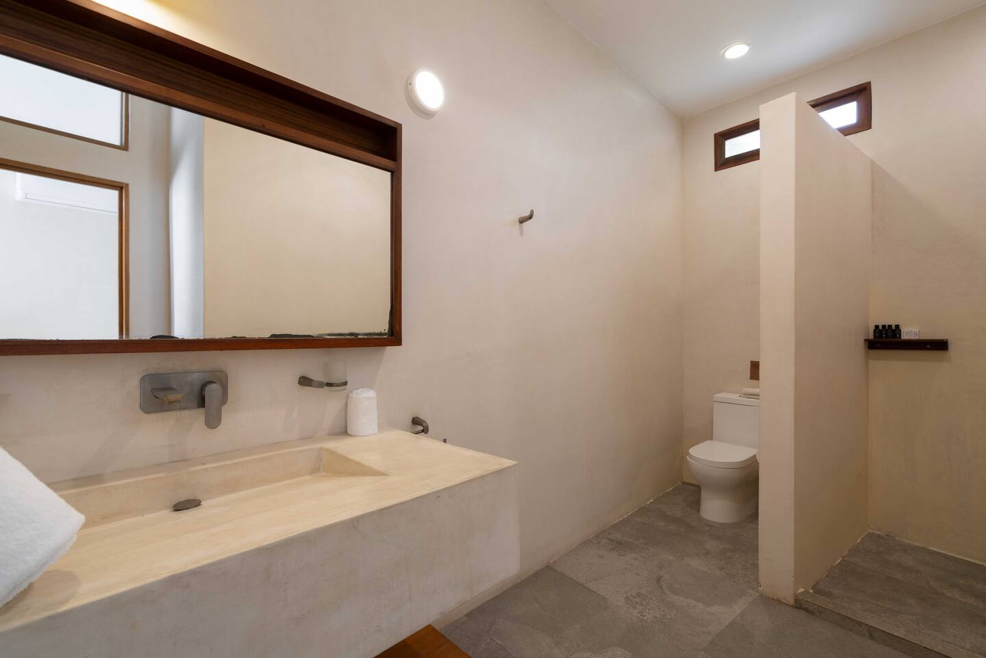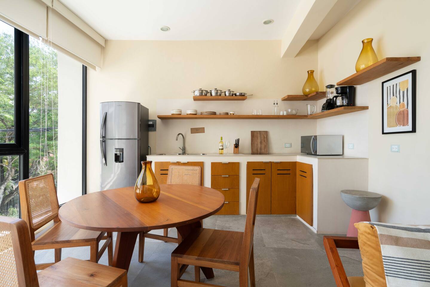 Experience a sense of calm when you arrive. The main level pool and lounge deck are absolutely stunning, especially at night with the warm lighting. The suite is an open-concept contemporary design. The kitchen is equipped with high end appliances such as refrigerator, electric stovetop, blender, and coffee machine. Cookware, plates and utensils, and a kitchen table with seating. The living space has a comfortable sectional couch, a SMART TV and applications like Netflix and Youtube. A great place to relax day or night. High end King mattress with hotel quality linens and pillows and black out curtains. Walk down to the gorgeous pool, surrounded by banana trees and tropical plants, enjoy the yoga terrace any time of day, the gym looking out to the waterfall cascading into the pool, enjoy the on-site restaurant for breakfast, lunch or dinner, morning coffee or evening cocktails, or enjoy room service directly to your suite. Your reservation also includes a full service concierge that can assist you with airport transportation, private chef services, massage and wellness services, tours and excursions, ATVs and scooter rentals, beach club reservations, and much more.