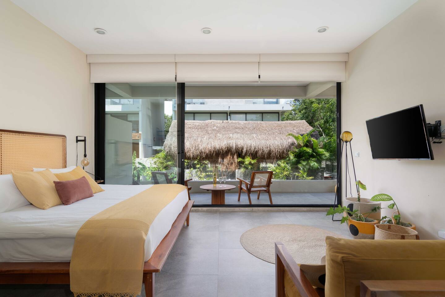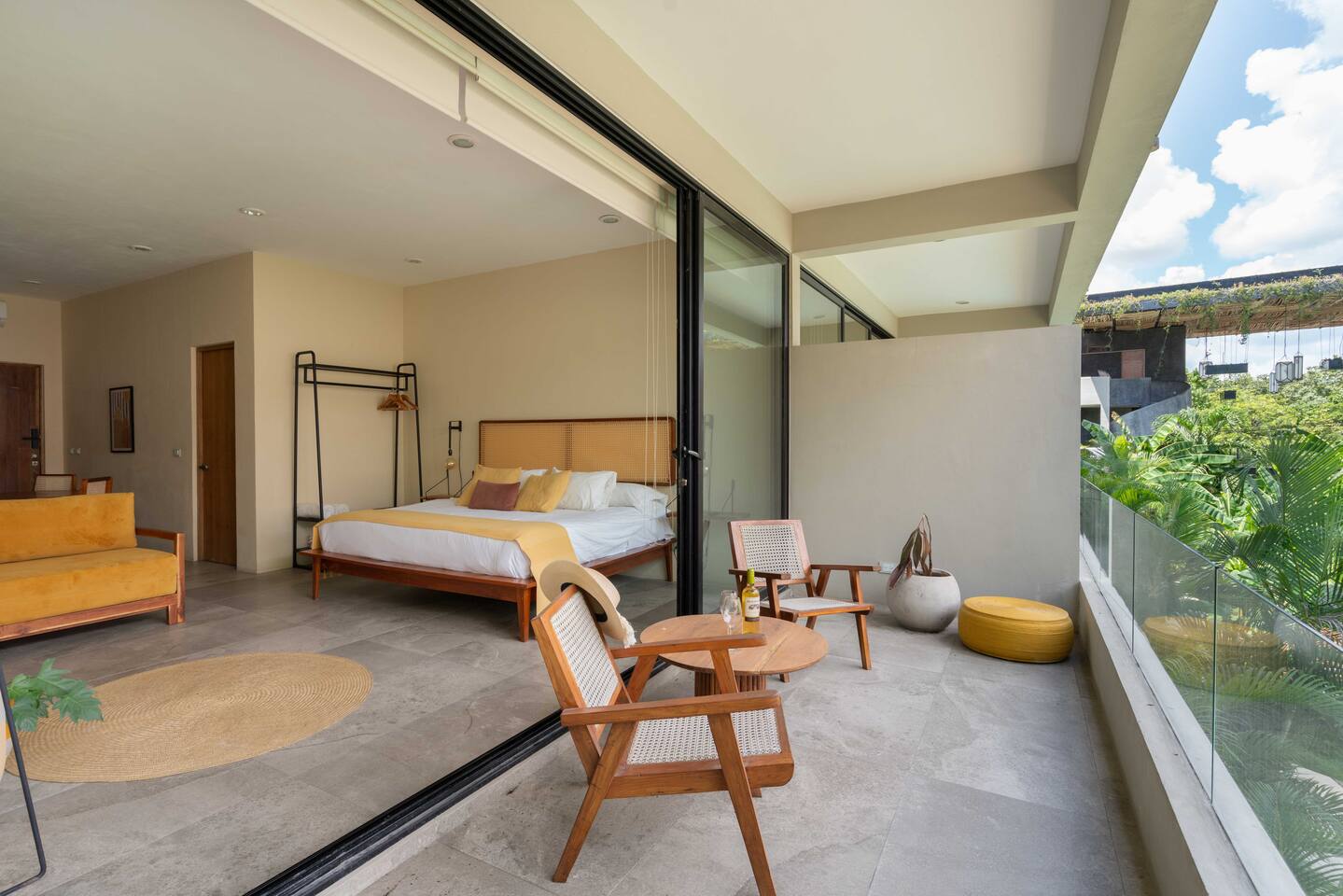 Welcome to Xperience, An oasis in the heart of Downtown Tulum. A secure, private residence walking distance from Tulum's downtown strip with restaurants, bars, shopping, and more! Boasting amenities like a gorgeous pool, gym, yoga terrace, and on-site restaurant with room service. This suite includes: • King bed with high quality linens • High Speed Wifi • Air Conditioning • Hot and cold water • Private terrace We are a CONSTRUCTION-FREE zone with paved roads.