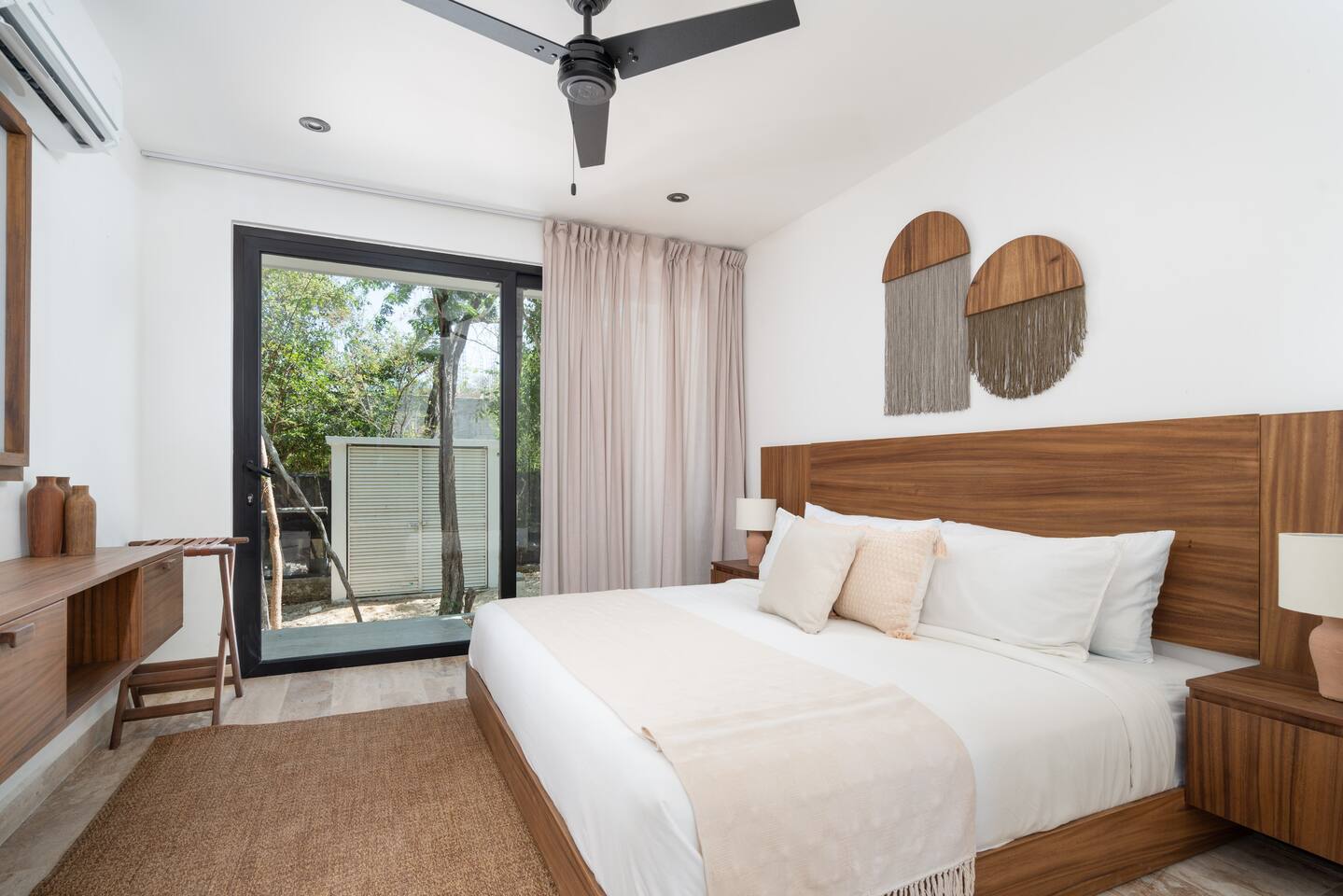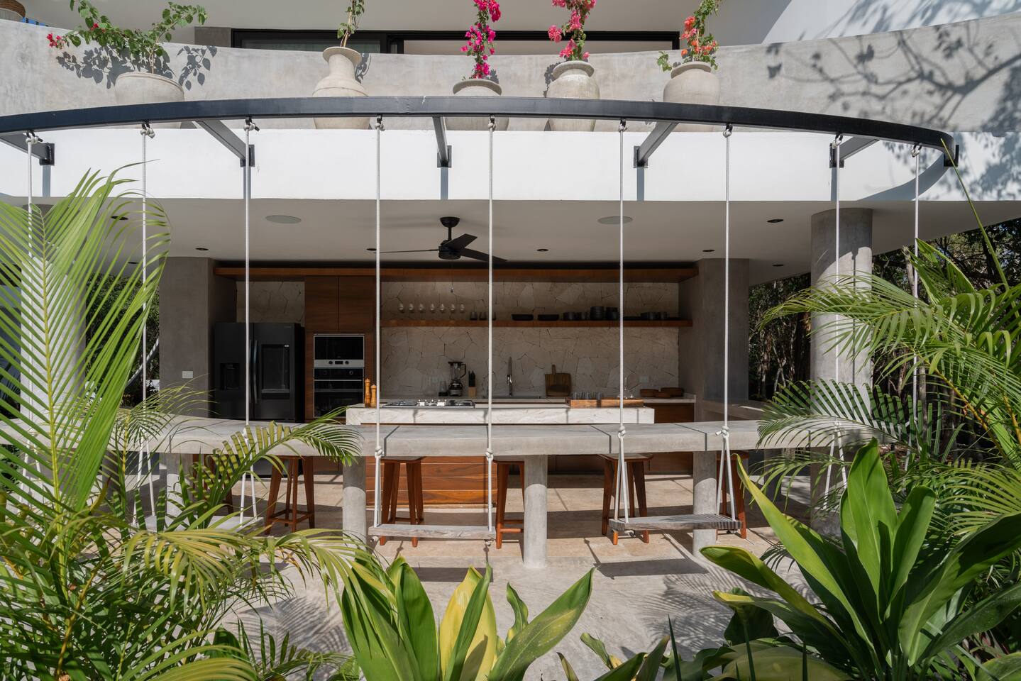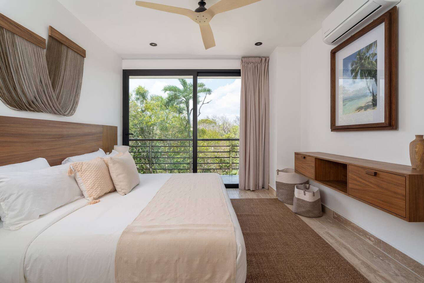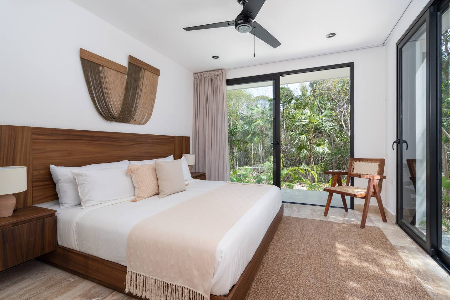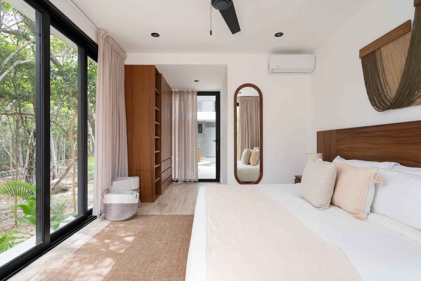 Welcome to your dream escape in the heart of the Tulum jungle - a luxurious 9-bedroom villa designed for unforgettable experiences, ideal for large groups, retreats, family gatherings, or private events. This secluded three-level villa seamlessly blends indoor-outdoor living with modern comforts and natural beauty, all tucked within a secure gated community with 24-hour security and private parking. **Villa Layout & Common Spaces:** A stunning open-concept home where nature and luxury coexist in perfect harmony. The villa features soaring ceilings in the enclosed main living room, outfitted with plush lounge seating, a large flat screen TV with streaming services, and built-in surround sound speakers throughout the house. The living space includes a dining area perfect for shared meals and celebrations. A wall of glass doors connects the indoors to the expansive outdoor area, where the impressive swimming pool stretches the entire length of the home. Surrounding the pool are multiple sun loungers, tropical greenery, and shaded lounge areas—ideal for soaking up the jungle vibes by day and stargazing by night. Three spacious terraces throughout the house offer panoramic views over the lush Tulum jungle, with one perfectly positioned for breathtaking sunsets. **Wellness & Leisure Amenities:** For those seeking balance and relaxation, the villa features a tranquil spa room with a large spa jacuzzi and a small, fully-equipped fitness space/yoga terrace. Two additional spa jacuzzis are placed throughout the property, offering relaxing spots for unwinding after a day of adventure. The natural beauty of the surroundings includes an exclusive, private cenote accessible only to the homes within the gated community—an unforgettable place for a morning swim or quiet meditation. **Bedrooms & Comfort:** Each of the nine bedrooms is thoughtfully designed for rest and privacy, with hotel-quality linens, high-end mattresses, and plenty of natural light. Every room includes its own closet, air conditioning, and tranquil jungle views. The sleeping arrangements offer flexibility for any group, with king beds in all rooms to accommodate up to 18 guests comfortably. Several bedrooms have private balconies or access to one of the villa’s stunning terraces. **Additional Features:** * Fully equipped modern kitchen * Indoor/outdoor speaker system * Hotel-style high-quality towels and linens * Private parking on-site * Housekeeping, concierge, and trip planning and design * Wi-Fi throughout the property Whether you’re planning a yoga retreat, a milestone birthday, or simply want to relax in secluded luxury, this villa is a one-of-a-kind experience in Tulum. Surrounded by tropical birds and untouched jungle, yet just a short drive to Tulum’s beach and town, it offers the best of both worlds—privacy and convenience, nature and indulgence. This is more than just a stay—this is your private jungle sanctuary.