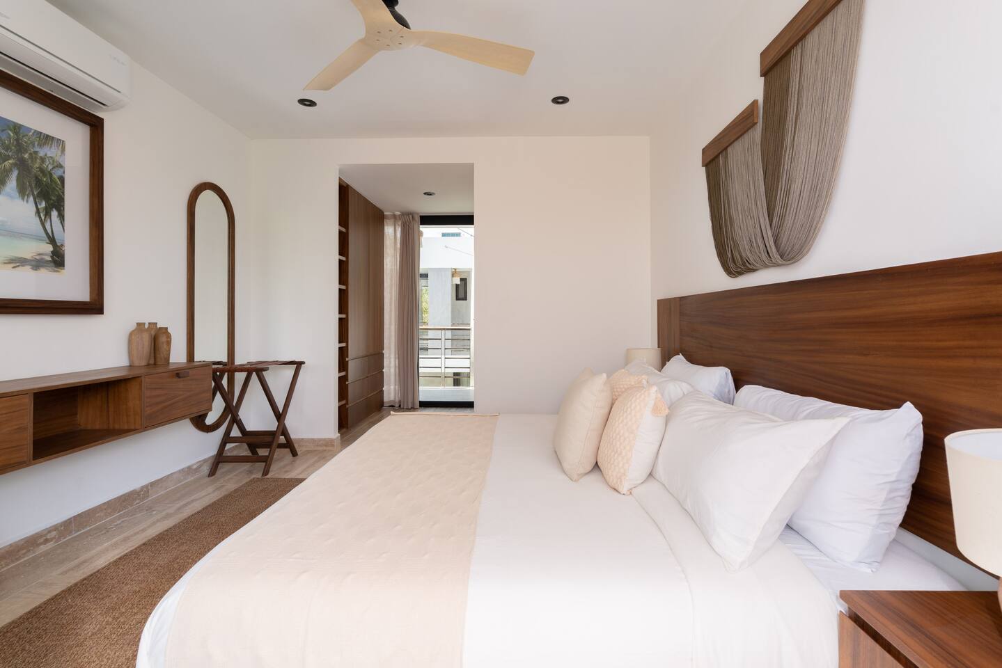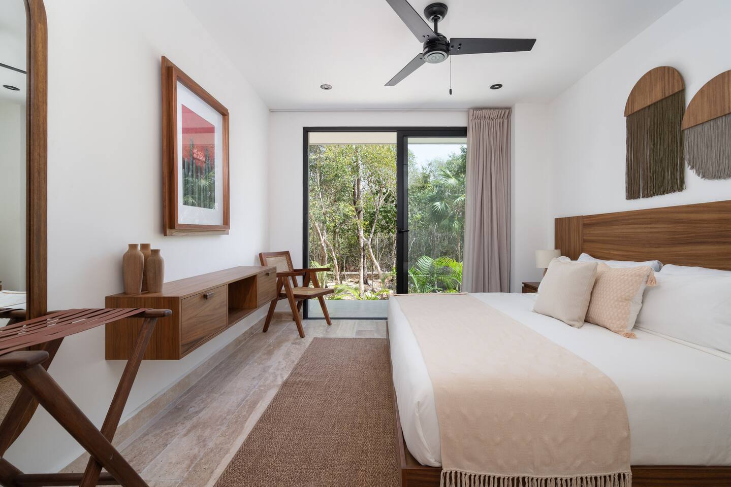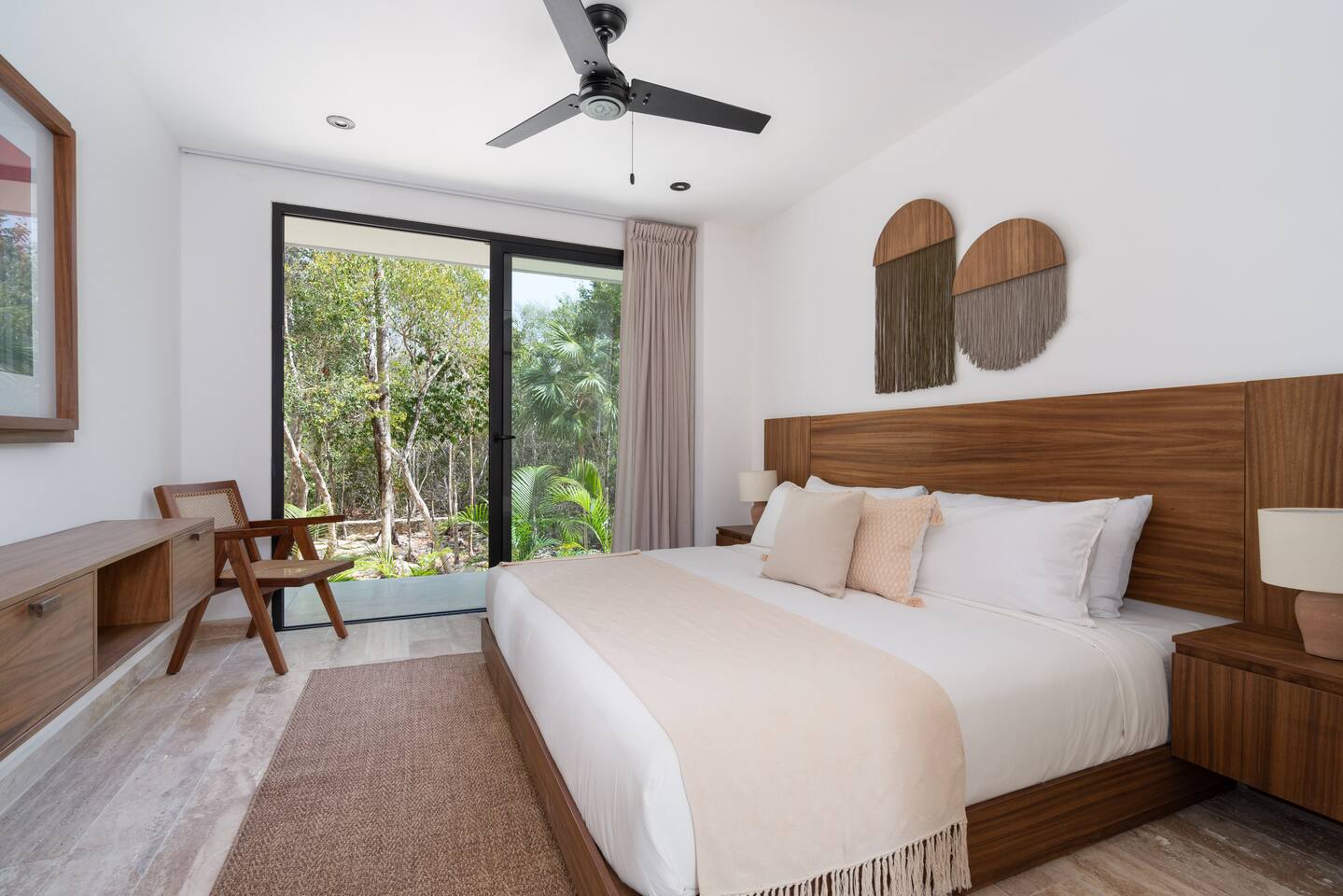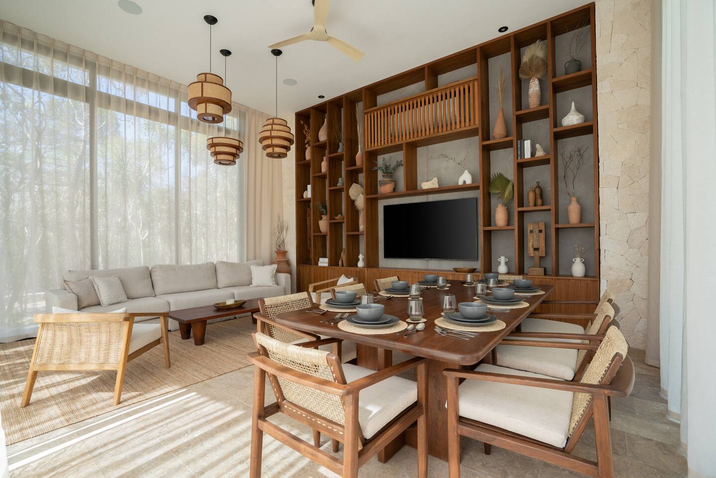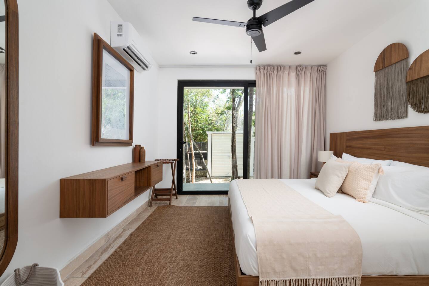 Welcome to your dream escape in the heart of the Tulum jungle - a luxurious 9-bedroom villa designed for unforgettable experiences, ideal for large groups, retreats, family gatherings, or private events. This secluded three-level villa seamlessly blends indoor-outdoor living with modern comforts and natural beauty, all tucked within a secure gated community with 24-hour security and private parking. **Villa Layout & Common Spaces:** A stunning open-concept home where nature and luxury coexist in perfect harmony. The villa features soaring ceilings in the enclosed main living room, outfitted with plush lounge seating, a large flat screen TV with streaming services, and built-in surround sound speakers throughout the house. The living space includes a dining area perfect for shared meals and celebrations. A wall of glass doors connects the indoors to the expansive outdoor area, where the impressive swimming pool stretches the entire length of the home. Surrounding the pool are multiple sun loungers, tropical greenery, and shaded lounge areas—ideal for soaking up the jungle vibes by day and stargazing by night. Three spacious terraces throughout the house offer panoramic views over the lush Tulum jungle, with one perfectly positioned for breathtaking sunsets. **Wellness & Leisure Amenities:** For those seeking balance and relaxation, the villa features a tranquil spa room with a large spa jacuzzi and a small, fully-equipped fitness space/yoga terrace. Two additional spa jacuzzis are placed throughout the property, offering relaxing spots for unwinding after a day of adventure. The natural beauty of the surroundings includes an exclusive, private cenote accessible only to the homes within the gated community—an unforgettable place for a morning swim or quiet meditation. **Bedrooms & Comfort:** Each of the nine bedrooms is thoughtfully designed for rest and privacy, with hotel-quality linens, high-end mattresses, and plenty of natural light. Every room includes its own closet, air conditioning, and tranquil jungle views. The sleeping arrangements offer flexibility for any group, with king beds in all rooms to accommodate up to 18 guests comfortably. Several bedrooms have private balconies or access to one of the villa’s stunning terraces. **Additional Features:** * Fully equipped modern kitchen * Indoor/outdoor speaker system * Hotel-style high-quality towels and linens * Private parking on-site * Housekeeping, concierge, and trip planning and design * Wi-Fi throughout the property Whether you’re planning a yoga retreat, a milestone birthday, or simply want to relax in secluded luxury, this villa is a one-of-a-kind experience in Tulum. Surrounded by tropical birds and untouched jungle, yet just a short drive to Tulum’s beach and town, it offers the best of both worlds—privacy and convenience, nature and indulgence. This is more than just a stay—this is your private jungle sanctuary.