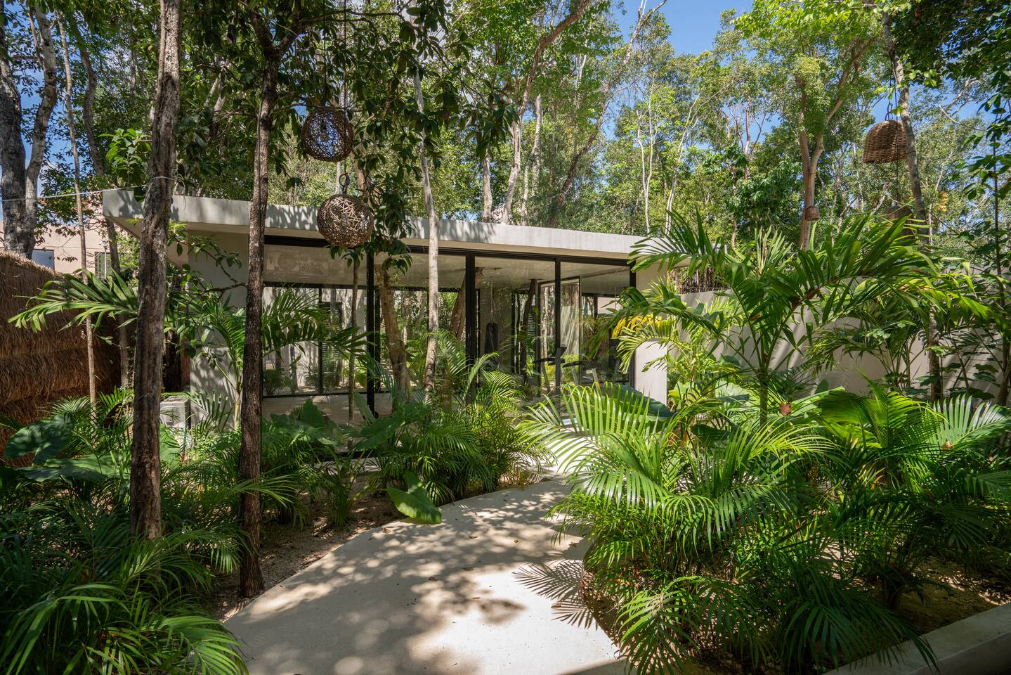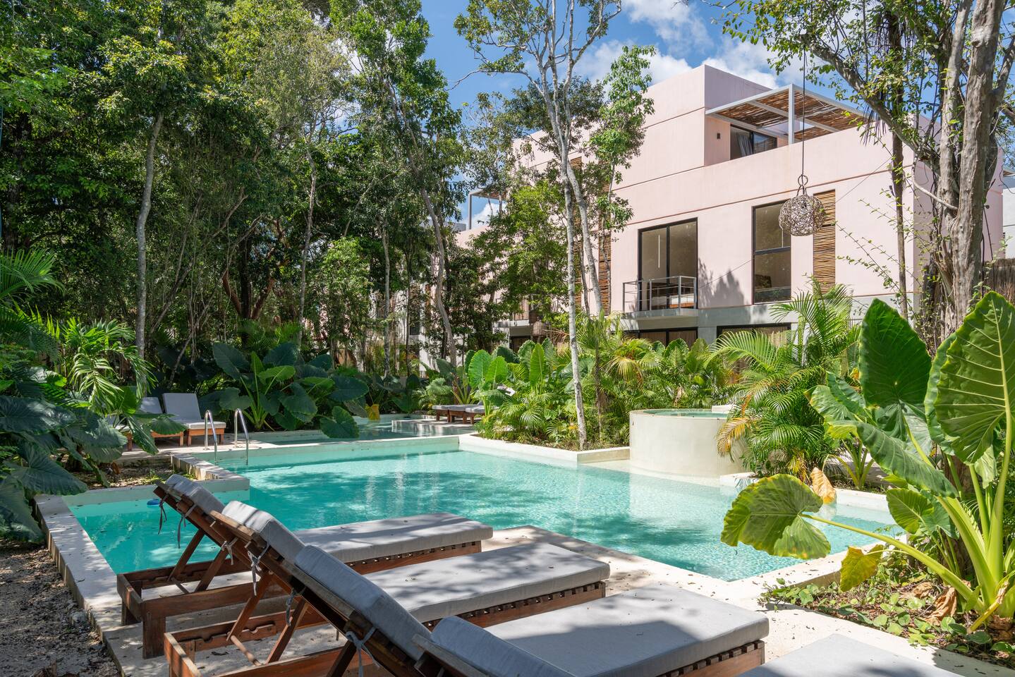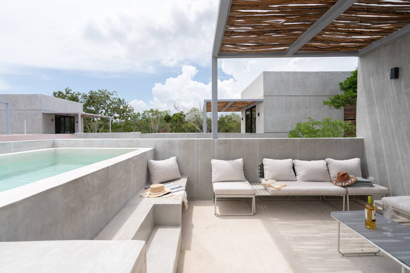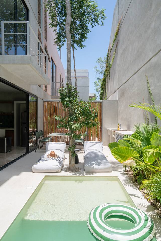 This stunning villa submersed in Tulum's jungle is your oasis in the Caribbean. A private luxury home within a secure complex surrounded by palm trees. This villa has 6 bedrooms each with an ensuite bathroom, four private pools, two on ground level and 2 rooftop. 24-hour security and reception. 15 min car ride to the beach. Parking and High-speed WiFi are included. Additional services available: - Airport transportation - Private chef - Housekeeping - Concierge service