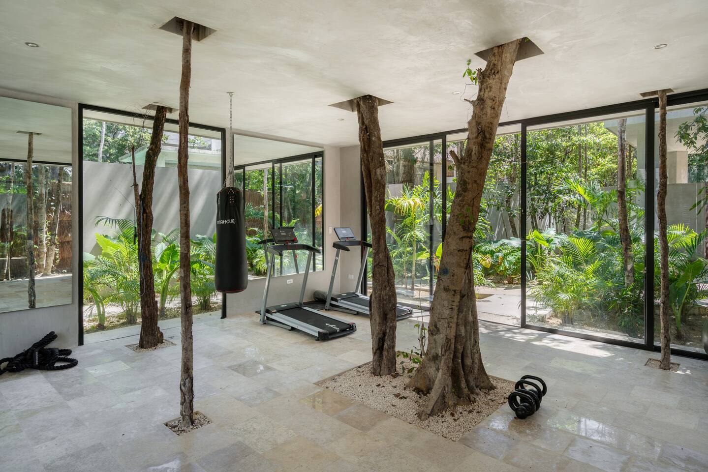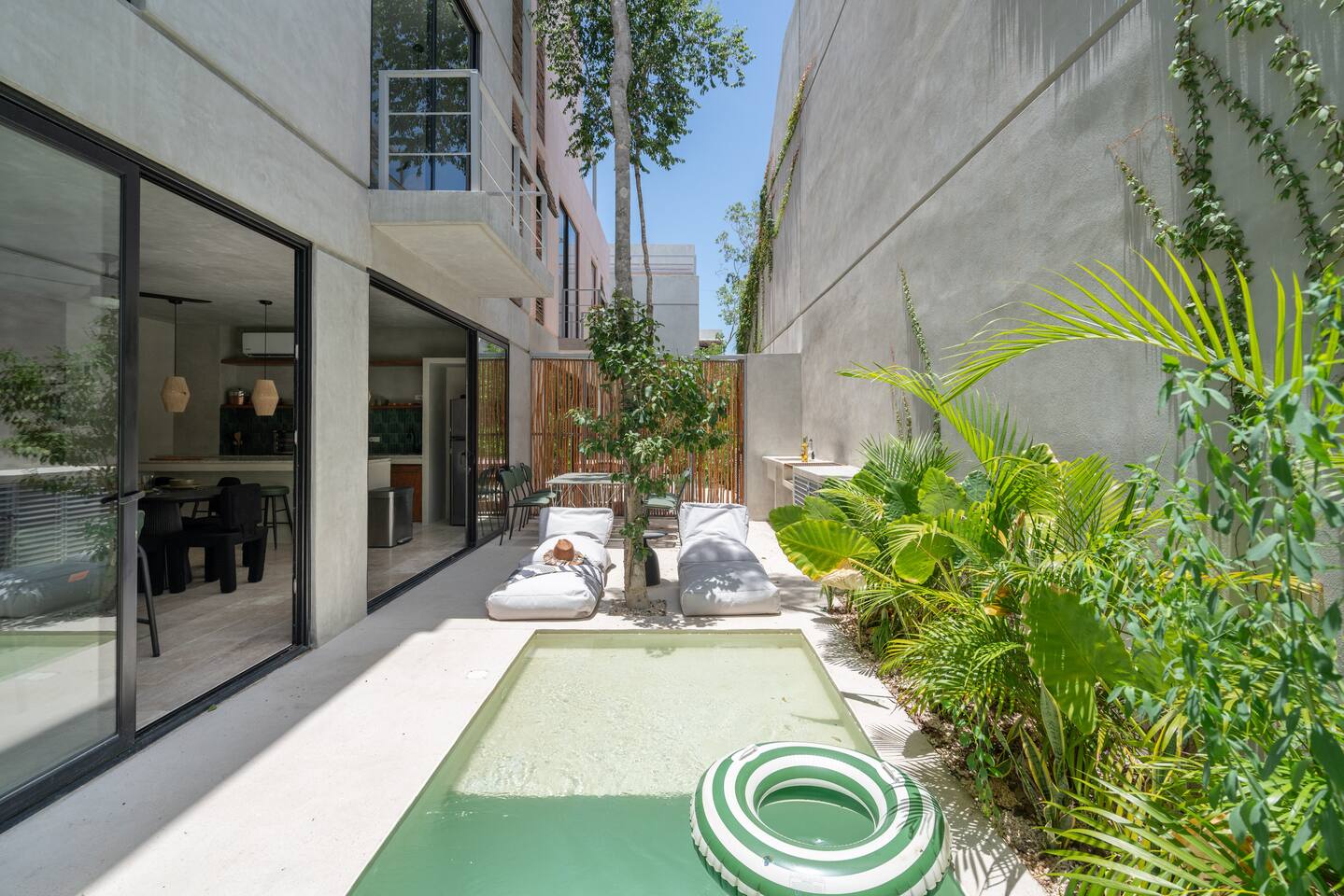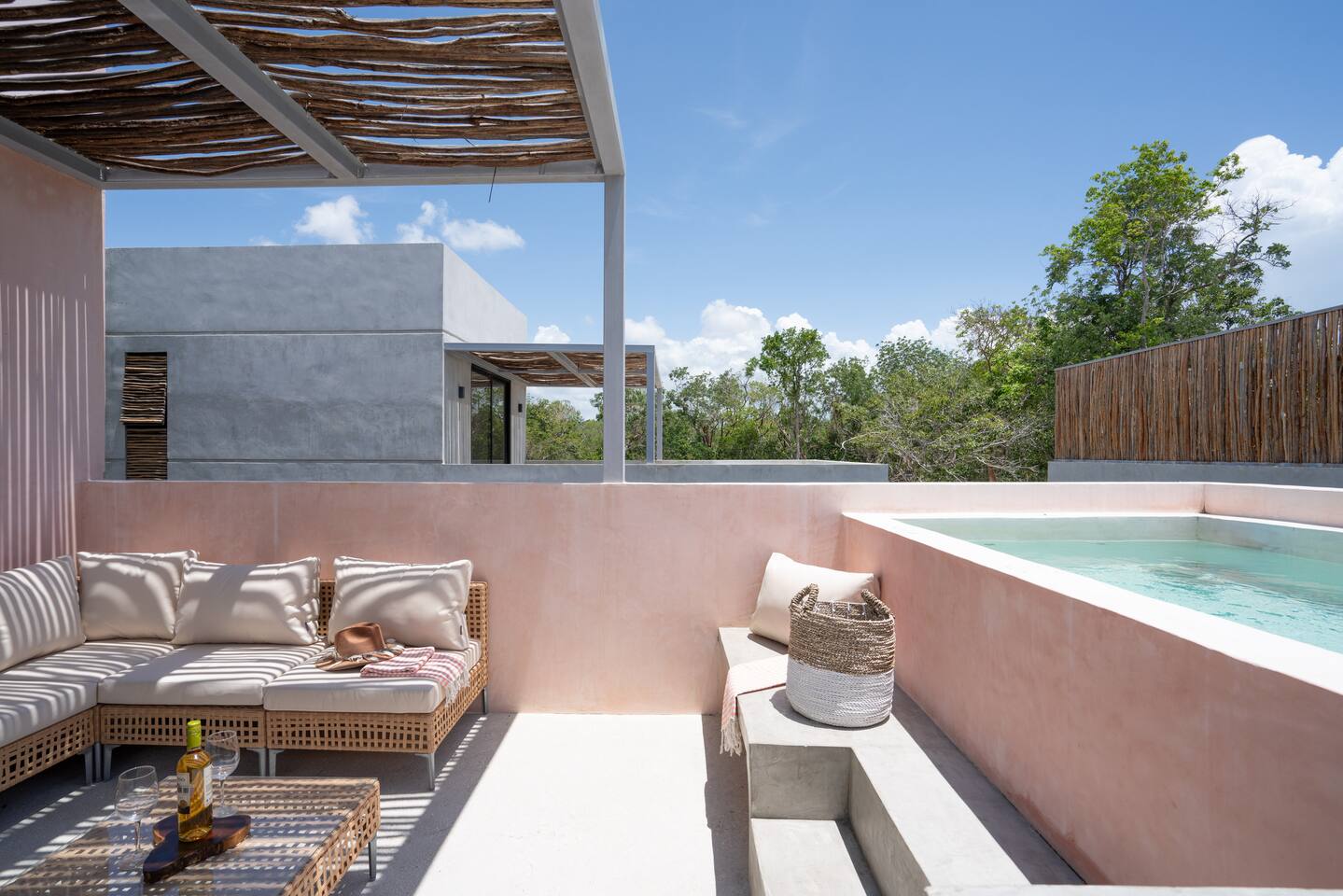 This stunning villa submersed in Tulum's jungle is your oasis in the Caribbean. A private luxury home within a secure complex surrounded by palm trees. This villa has 6 bedrooms each with an ensuite bathroom, four private pools, two on ground level and 2 rooftop. 24-hour security and reception. 15 min car ride to the beach. Parking and High-speed WiFi are included. Additional services available: - Airport transportation - Private chef - Housekeeping - Concierge service