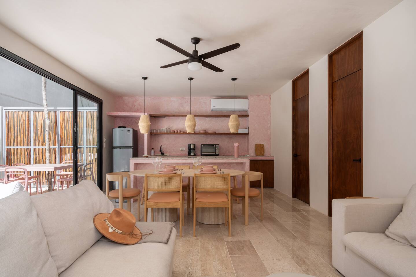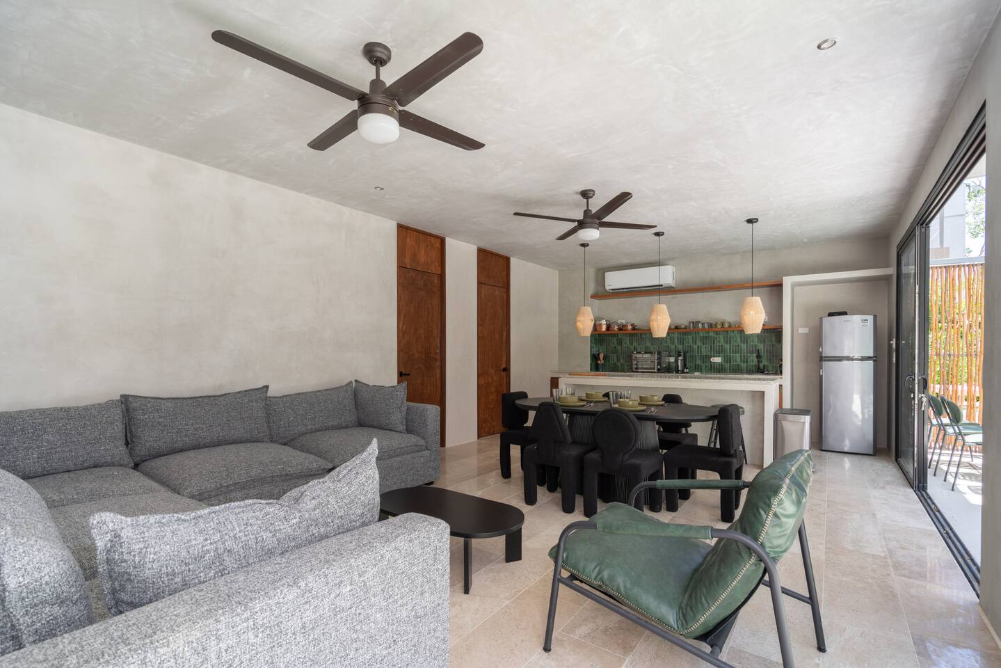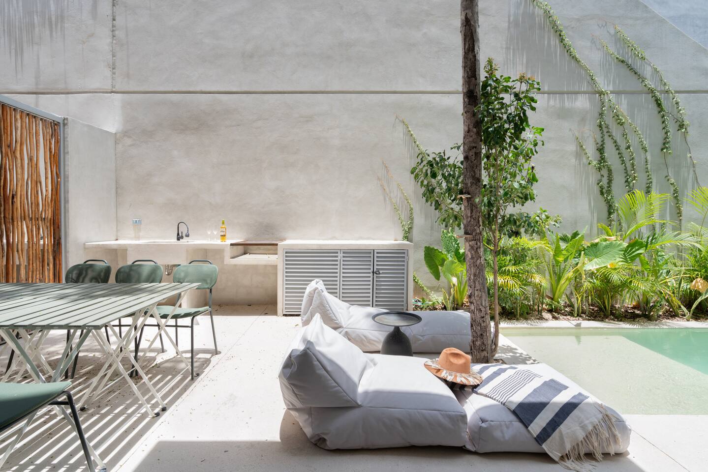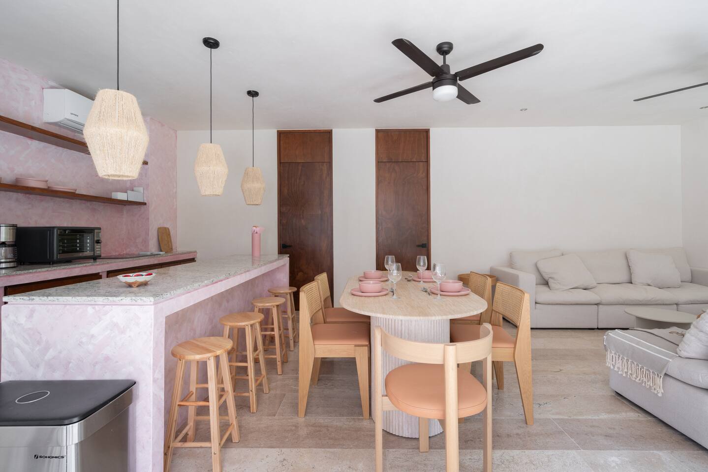 This house has a unique layout, two houses that combine into one large villa with capacity for 12 people. There are two separate kitchens and living rooms in each side of the house. 6 bedrooms, 2 ground level pools and two rooftop pools on each side of the house. The house comes equipped with air conditioning in every room as well as high speed wifi. Each of the 6 bedrooms has it's own ensuite bathroom, ceiling fan, plush mattresses and pillows, and hotel quality linens. Bath towels and pool towels are also provided during your stay. The ground level of the villa has open concept living-dining spaces with fully equipped kitchens and large dining tables. There is a projector to watch movies during your stay. Your reservation also includes a full service concierge that can assist you with airport transportation, private chef services, massage and wellness services, tours and excursions, ATVs and scooter rentals, beach club reservations, and much more.