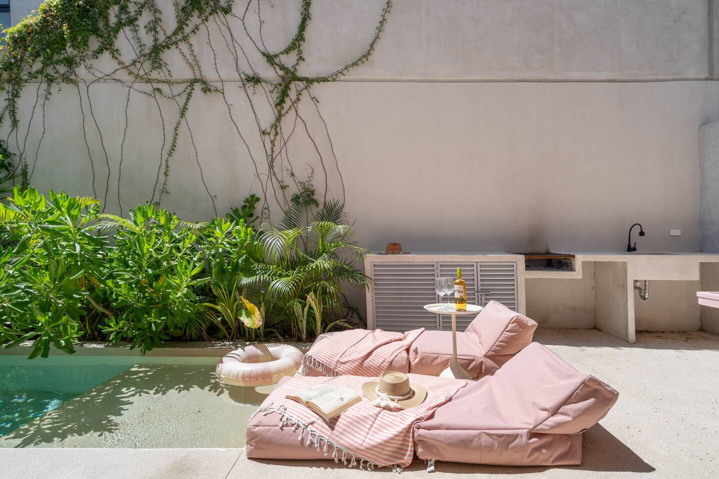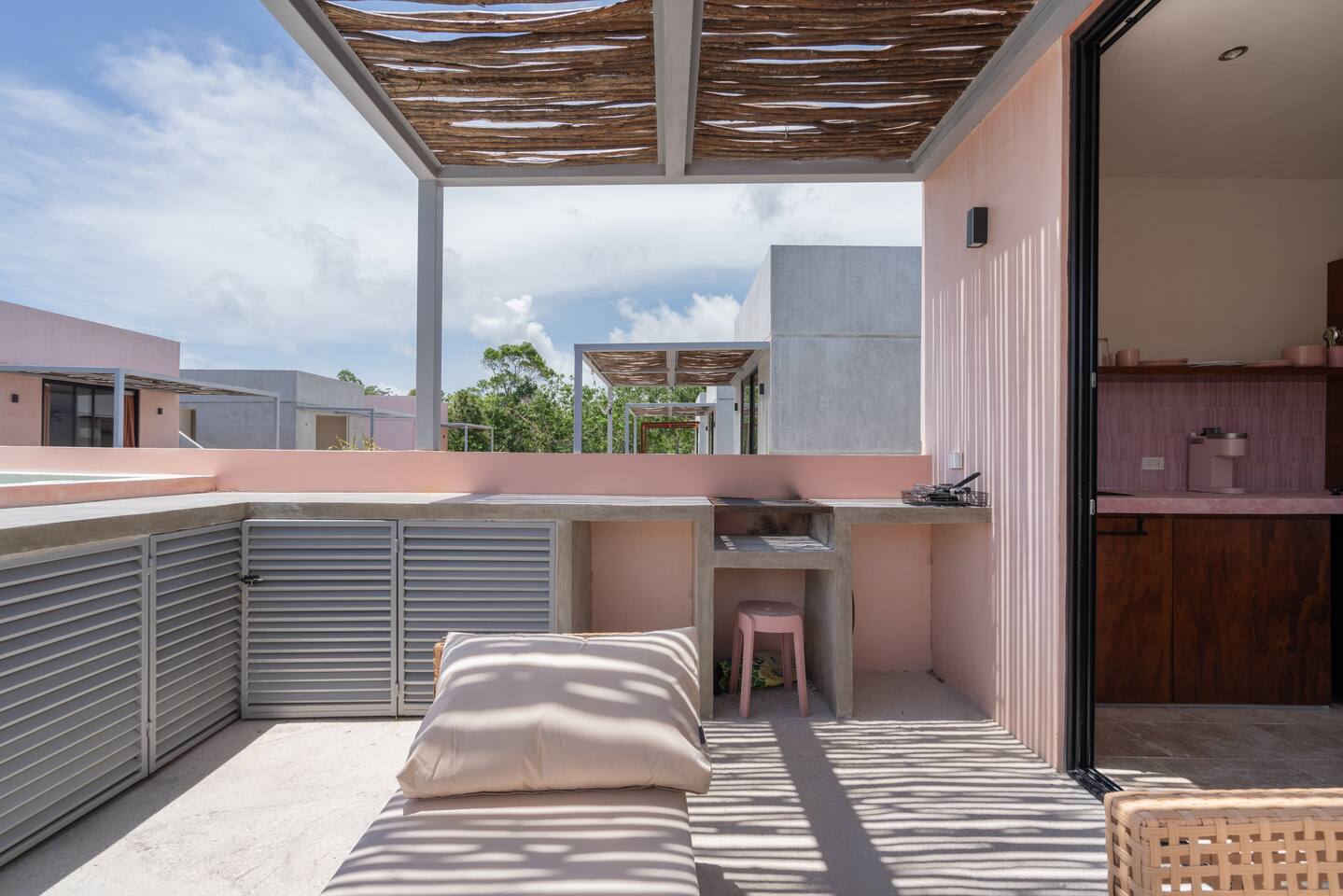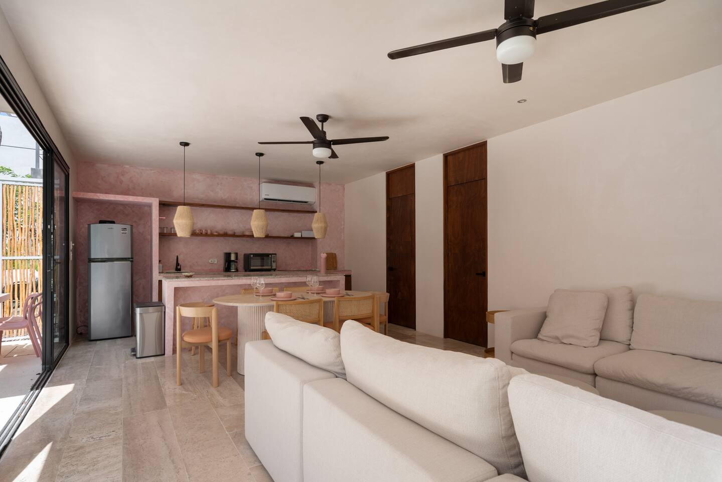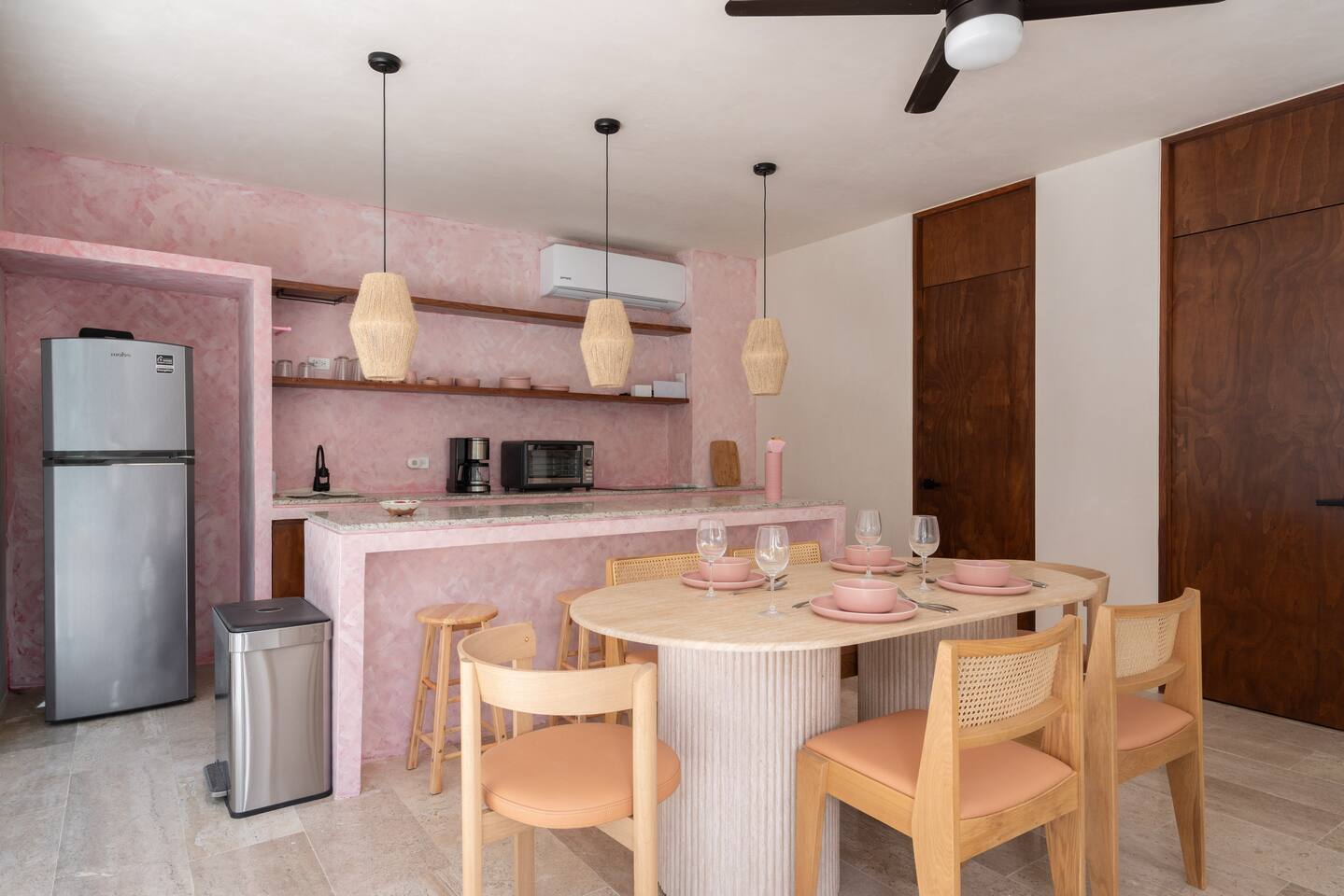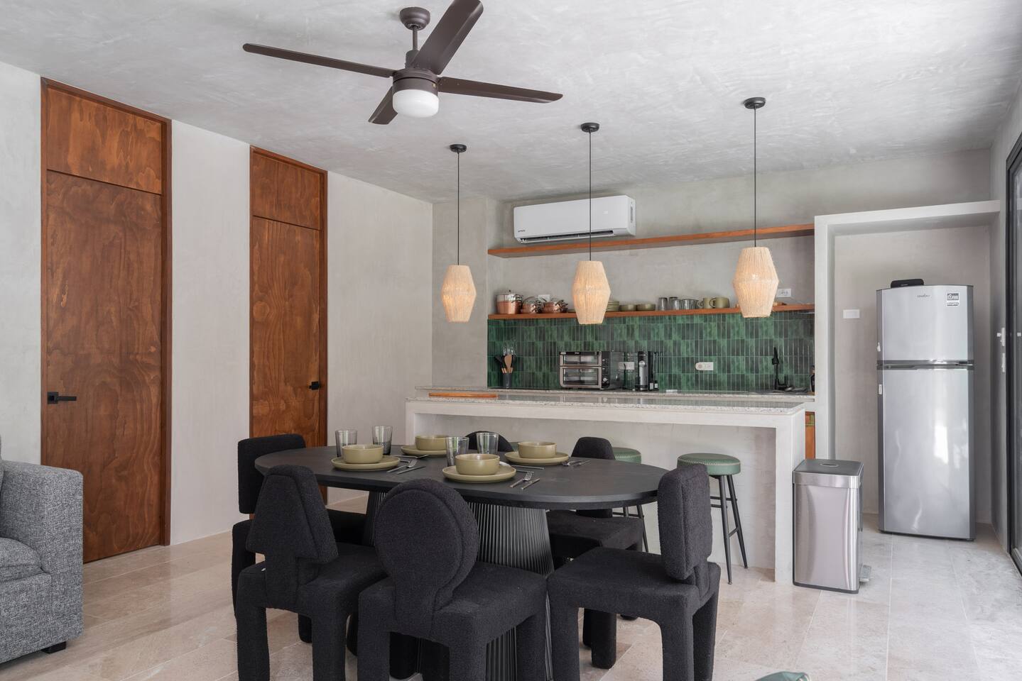 This house has a unique layout, two houses that combine into one large villa with capacity for 12 people. There are two separate kitchens and living rooms in each side of the house. 6 bedrooms, 2 ground level pools and two rooftop pools on each side of the house. The house comes equipped with air conditioning in every room as well as high speed wifi. Each of the 6 bedrooms has it's own ensuite bathroom, ceiling fan, plush mattresses and pillows, and hotel quality linens. Bath towels and pool towels are also provided during your stay. The ground level of the villa has open concept living-dining spaces with fully equipped kitchens and large dining tables. There is a projector to watch movies during your stay. Your reservation also includes a full service concierge that can assist you with airport transportation, private chef services, massage and wellness services, tours and excursions, ATVs and scooter rentals, beach club reservations, and much more.